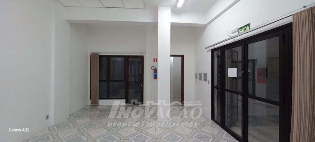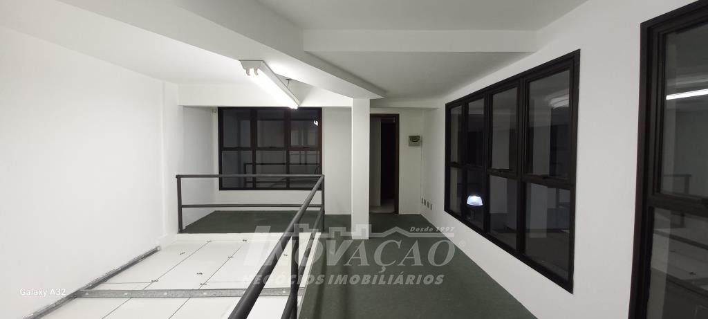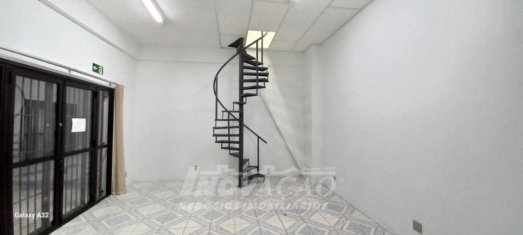 Sala comercial térrea localizada em galeria, mezanino, banheiro social, piso cerâmico.