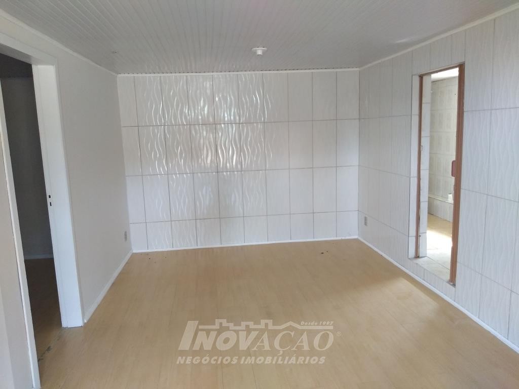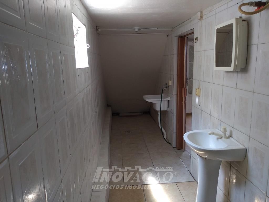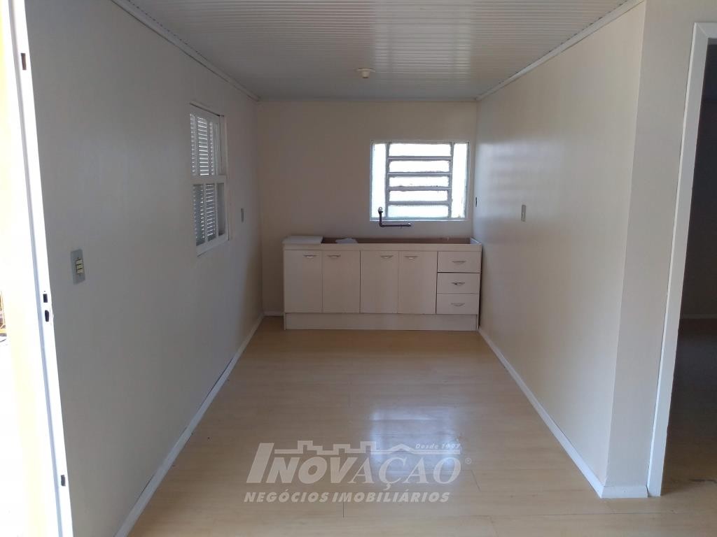 Inovação Negócios Imobiliários aluga em Caxias do Sul, RS, no bairro Sagrada Família, casa parte inferior com um dormitório, sala e cozinha conjugada, banheiro social, área de serviço, área coberta e fechada em frente. Posição solar Sul.