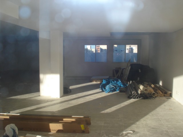 Sala térrea com 300m², 03 banheiros, mezanino, piso porcelanato.