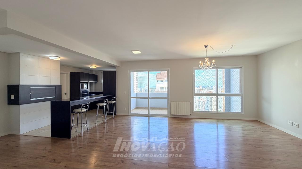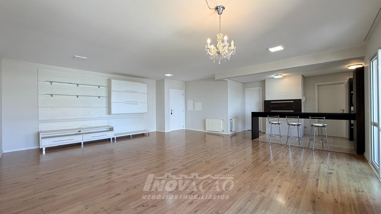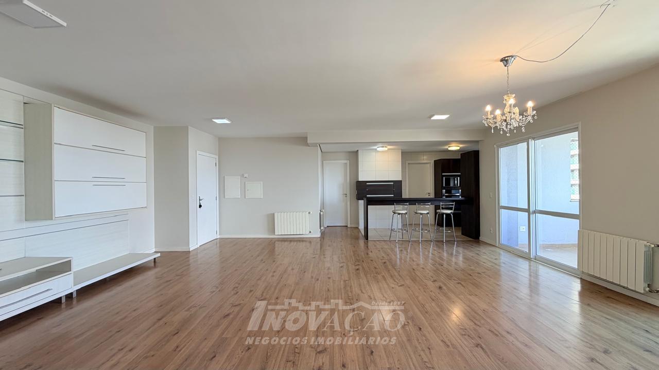 Imobiliária Inovação aluga apartamento de alto padrão, com 154m² de área privativa e 194m² de área total, projetado para oferecer conforto, sofisticação e funcionalidade em cada detalhe. O imóvel conta com 3 dormitórios, todos suítes, garantindo privacidade e comodidade para toda a família. A sala ampla para três ambientes, integrada à sacada, proporciona excelente iluminação natural e um espaço ideal para receber convidados ou desfrutar momentos em família. A cozinha é bem distribuída e funcional, conectada à churrasqueira, perfeita para confraternizações. Dispõe ainda de área de serviço independente e banheiro social. Possui vaga de garagem para 2 veículos e espera para calefação, agregando conforto térmico e praticidade. O condomínio oferece infraestrutura completa, com vigilância 24 horas, salão de festas, academia equipada, playground e brinquedoteca, proporcionando segurança, lazer e qualidade de vida em um único endereço.