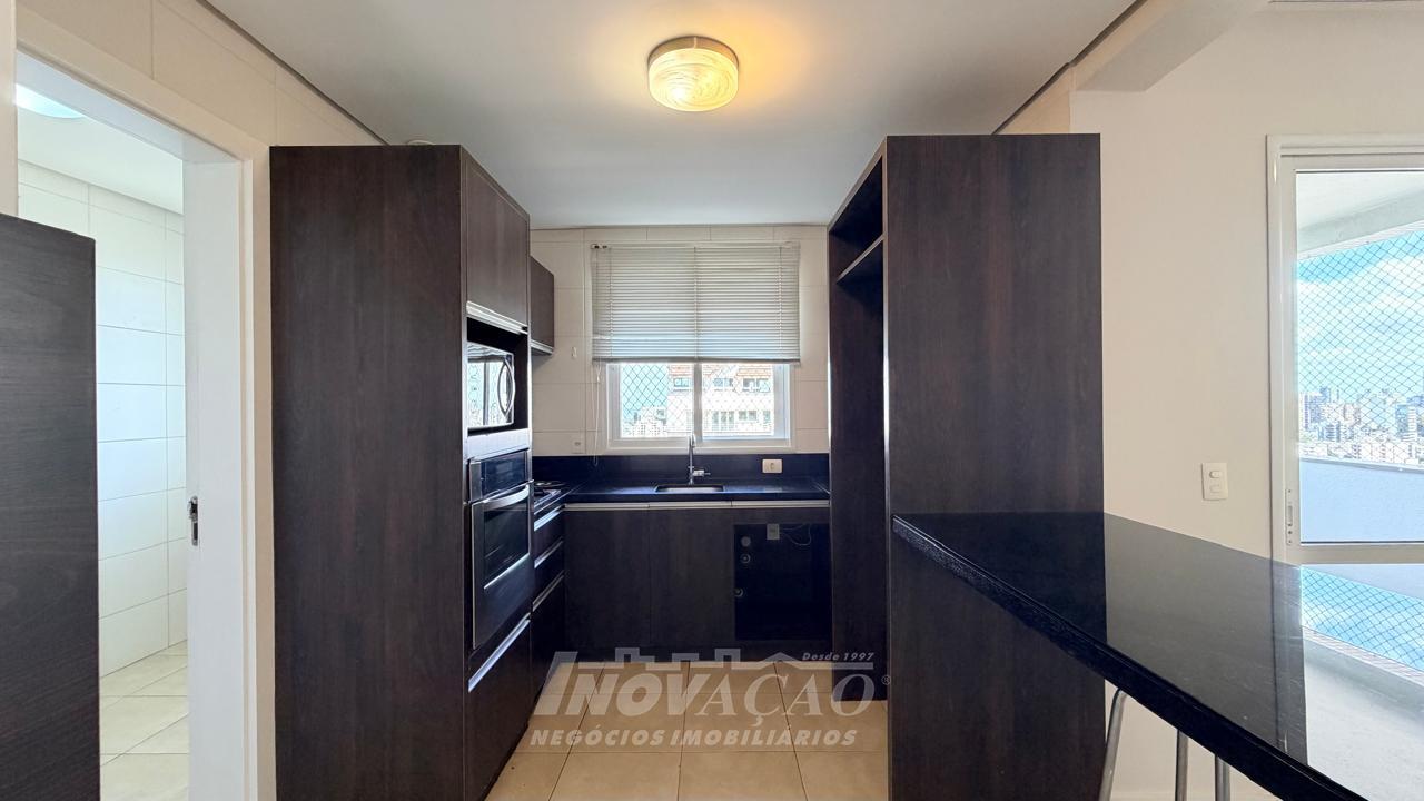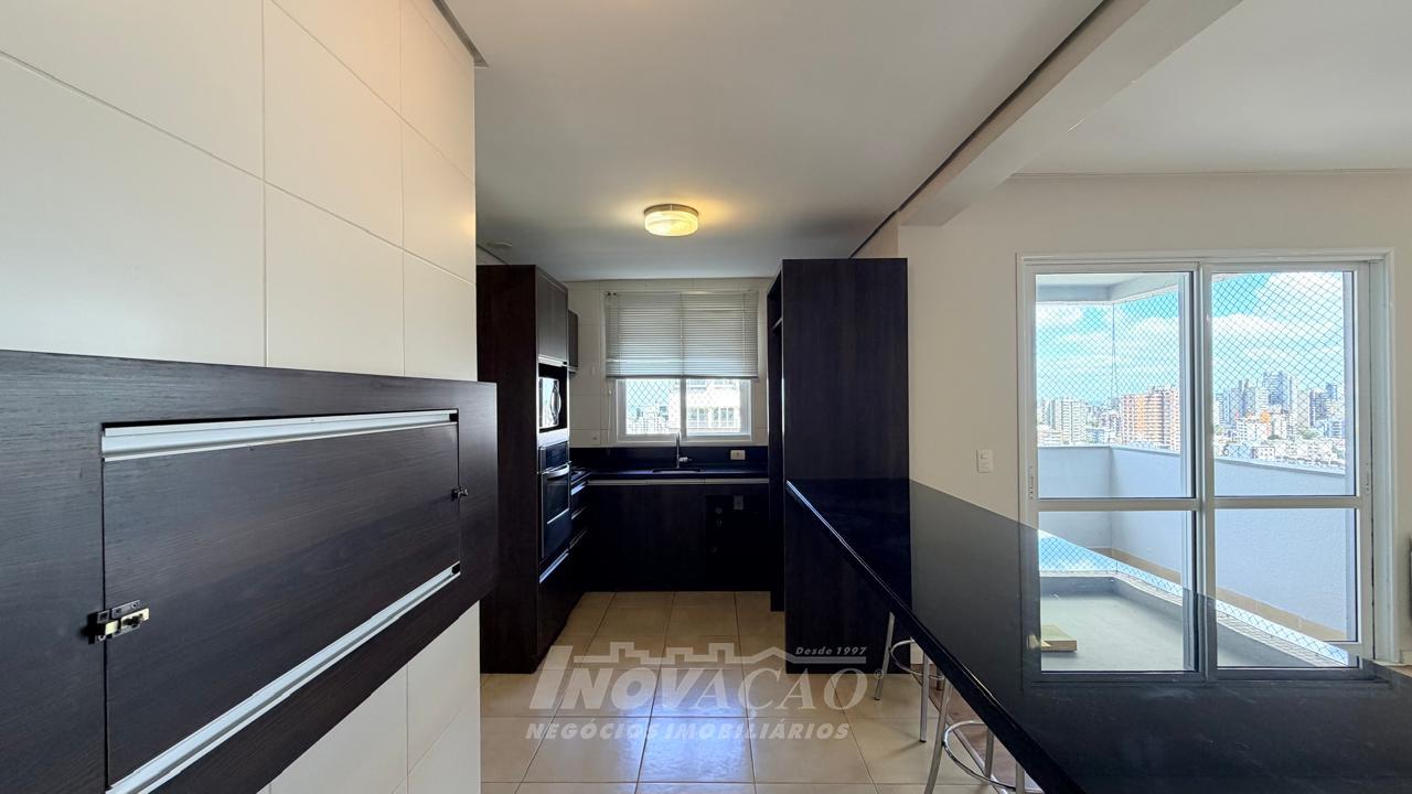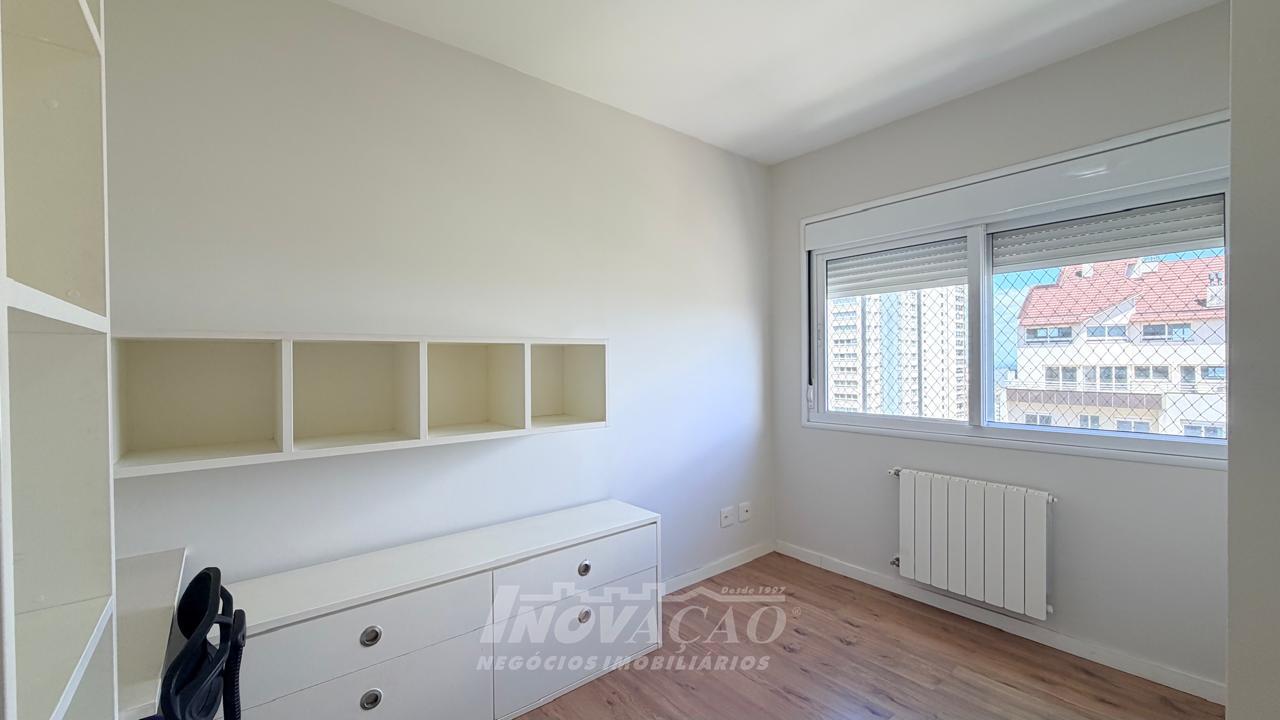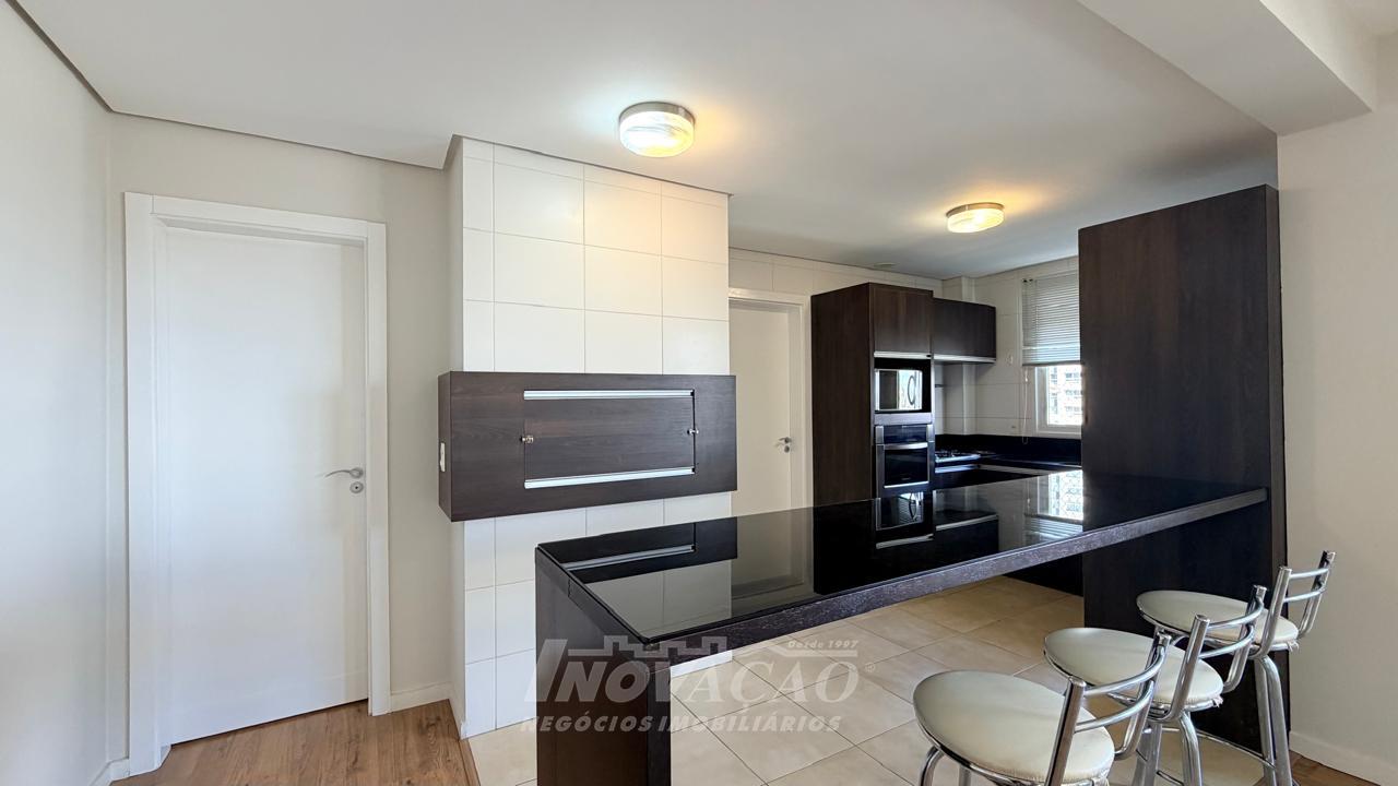 Imobiliária Inovação aluga apartamento de alto padrão, com 154m² de área privativa e 194m² de área total, projetado para oferecer conforto, sofisticação e funcionalidade em cada detalhe. O imóvel conta com 3 dormitórios, todos suítes, garantindo privacidade e comodidade para toda a família. A sala ampla para três ambientes, integrada à sacada, proporciona excelente iluminação natural e um espaço ideal para receber convidados ou desfrutar momentos em família. A cozinha é bem distribuída e funcional, conectada à churrasqueira, perfeita para confraternizações. Dispõe ainda de área de serviço independente e banheiro social. Possui vaga de garagem para 2 veículos e espera para calefação, agregando conforto térmico e praticidade. O condomínio oferece infraestrutura completa, com vigilância 24 horas, salão de festas, academia equipada, playground e brinquedoteca, proporcionando segurança, lazer e qualidade de vida em um único endereço.