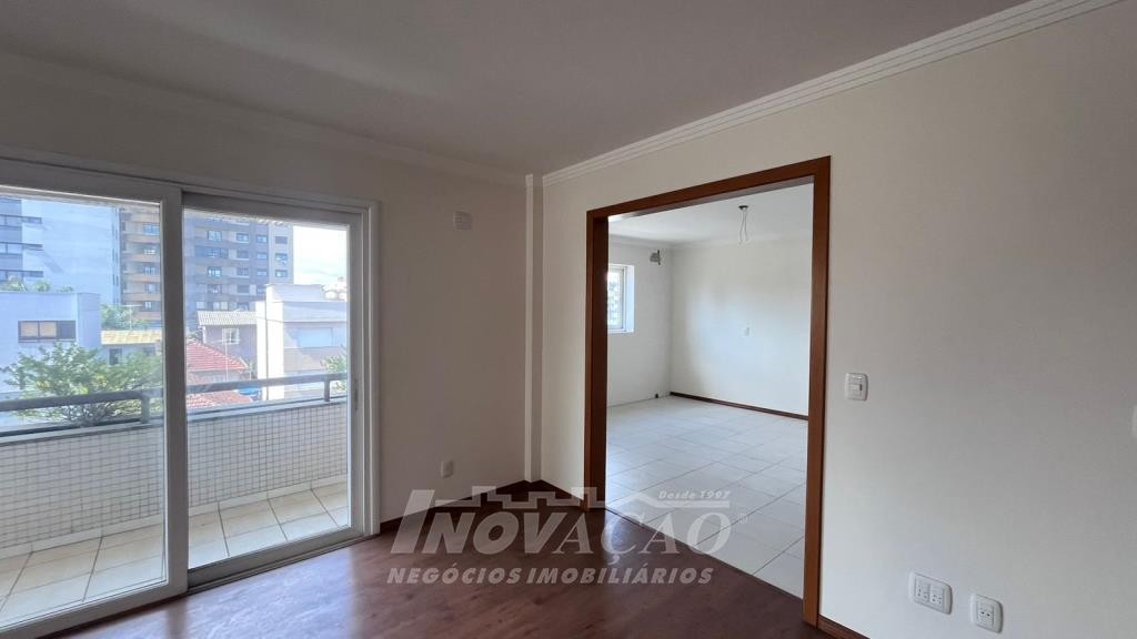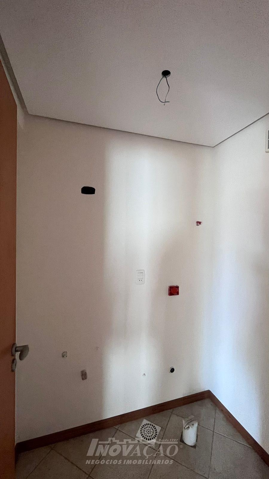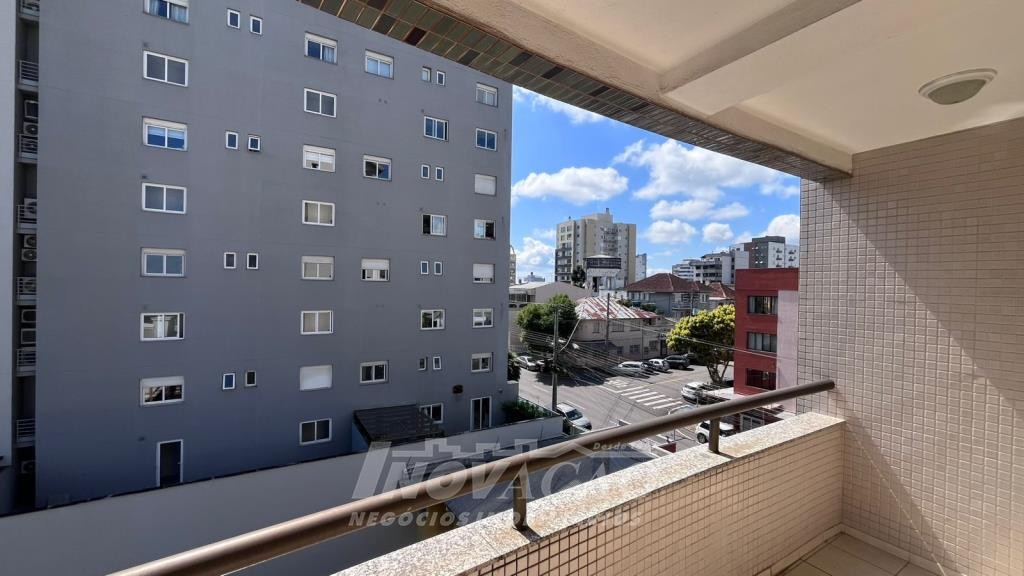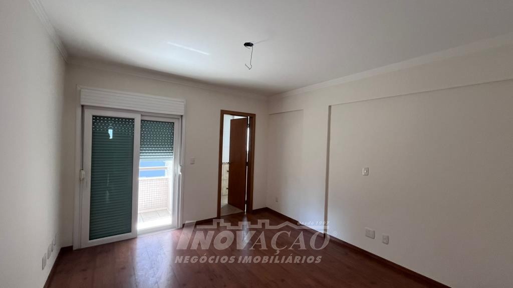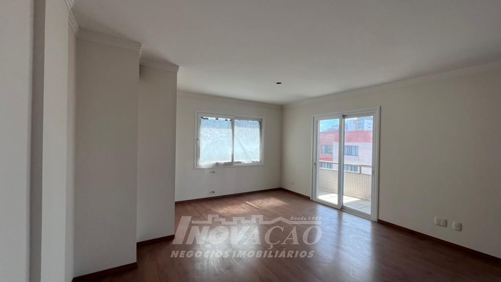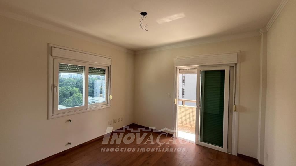 Apartamento com três suítes sendo uma de casal e todas com sacada, sala dois ambientes com sacada, ampla cozinha com churrasqueira, área de serviço, banheiro social, lavabo, piso em laminado e cerâmica, espera para lareira, espera para calefação, instalação para água quente, gás central, aberturas em pvc, posição solar em todos os lados, duas garagens duplas. Prédio com sete andares sendo um apartamento por andar com elevador. Área privativa do apartamento 177,10 m².
