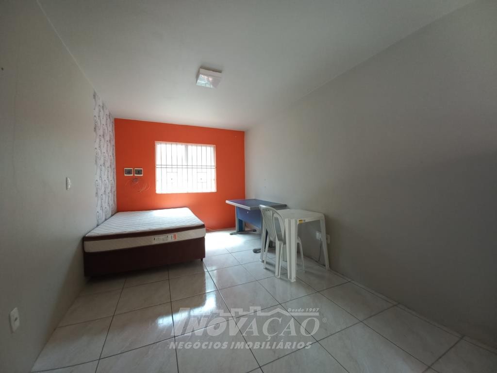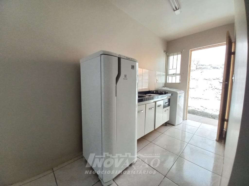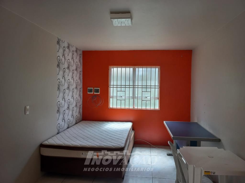 Inovação Negócios Imobiliários aluga kitinete semimobiliada no bairro Cruzeiro, possui móveis e eletros, banheiro social, piso cerâmico, metragem 30,00m².