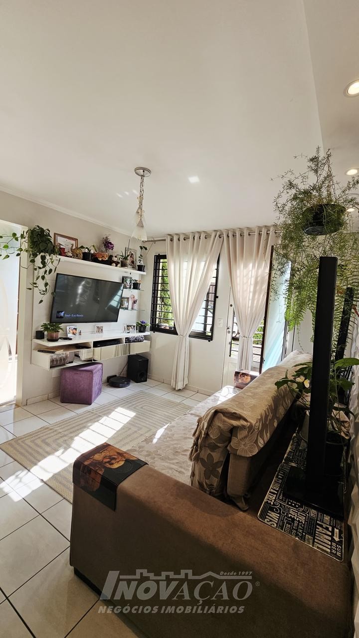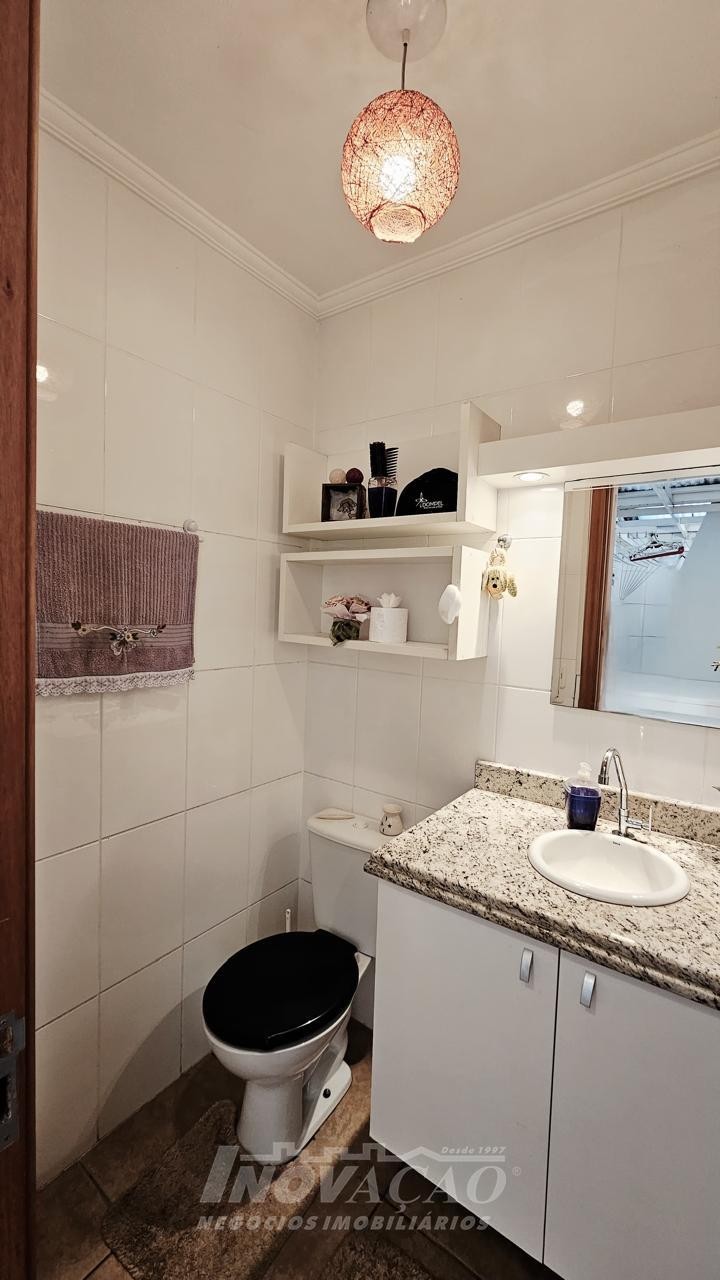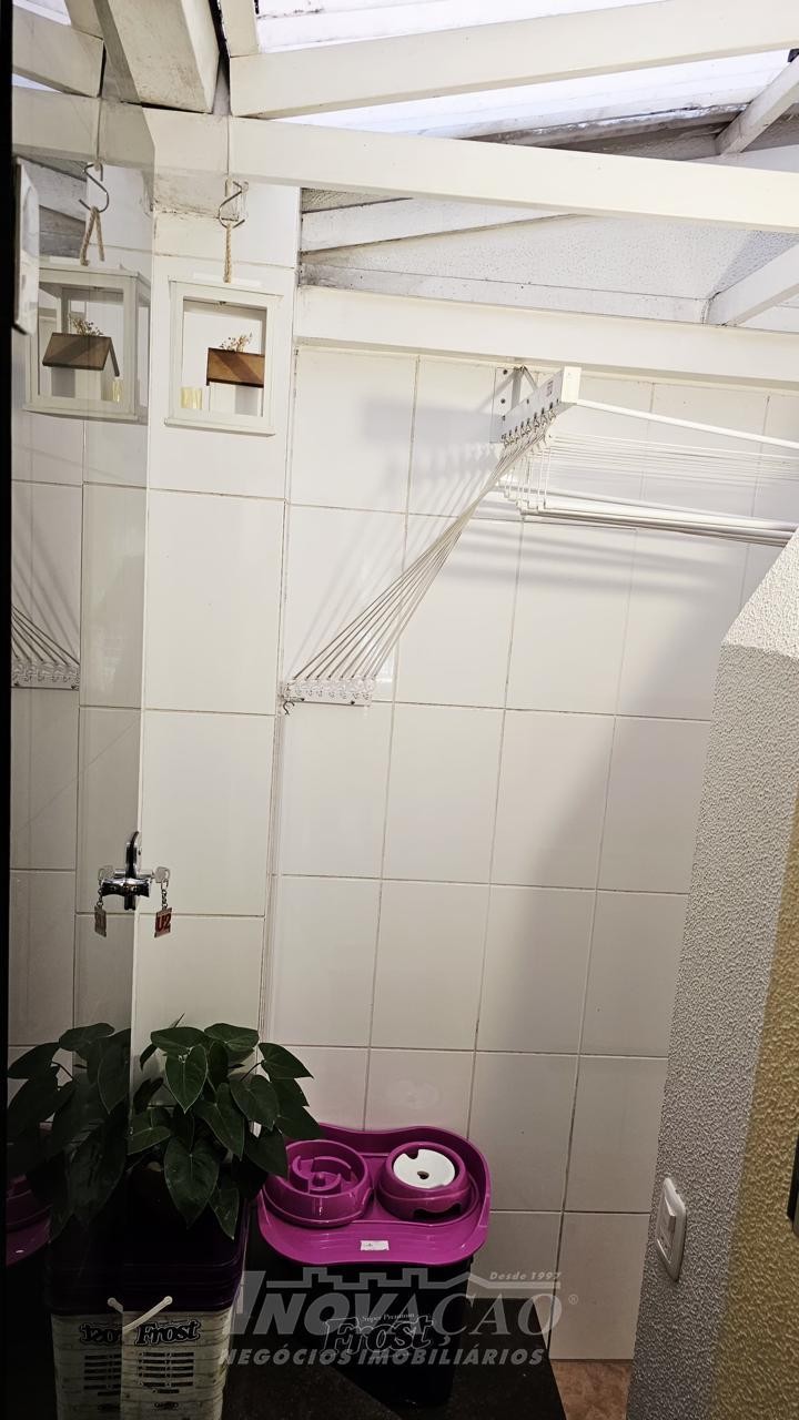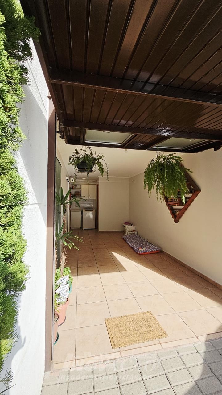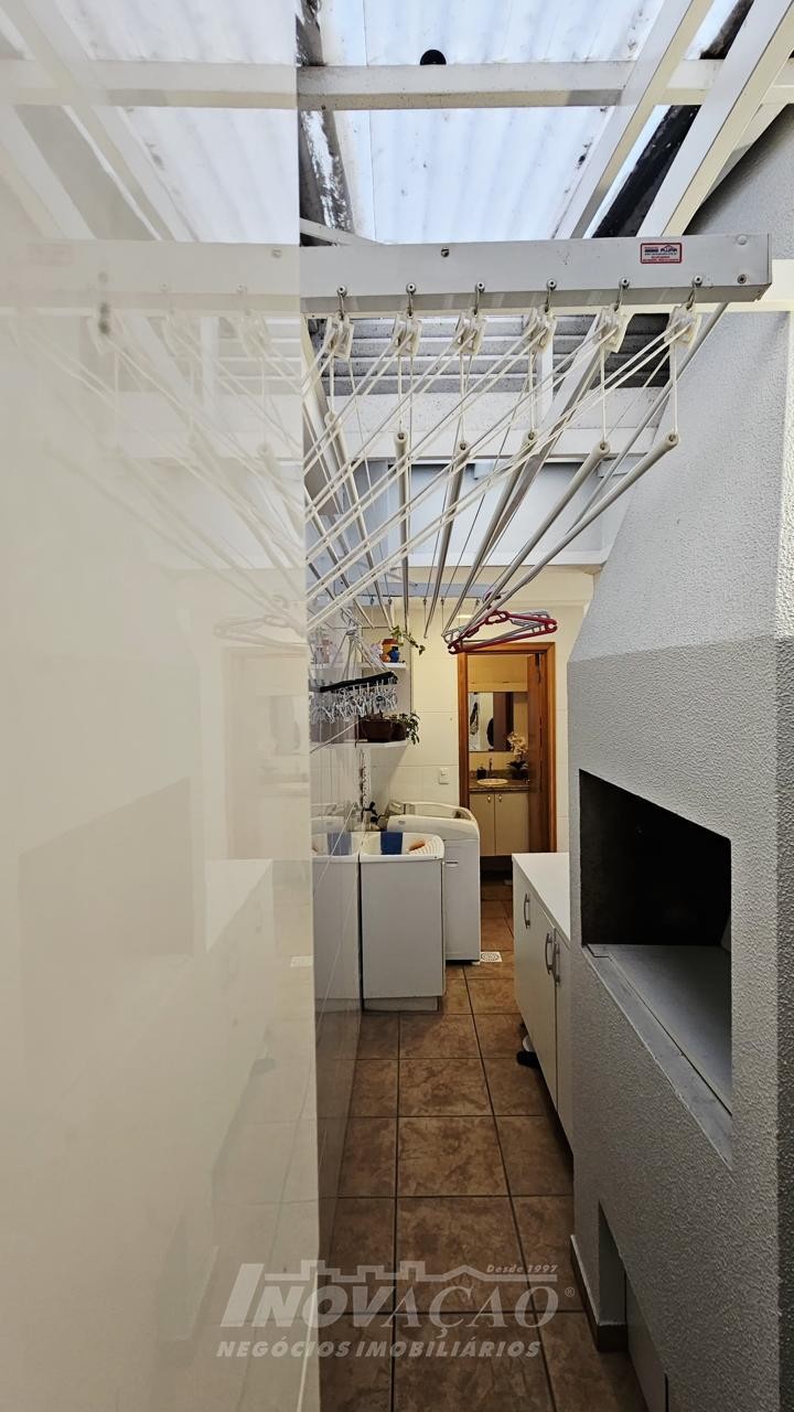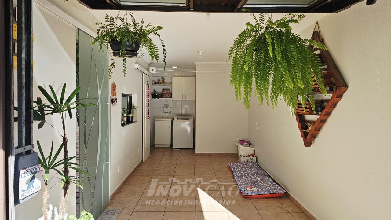 3 dormitórios 2 banheiros 2 vagas de garagem ( 1 interna + uma externa opcional) Vaga para visitantes Sala e cozinha integradas, bem amplas, arejadas e iluminadas Churrasqueira, jardim, área de serviço planejada Piso laminado nos dormitórios e cerâmica no térreo e na garagem Escada em granito, gás encanado, água quente Interfone, cerca elétrica e portão eletrônico Área total 127,00m² Área construída 107,95 m² Ficam os móveis planejados da cozinha e do banheiro ( granito) e área de serviço com balcão e aéreos Outras mobílias podem ser negociadas.