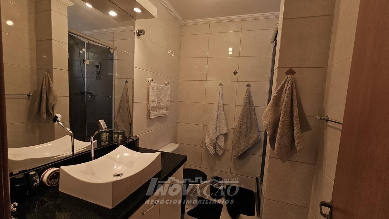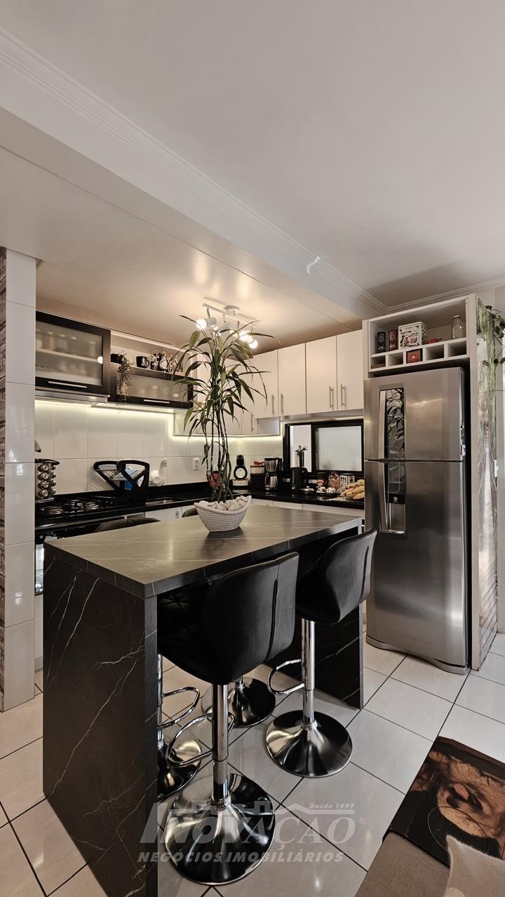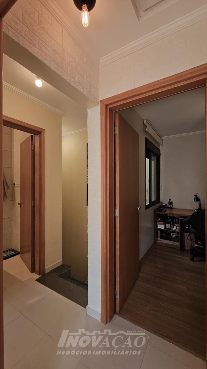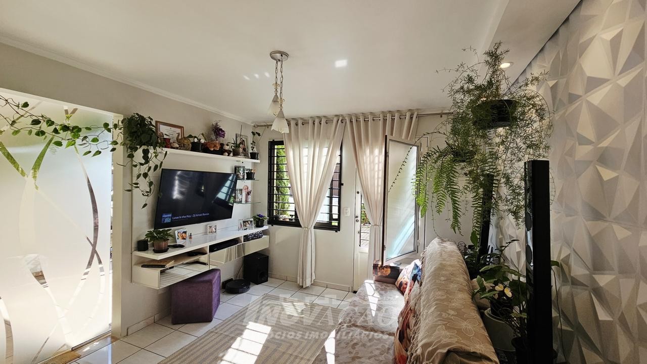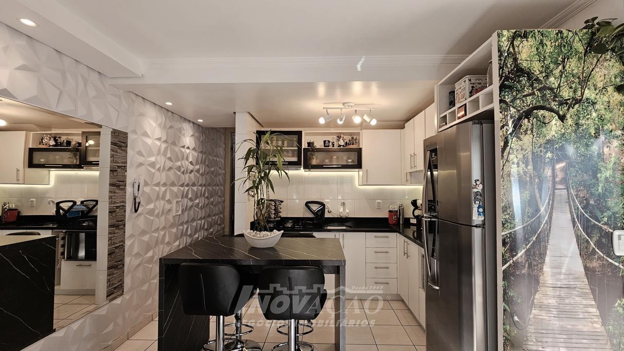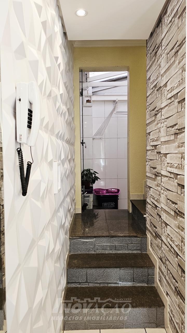 3 dormitórios 2 banheiros 2 vagas de garagem ( 1 interna + uma externa opcional) Vaga para visitantes Sala e cozinha integradas, bem amplas, arejadas e iluminadas Churrasqueira, jardim, área de serviço planejada Piso laminado nos dormitórios e cerâmica no térreo e na garagem Escada em granito, gás encanado, água quente Interfone, cerca elétrica e portão eletrônico Área total 127,00m² Área construída 107,95 m² Ficam os móveis planejados da cozinha e do banheiro ( granito) e área de serviço com balcão e aéreos Outras mobílias podem ser negociadas.