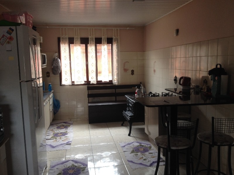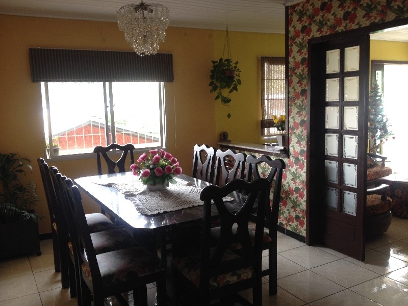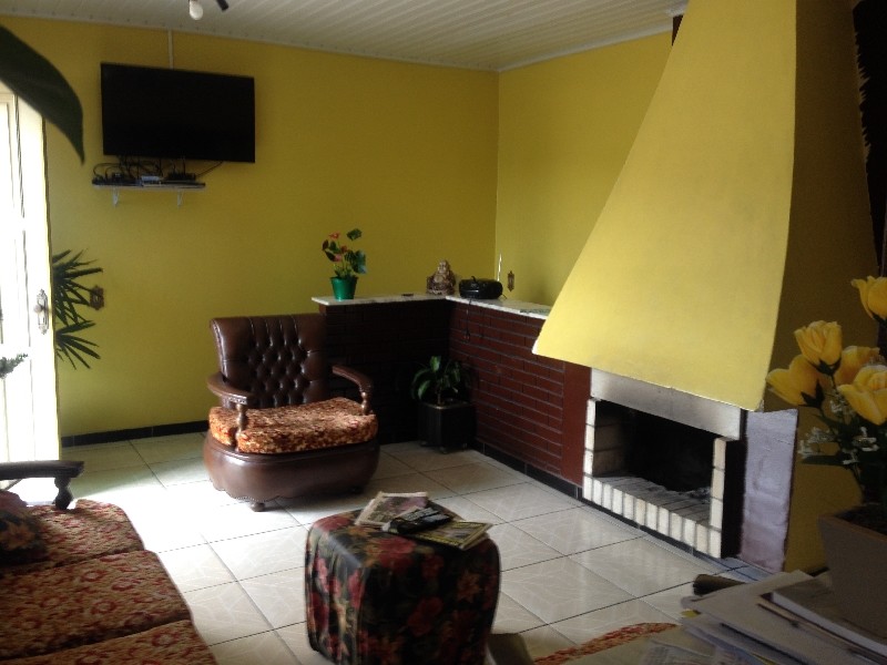 Casa com três dormitórios, sendo um suíte com sacada, três salas amplas sendo uma com churrasqueira e outra com lareira e sacada, cozinha, banho social, e uma sala comercial na parte da frente da casa.