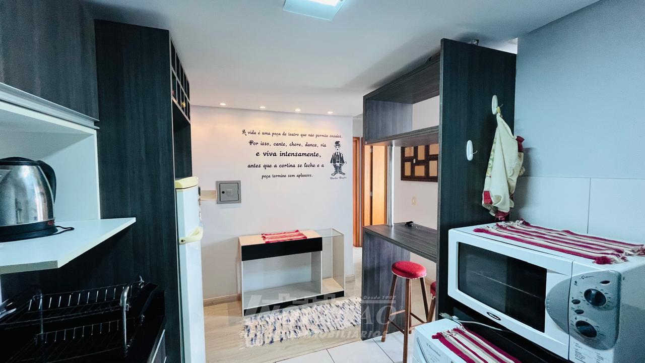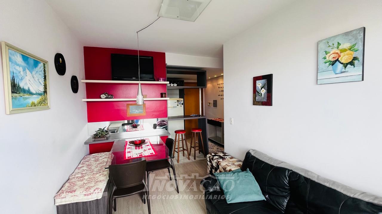 Apartamento Mobiliado com Móveis e Eletrodomésticos com: 2 Dormitórios, 1 Banheiro, 1 Box/Garagem, 1 Cozinha, 1 Sacada, 1 Sala, Espera para Água Quente, De Fundos, Gás Central, Piso em Porcelanato e Laminado, 2 Salões de Festas, Posição Solar Leste, Cond.: R$200,00 (aprox.), 50,00 m².