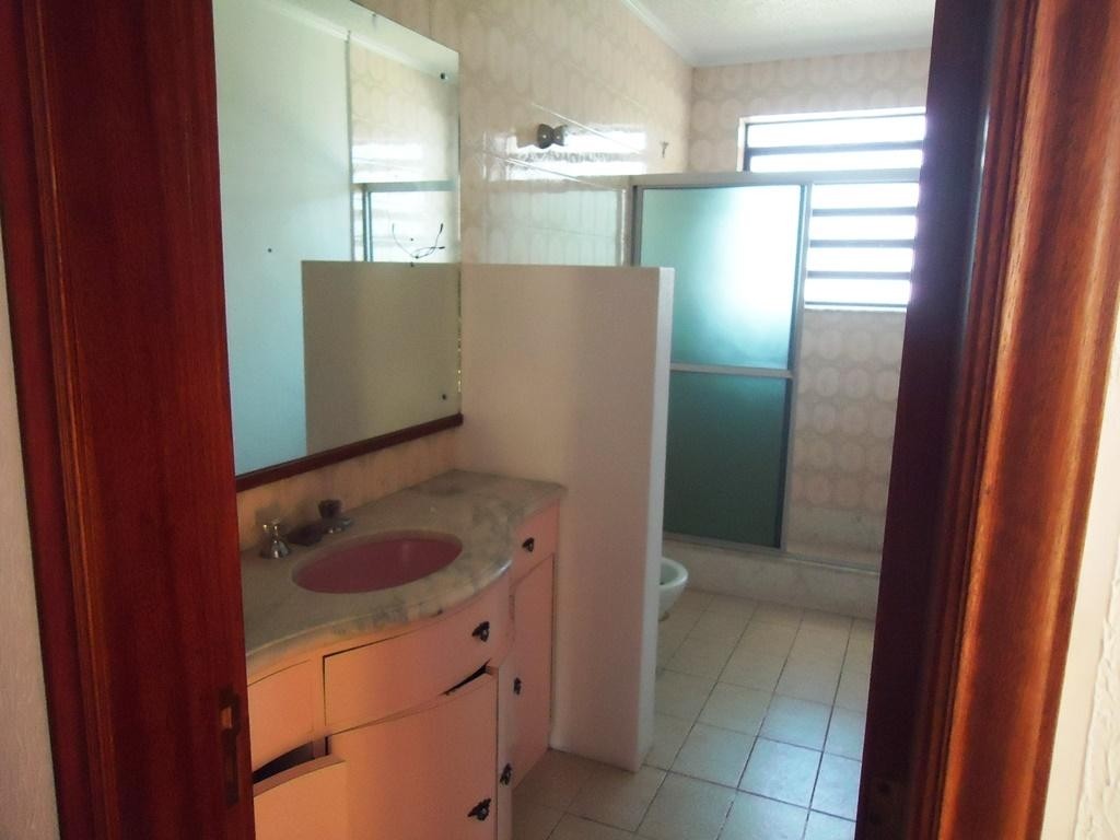 Casa de alvenaria com 5 dormitórios, 5 salas, 2 cozinhas, 5 banheiros, pátio e garagem para 2 carros.