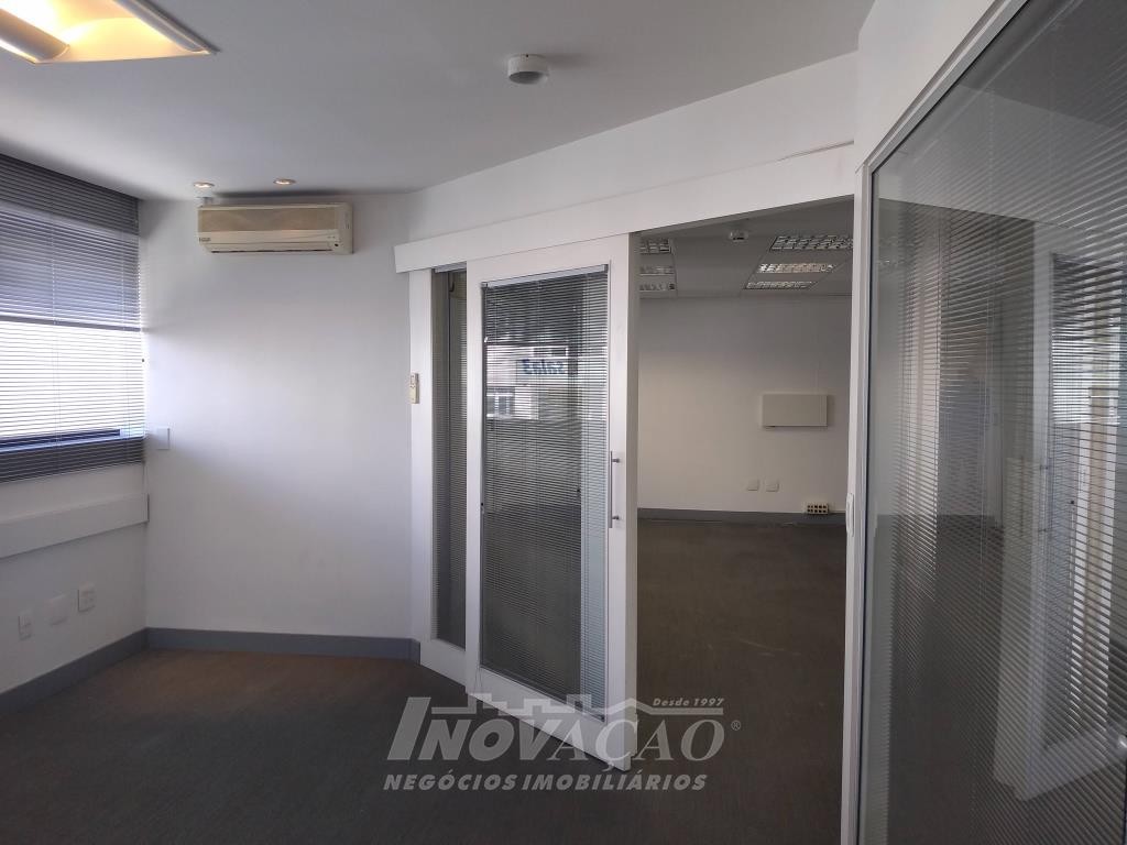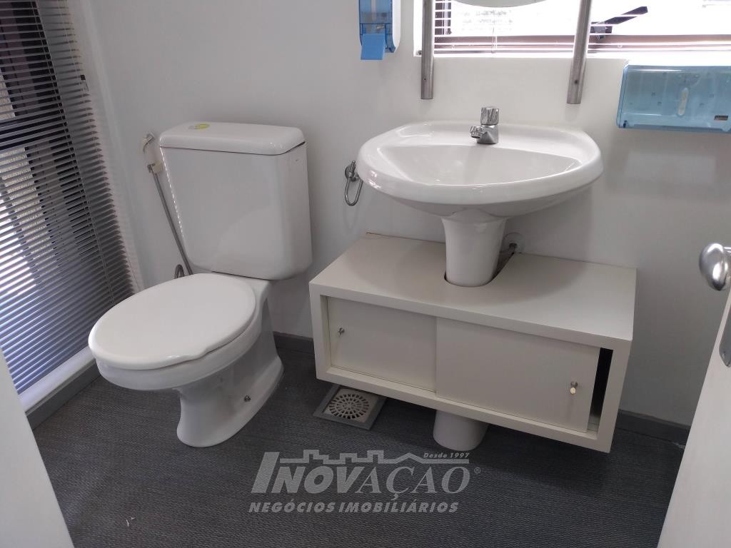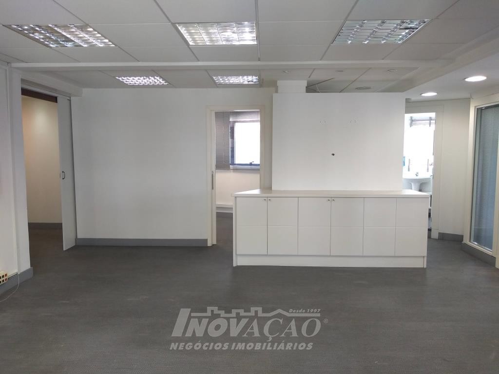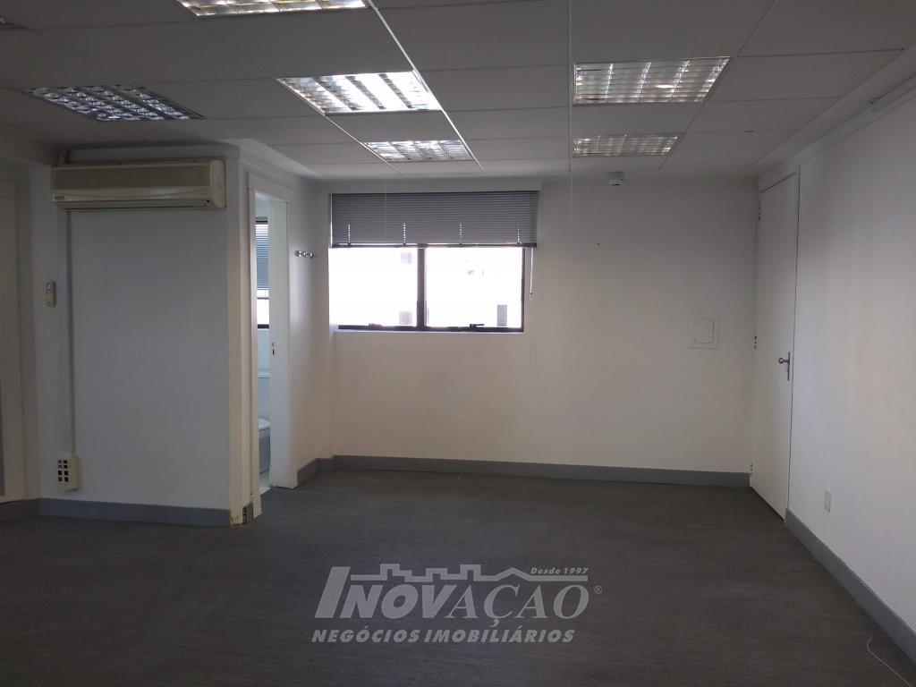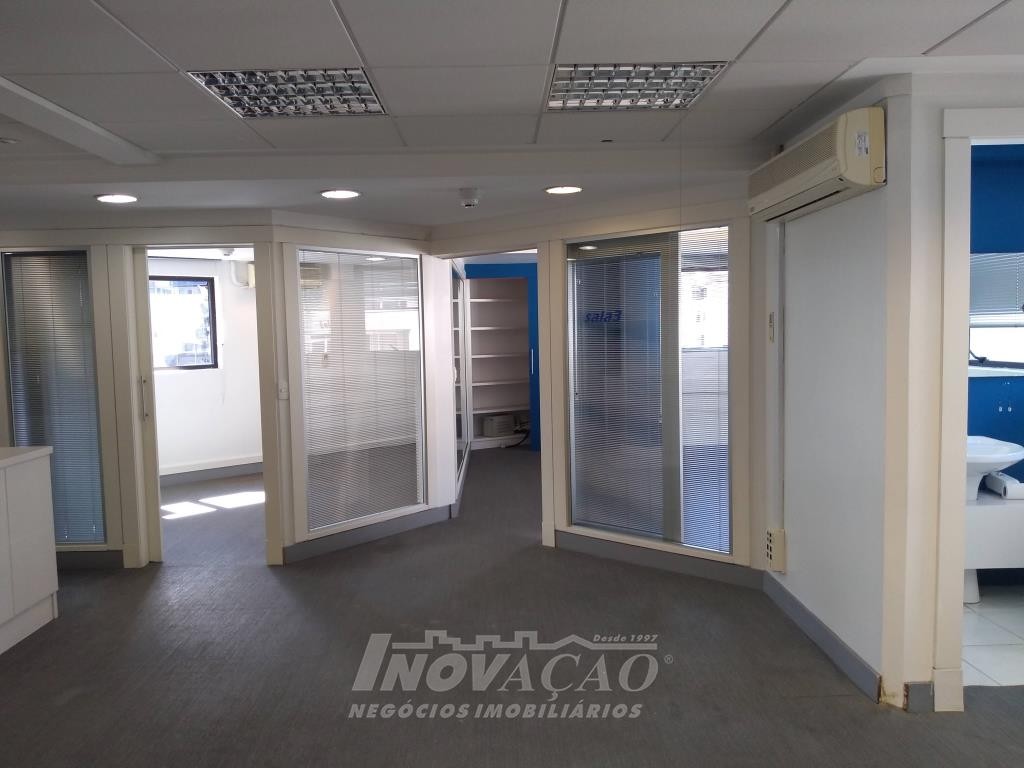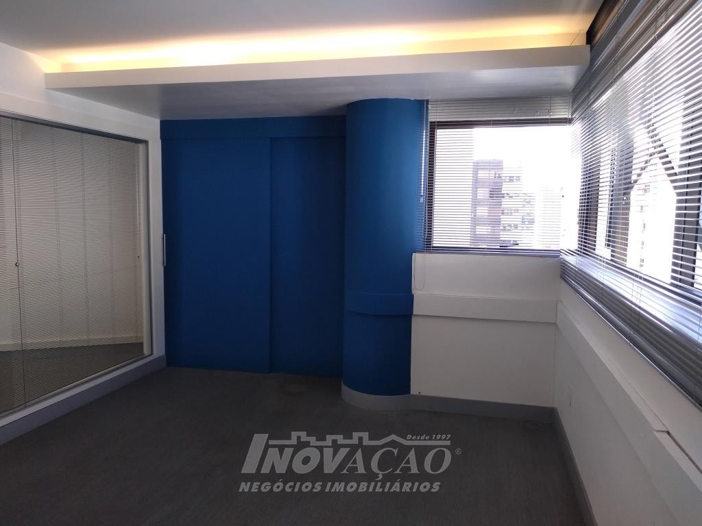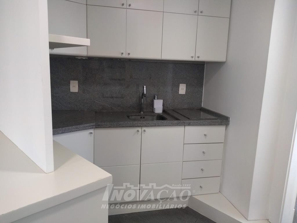 Inovação Negócios Imobiçiários aluga em Caxias do Sul, RS, no Centro, sala aérea com 110,00m², dois banheiros, portaria em horário comercial, a sala já possui divisórias, ar condicionado, cozinha montada, recepção, iluminação pronta. Não possui garagem mas tem estacionamento rotativo em frente.