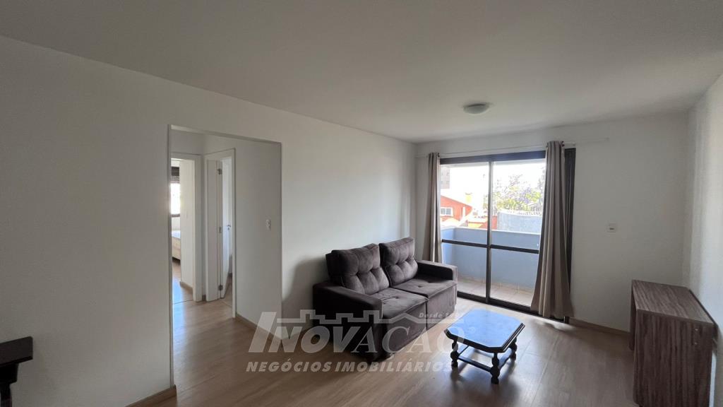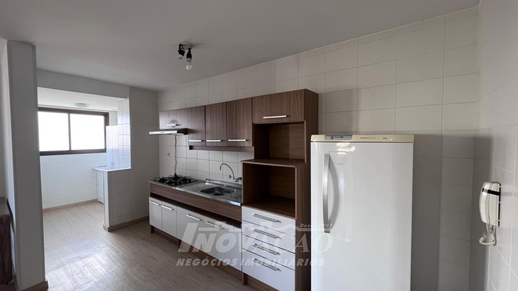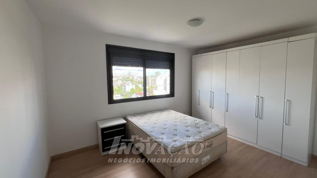 Inovação Negócios Imobiliários aluga em Caxias do Sul, RS, no bairro Sanvitto, apartamento semi mobiliado com dois dormitórios sendo um suíte, sala ampla para dois ambientes, cozinha, área de serviço, sacada, banheiro social, box duplo de garagem. A posição solar é Sul, a localização é excelente muito próximo ao shopping, condomínio com salão de festas e portaria.