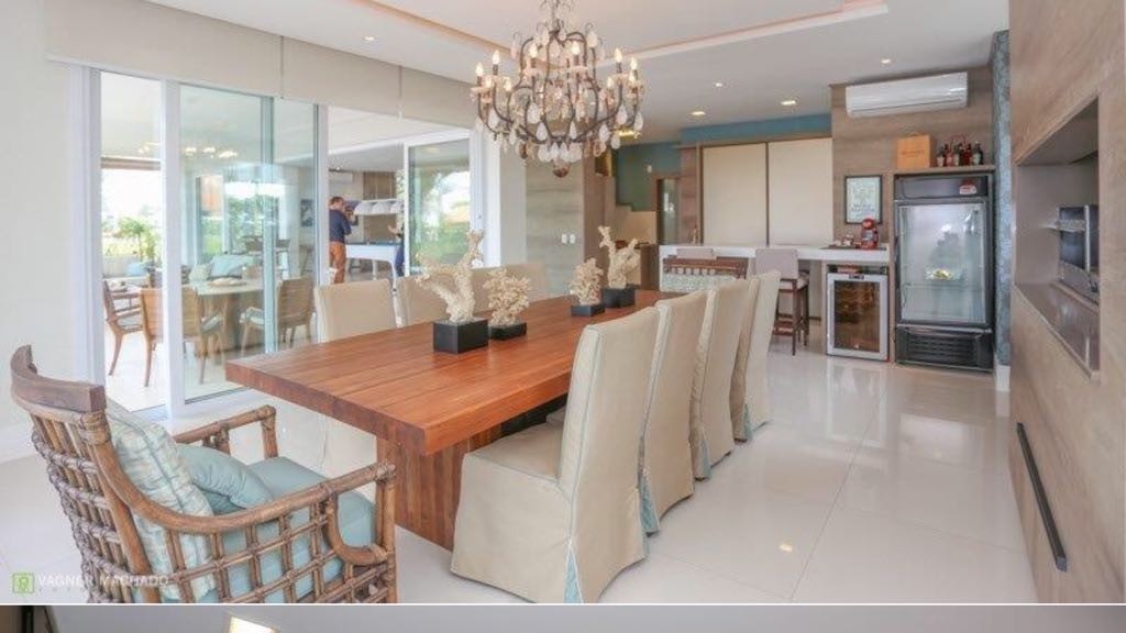 Casa mobiliada em condomínio fechado (Ocean Side) com toda a infraestrutura de clube (piscina, quadra de esportes, academia, salão de festas, praia particular), segurança, cerca elétrica. Casa mobiliada com móveis Sierra Gramado, 4 suítes, sala de estar com lareira e pé direito duplo, sala de jantar com churrasqueira e bifeteira, cozinha americana, amplo terraço com vista para o mar, área externa com jardim com sistema de irrigação, piscina com aquecimento solar e SPA para 8 pessoas. Gás central, água quente com aquecimento solar, aberturas em PVC e vidro duplo, telha mosqueteira, silestone nos banheiros e escada, garagem fechada para 2 automóveis grandes. Conta com uma ampla estrutura de esporte e lazer, tais como: -Clube esportivo -2 quadras de tênis cobertas e 2 descobertas -4 Canchas de bochas cobertas -2 quadras de futebol society -2 quadras de futebol infantil -2 quadras de paddle -Playgrounds -Circuito de jogging -Circuito de bike Clube House -Bar -Churrasqueira -Cozinha gourmet -Salão de festas -Care Space (primeiros socorros) -Fraldário -Clube teen equipado -Kids space com brinquedos pedagogicos -Longue Mirante Áreas de piscinas -Piscinas adulto e infantil -3 raias para natação -Bar dentro d água -Cadeiras molhadas -Toboágua -Solarium Spa -Fitness Center equipado -Sauna seca -Sala de massagem -Salão de beleza -Ambiente de contemplação Conveniência -Lavagem (PPU) -Delivery de compras (farmácia, supermercado e padaria) -Profissionais para ução dos mais diversos serviços (PPU)