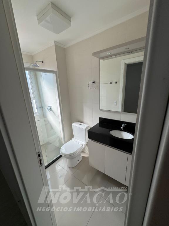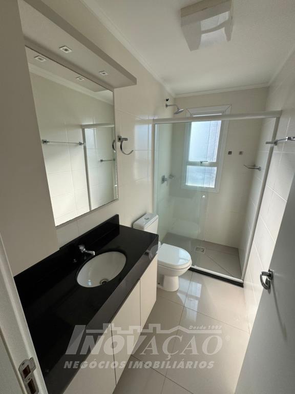 Apartamento novo, com 2 dormitórios, sendo os 2 suítes, sala com sacada, churrasqueira na cozinha, lavabo, área de serviço e garagem para 2 carros. Espera para água quente, gás central e espera para calefação. Prédio possui salão de festas mobiliado e decorado.