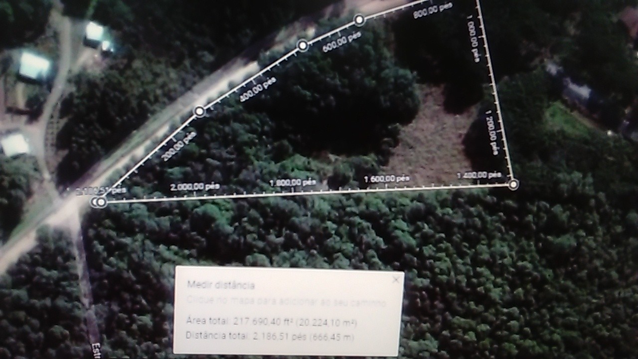 Área de terras de esquina, com 20.000,00m² em forma de triângulo, com mata, boa para chácara.