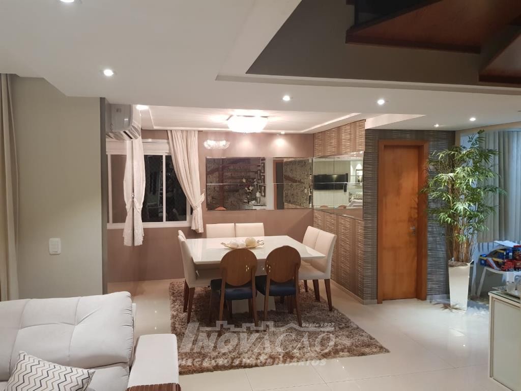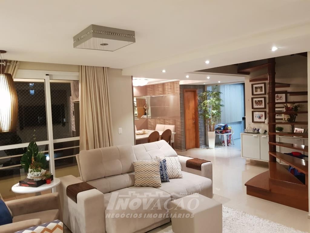 Inovação Negócios Imobiliários, vende em Caxias do Sul, Bairro Cruzeiro, cobertura duplex semi mobiliada, parte inferior sala ampla com sacada e churrasqueira, cozinha e área de serviço, parte superior três dormitórios sendo um suíte, dois banheiros, terraço, dois box de garagem.
