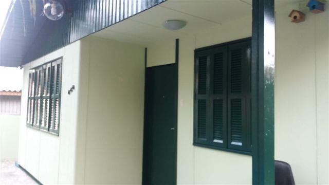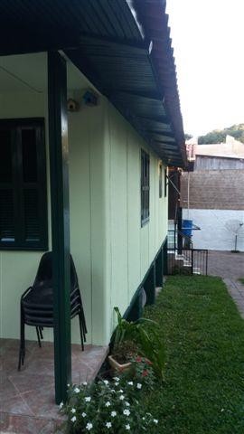 Duas casas no mesmo lote. Frente 75 m² com três dormitórios, com opção para o quarto dormitório, sala dois ambientes, cozinha, banheiro, área de serviço, piso em cerâmica e madeira, aberturas em madeira, quiosque com churrasqueira ,piscina, estacionamento. Fundos 48 m² madeira com dois pisos, um dormitório, sal, cozinha, área de serviço, porão de alvenaria ou garagem com um banheiro, piso em madeira, cerâmica, pátio fechado e divisa com área verde podendo cultivar na área.
