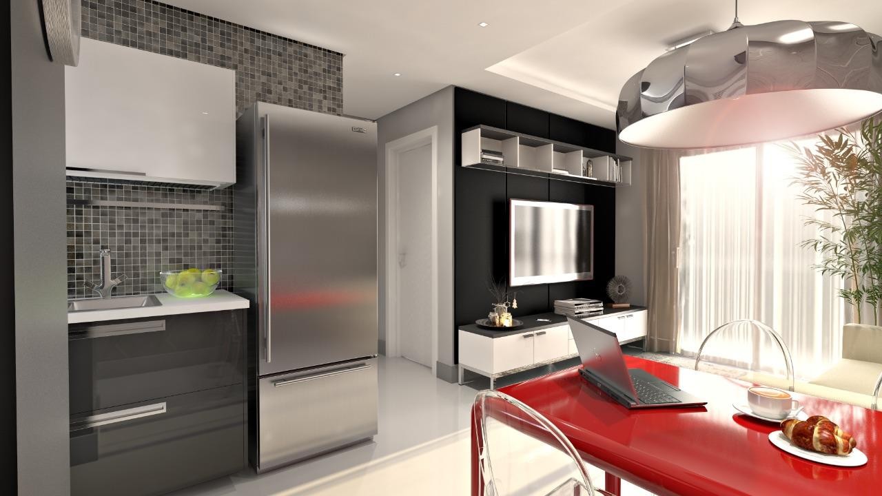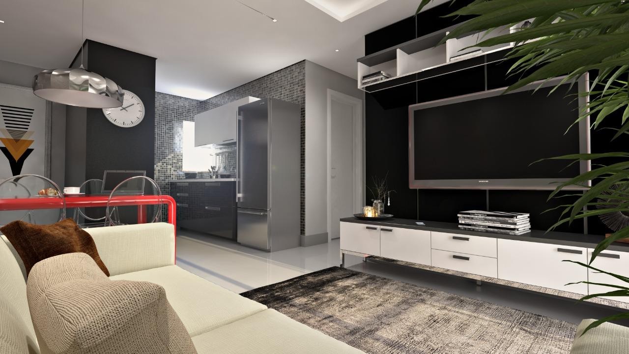 Apartamento com dois dormitórios sendo uma suíte, sala com sacada e churrasqueira, cozinha, banheiro social, área de serviço, piso em porcelanato e laminado, espera para água quente, gás central, aberturas de pvc, rebaixe em gesso e garagem para um automóvel ou opção para dois carros.