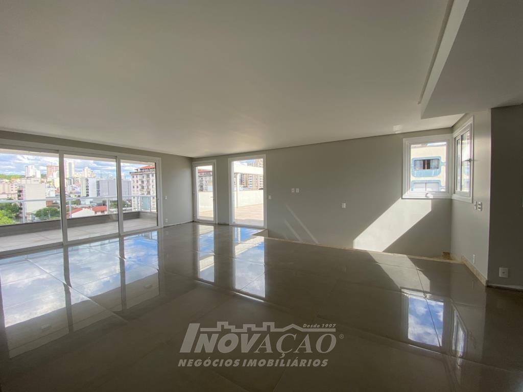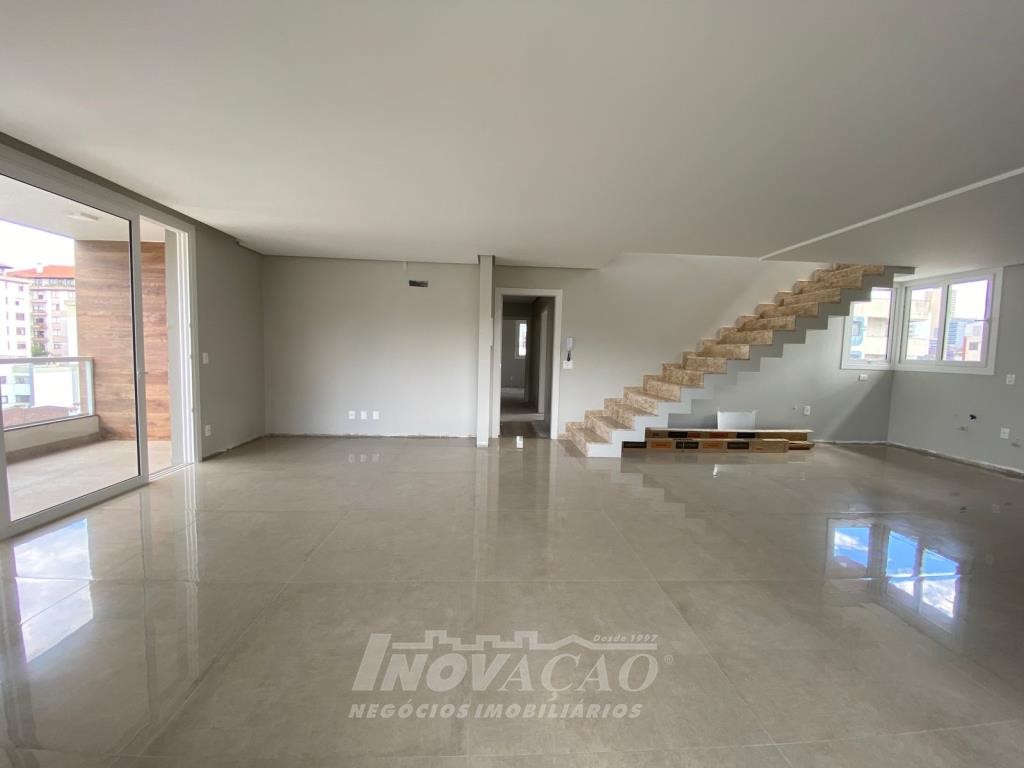 Excelente apartamento duplex cobertura, em fase final de construção, excelente padrão de acabamentos, com amplo terraço, em ótima localização, área nobre no centro, próximo ao estádio do Juventude, possuindo na parte inferior três suítes, sala de estar e jantar integrada com a cozinha e ampla sacada , área de serviço e lavabo, na parte superior salão de festas privativo com churrasqueira, amplo terraço e sacada com vista privilegiada para o estádio e dois box de garagem.