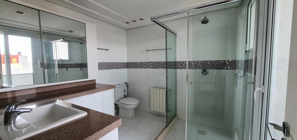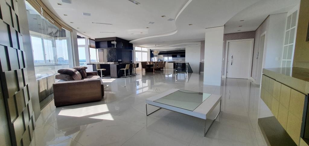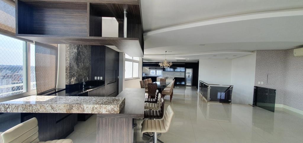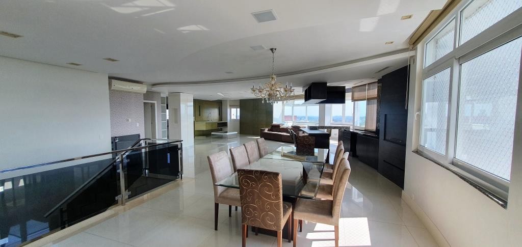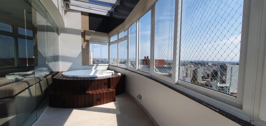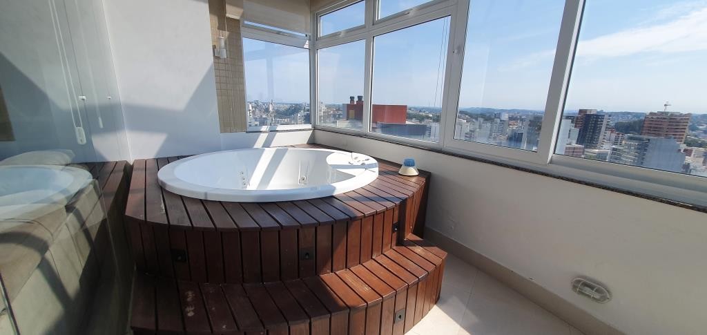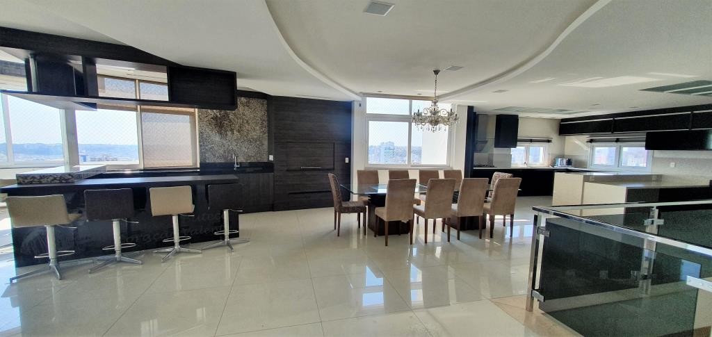 Inovação Negócios Imobiliários aluga em Caxias do Sul/RS. Cobertura bem localizada, mobiliada com 5 dormitórios sendo todos suítes e 2 com sacada. No andar superior o imóvel possui sala de estar e jantar, cozinha, espaço com churrasqueira, acesso a sacada com Spa, área de serviço e depósito. Todos os ambientes contam com calefação, ar condicionado e rebaixo em gesso. Possui 3 vagas de garagem com, prédio com salão de festas e zelador.