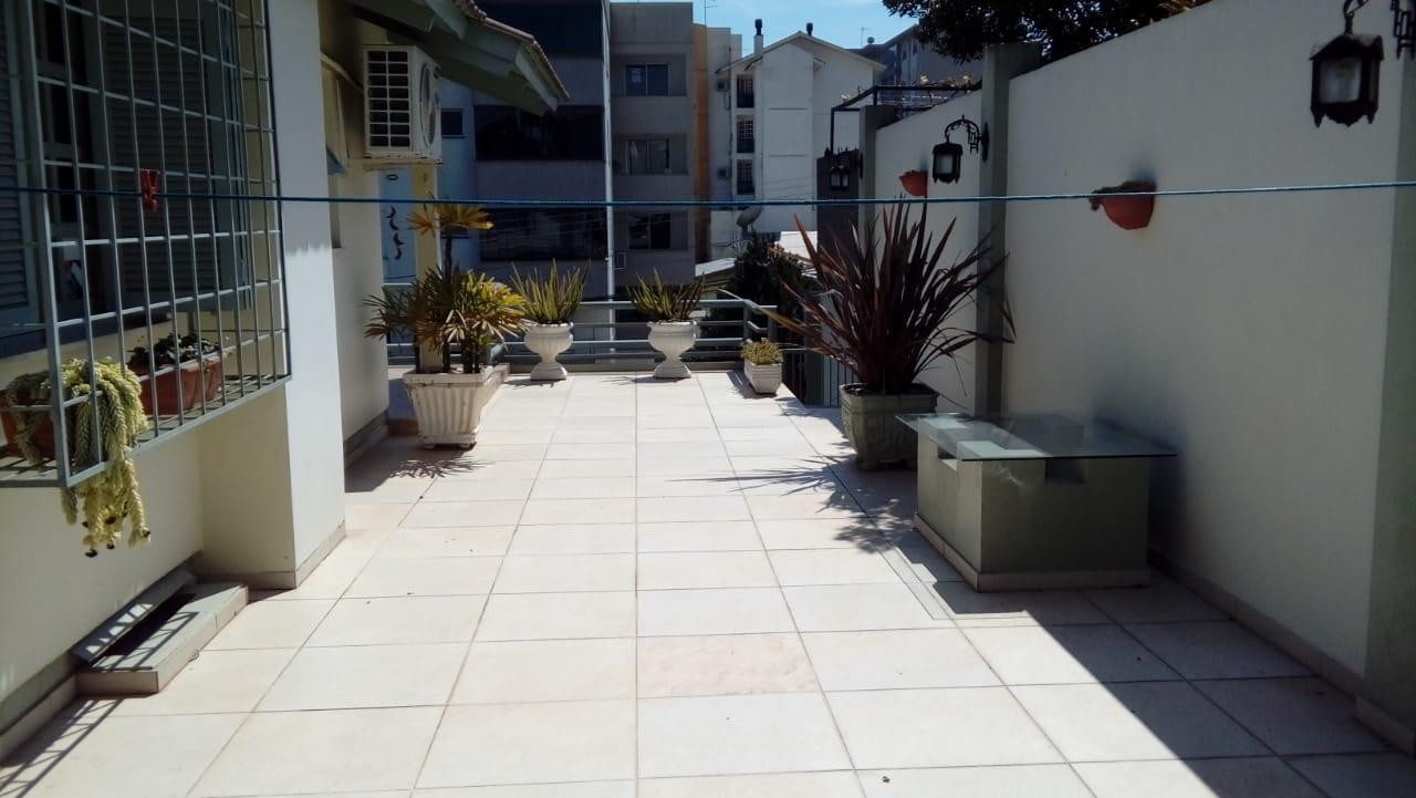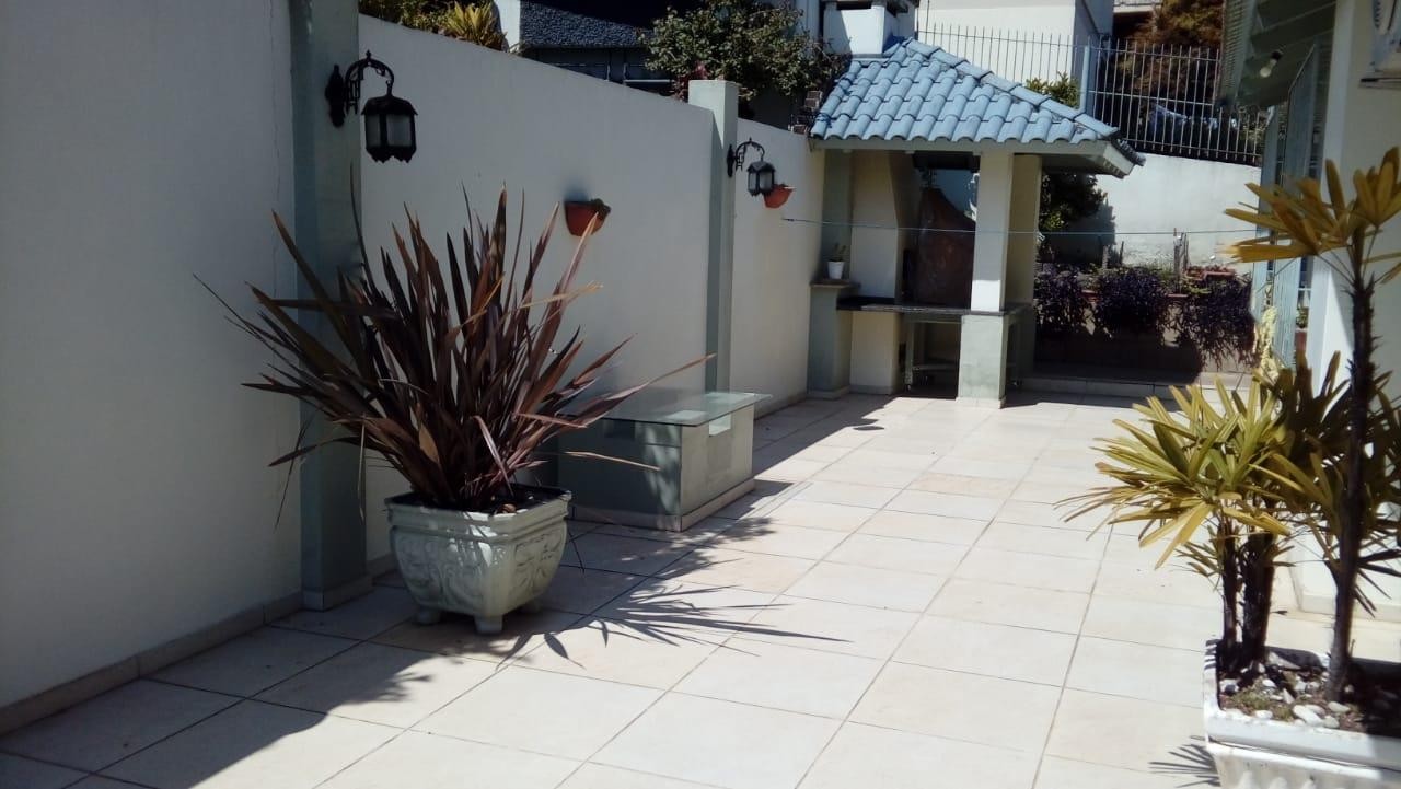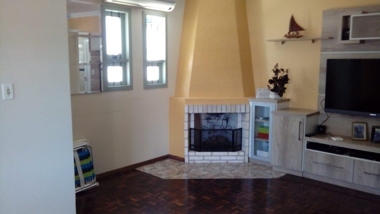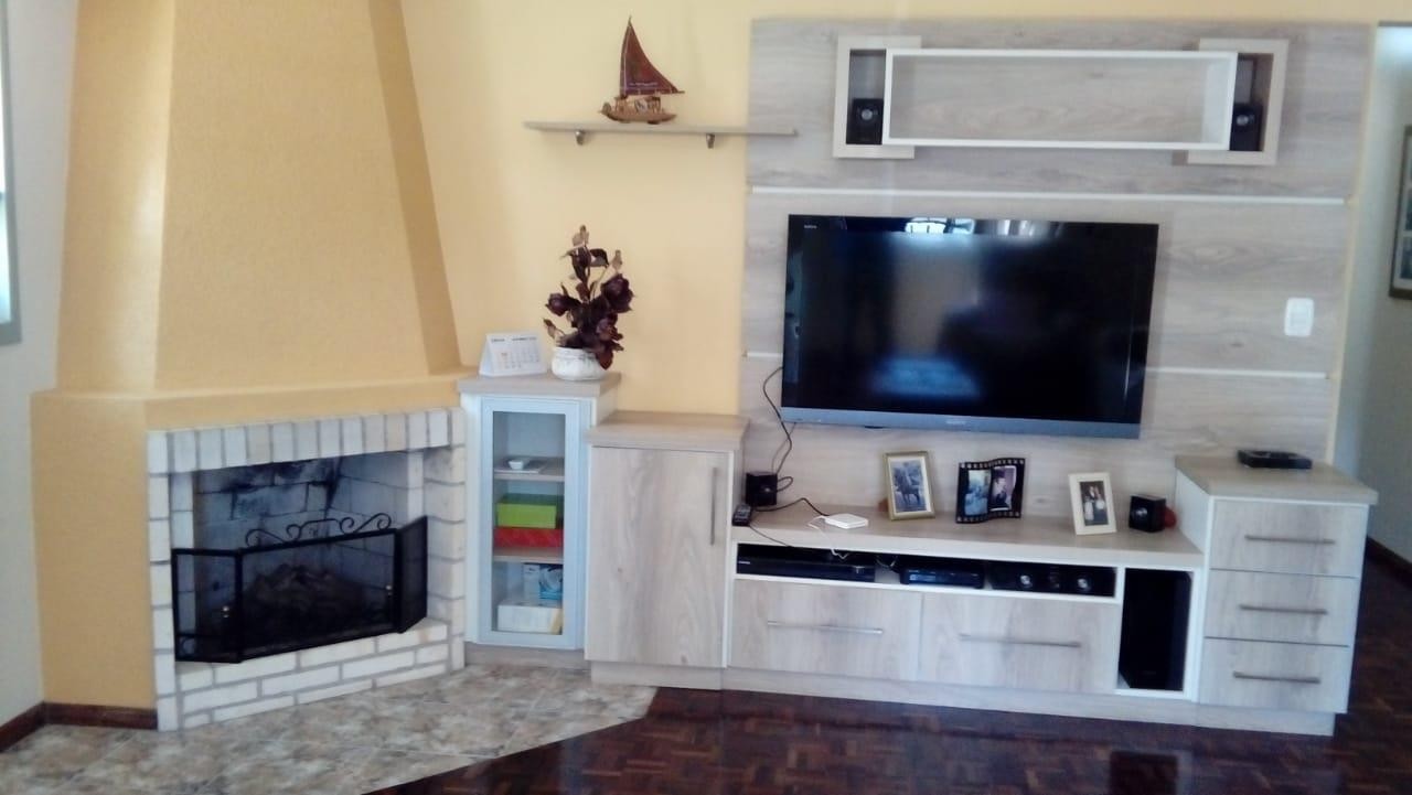 Casa de três dormitórios, semi mobiliada, ampla sala, com lareira, cozinha, dois banheiros, área de serviço, terraço, churrasqueira e pátio. Parte térrea duas salas comerciais, com aproximadamente 45,00m² cada uma. Dois box de garagem. Frente norte.