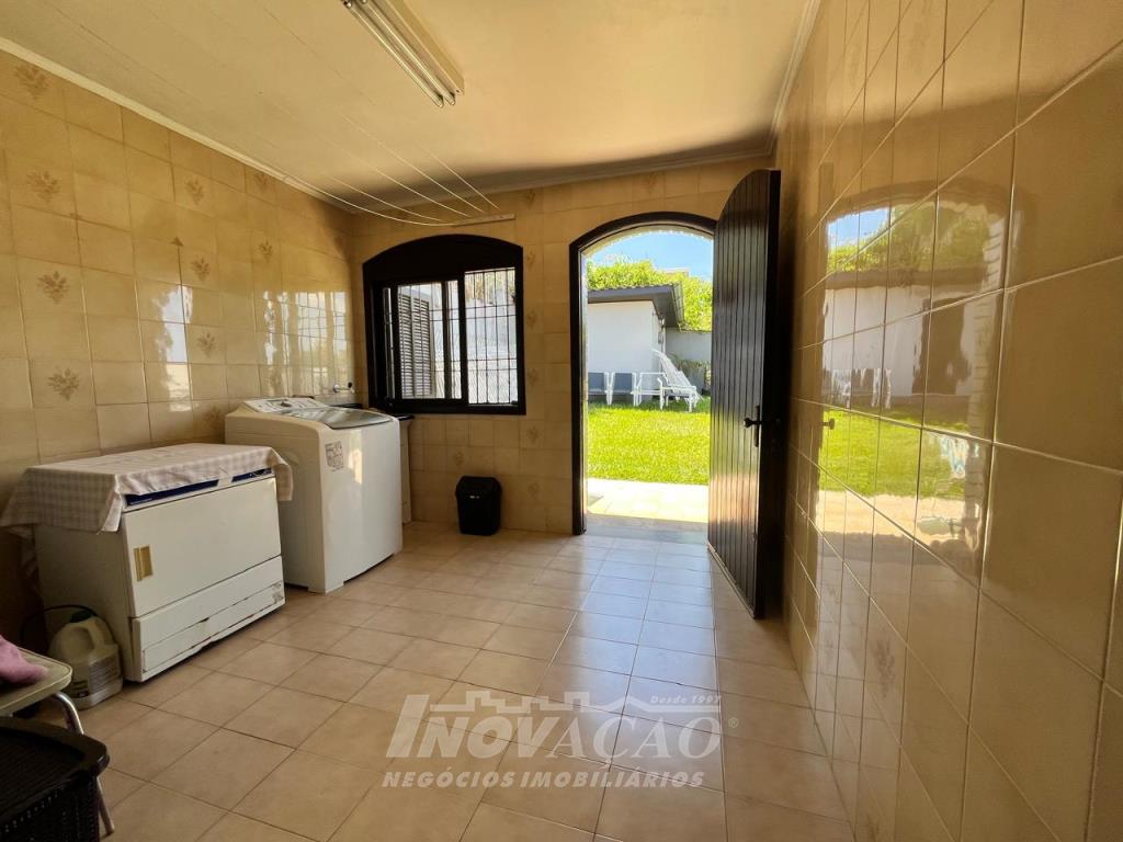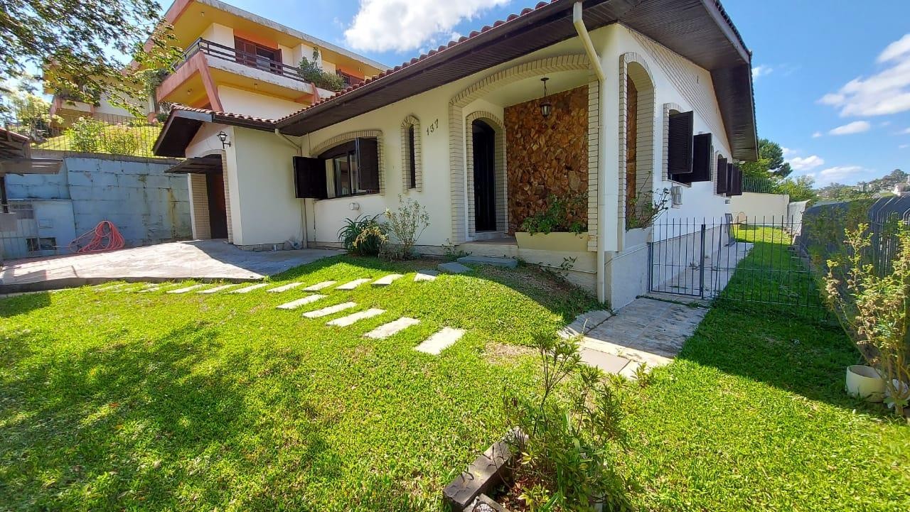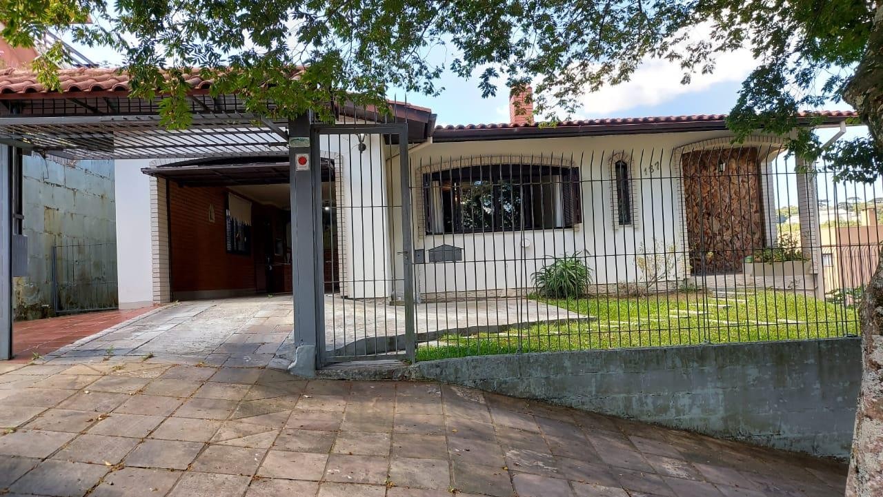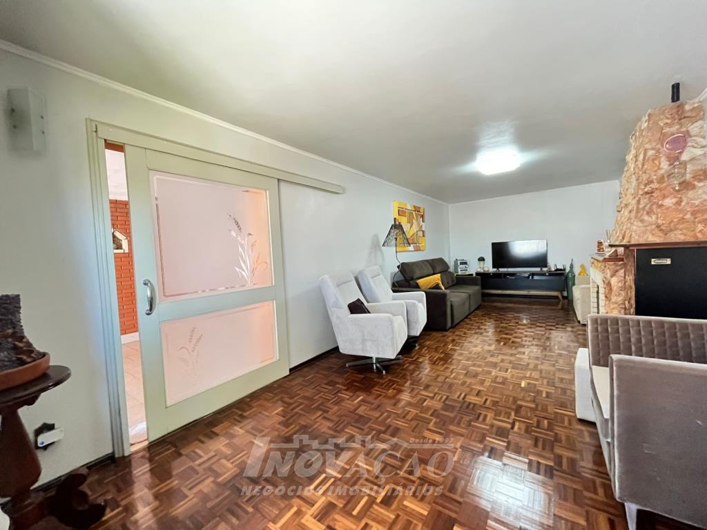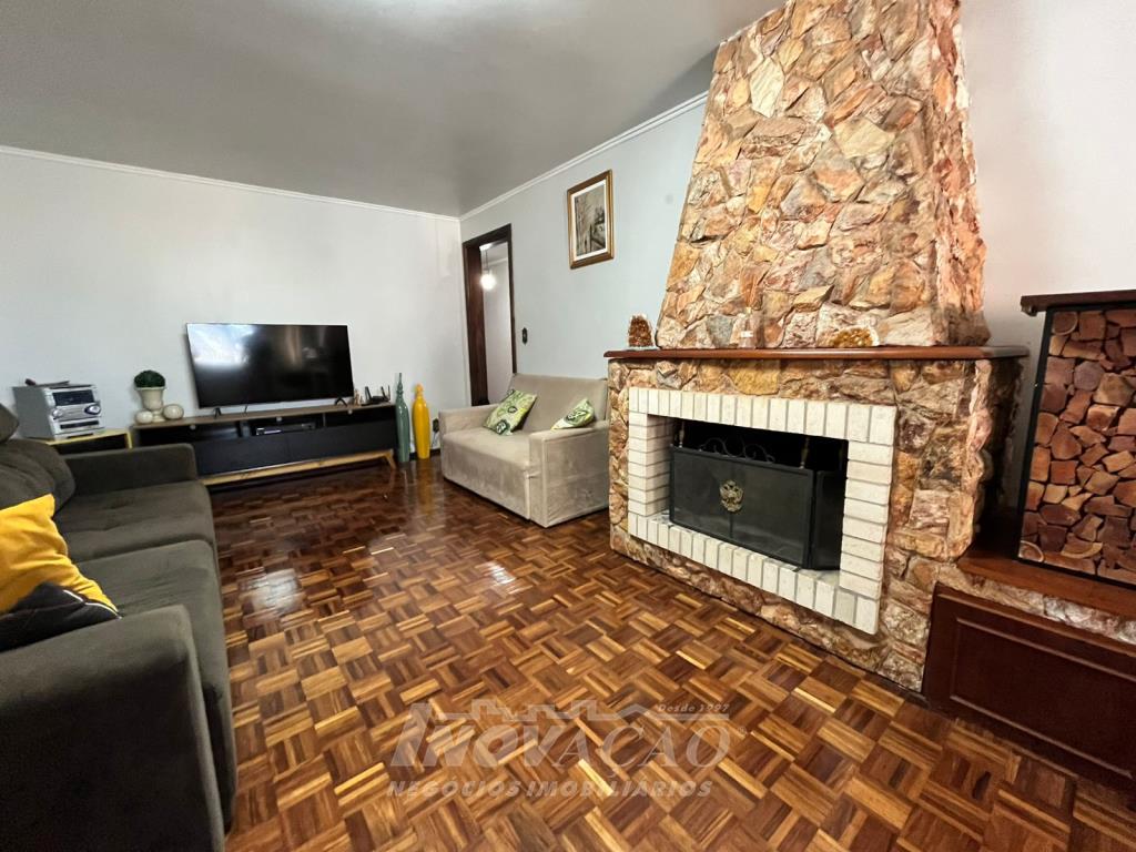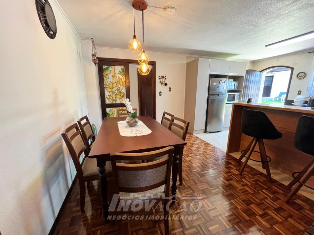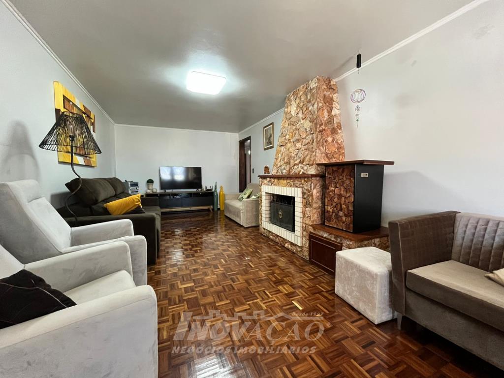 Inovação Negócios Imobiliários Vende Casa de alvenaria com três dormitórios, sendo um suíte, sala ampla com dois ambientes e lareira, lavanderia, lavabo, banheiro social, cozinha ampla, calefação, piso em parquet e cerâmica, garagem pra dois carros e mais estacionamento, pátio amplo com gramado e calçada, deposito e adega com 16m², terreno com 530,00 m².
