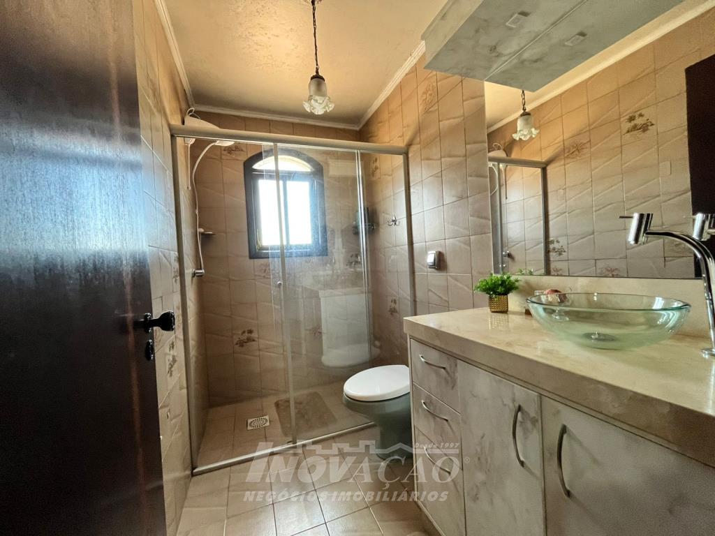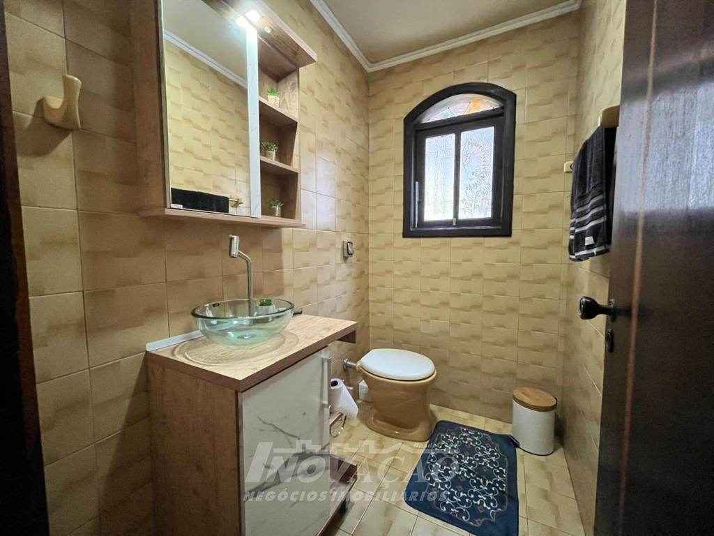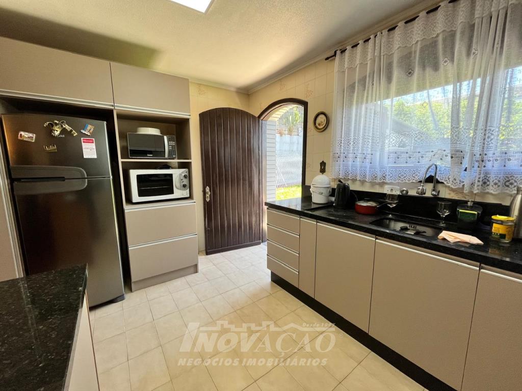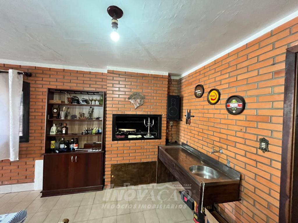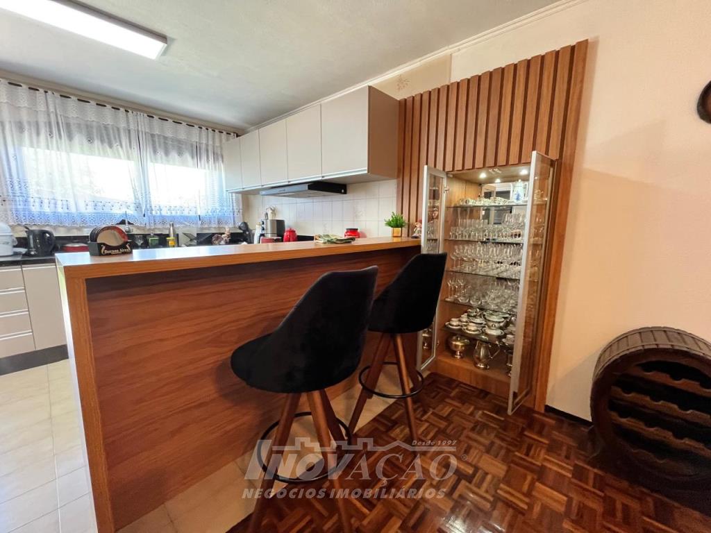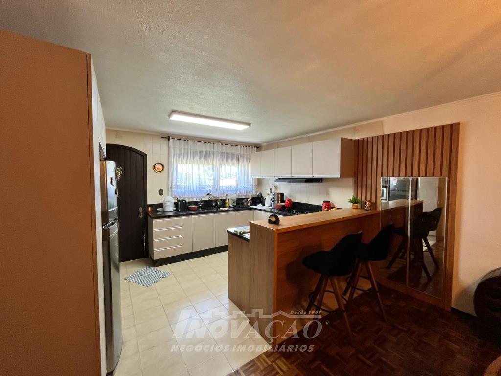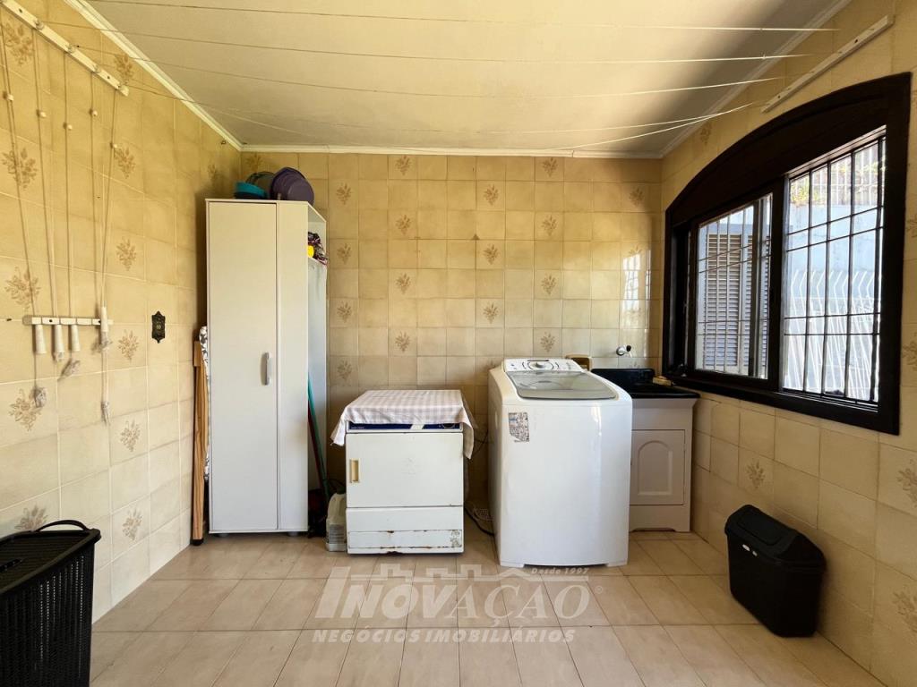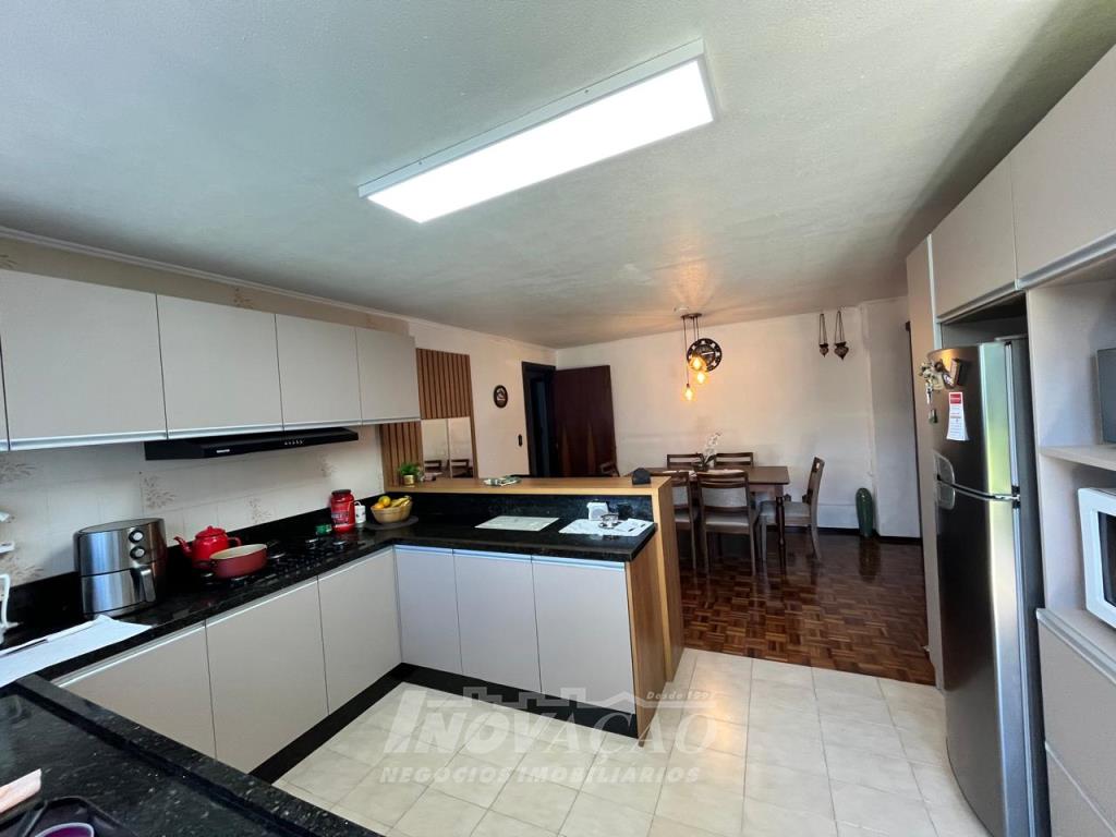 Inovação Negócios Imobiliários Vende Casa de alvenaria com três dormitórios, sendo um suíte, sala ampla com dois ambientes e lareira, lavanderia, lavabo, banheiro social, cozinha ampla, calefação, piso em parquet e cerâmica, garagem pra dois carros e mais estacionamento, pátio amplo com gramado e calçada, deposito e adega com 16m², terreno com 530,00 m².