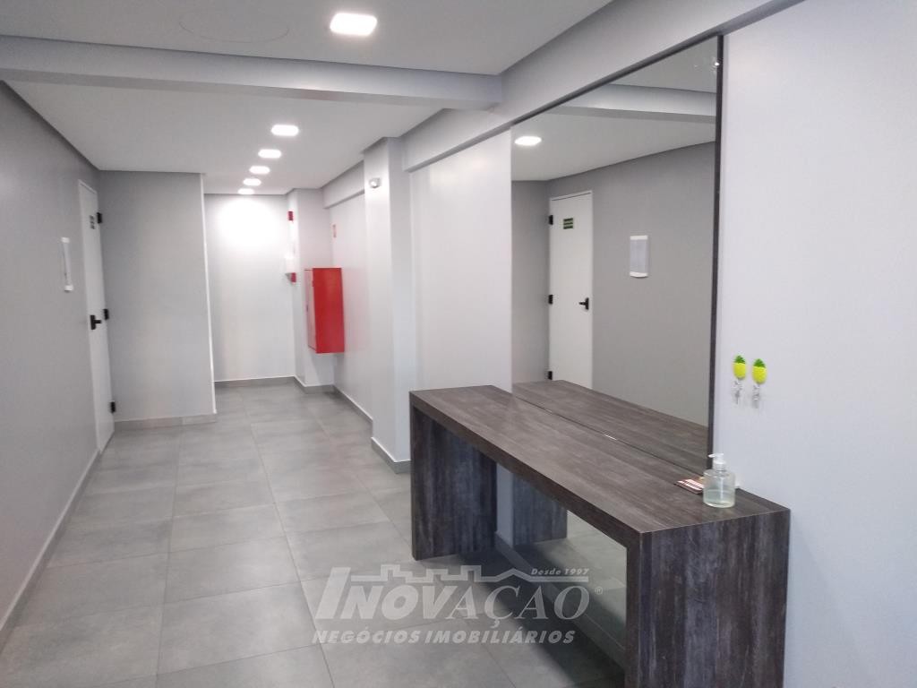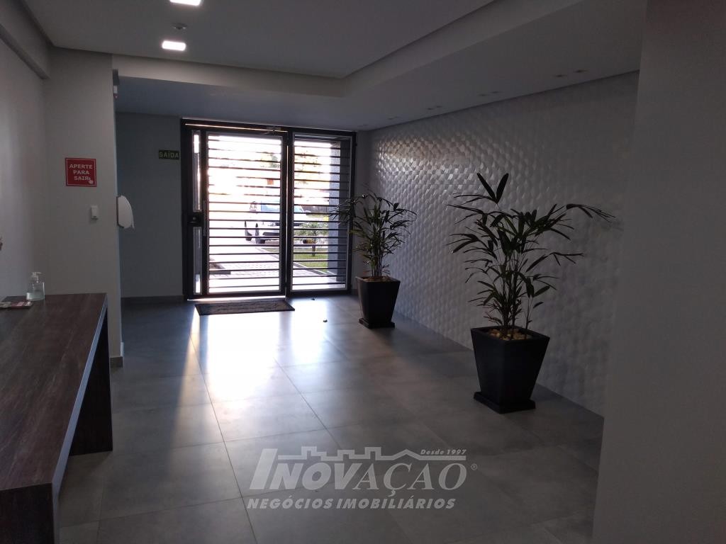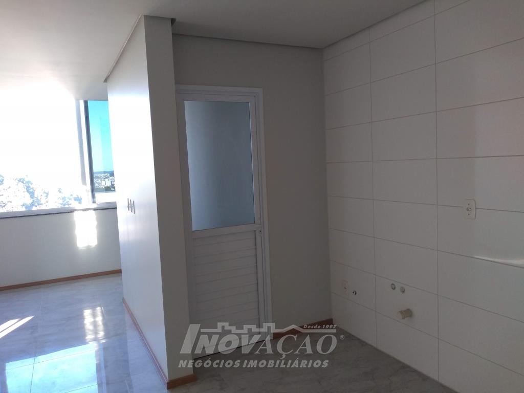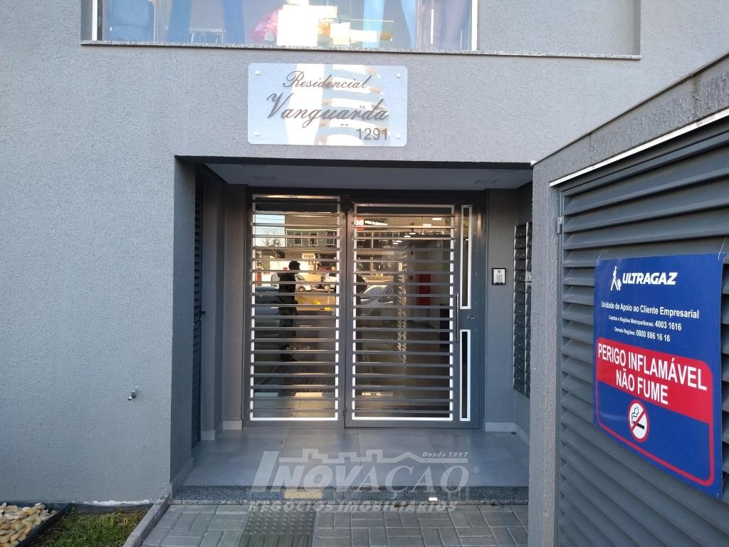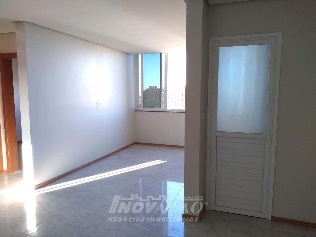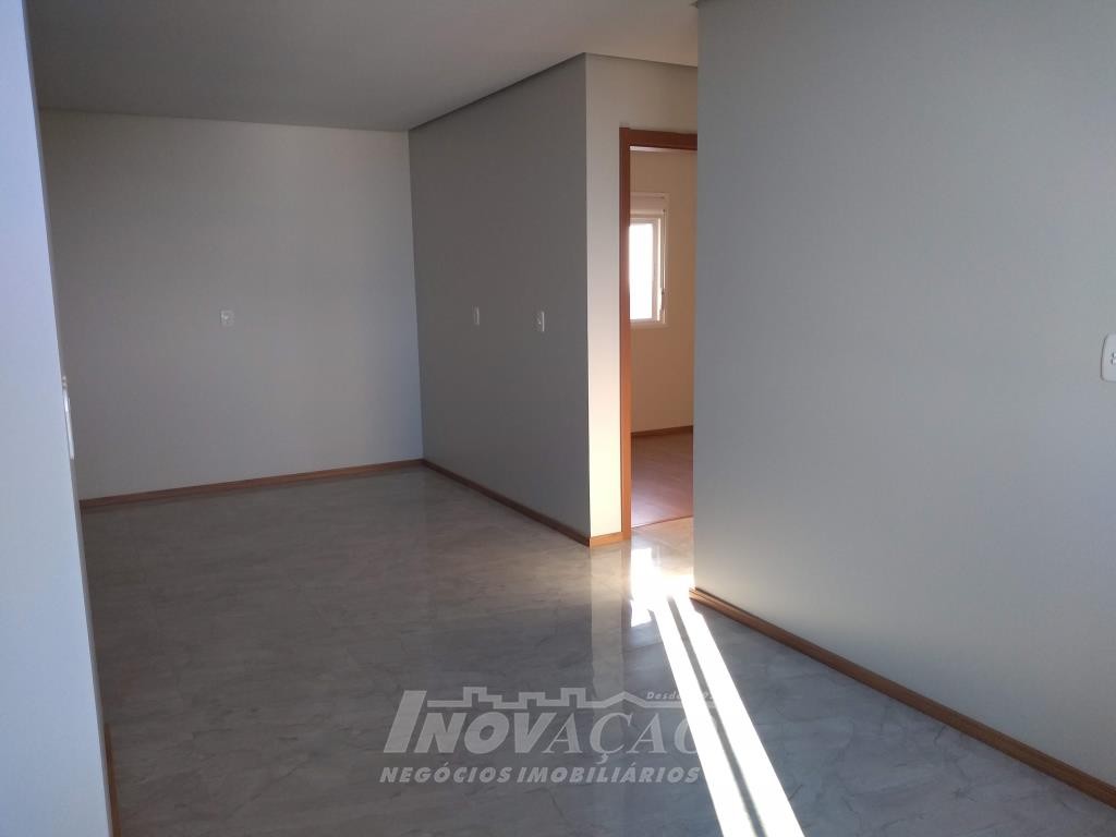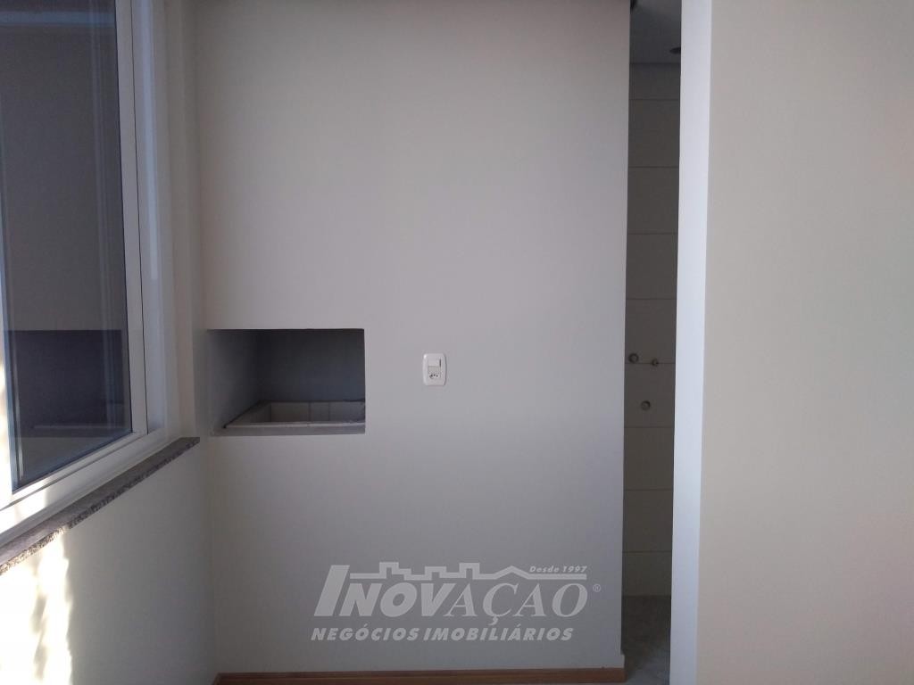 Inovação Negócios Imobiliários vende apartamento, no Bairro Desvio Rizzo, ótima localização, com dois dormitórios, sala com sacada e churrasqueira, cozinha, área de serviço com acesso para sacada, banheiro social, aberturas em alumínio, instalação para água quente, gás central, hidrômetros individuais, garagem para um automóvel. Prédio com elevador.