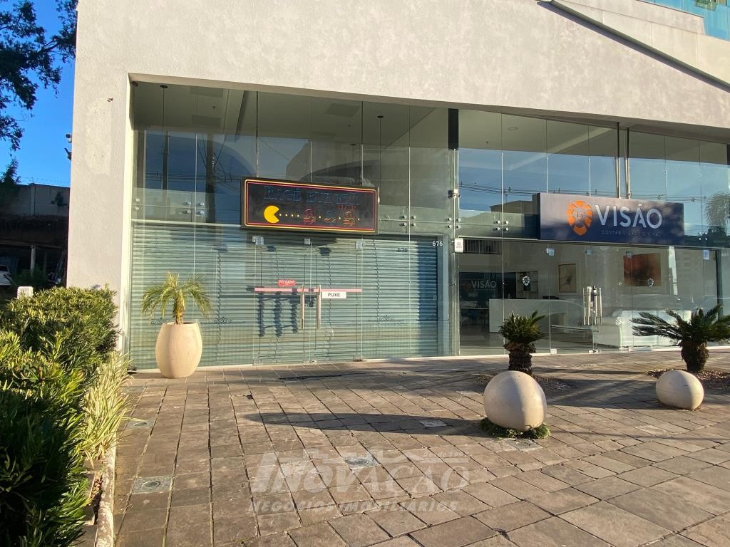 Inovação Negócios Imobiliários aluga em Caxias do Sul, RS, no bairro Sanvitto, sala térrea/ loja comercial, com 242,00m², quatro banheiros, piso em porcelanato, mezanino e uma vaga de garagem .Posição solar Norte.