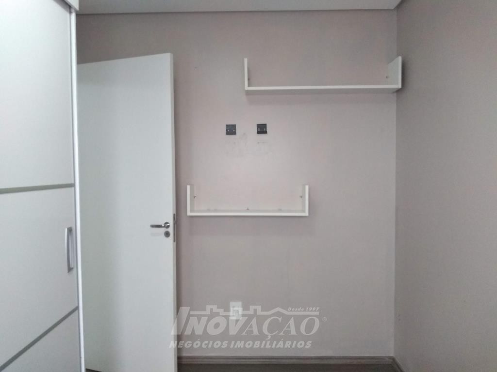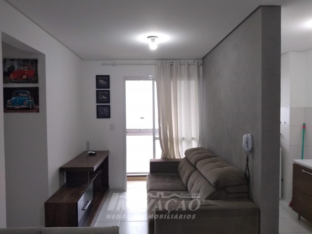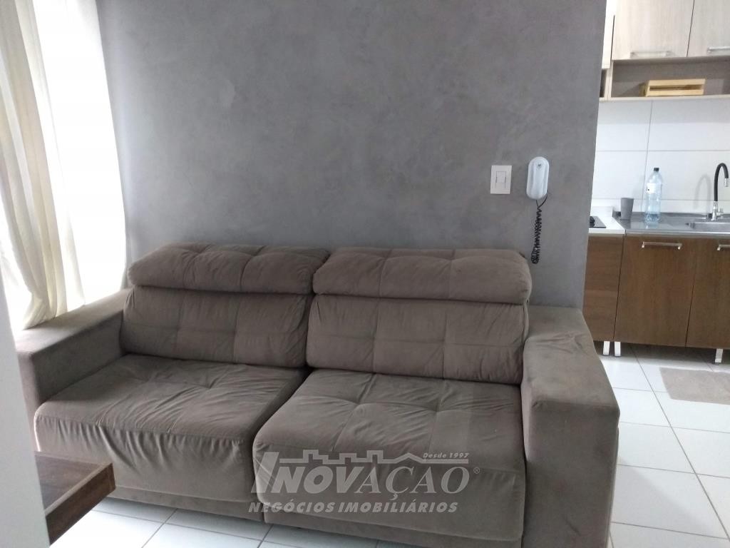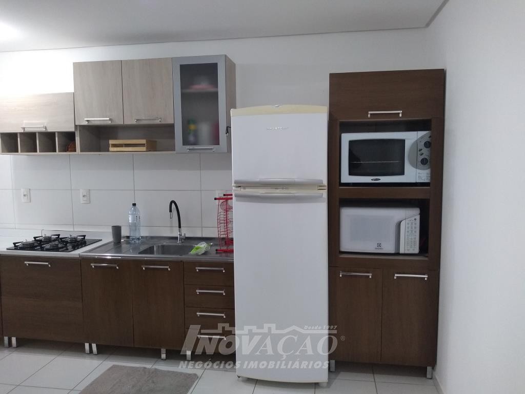 Inovação Negócios Imobiliários vende em Caxias do Sul, RS, no bairro Desvio Rizzo, apartamento mobiliado com dois dormitórios, sala, cozinha, banheiro social, área de serviço, sacada fechada com churrasqueira, uma vaga de garagem. A posição solar é sul.