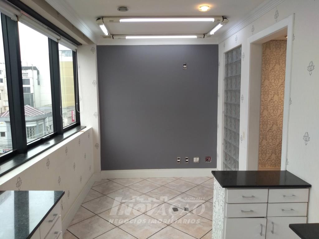 Inovação Negócios Imobiliários, vende em Caxias do Sul, no centro, sala aérea com 02 banheiros. A sala está preparada para consultório, com recepção, iluminação, copa e sala de espera. Posição solar leste, de frente. Box garagem para 01 carro.