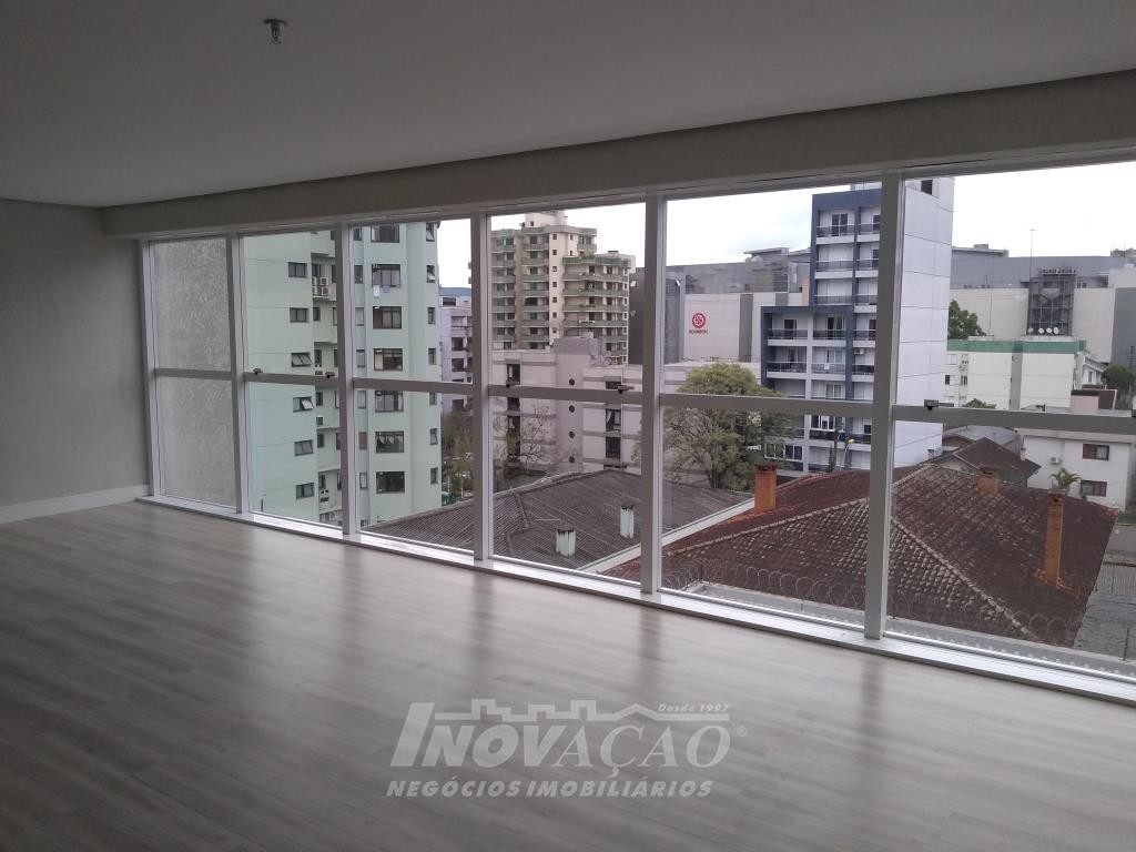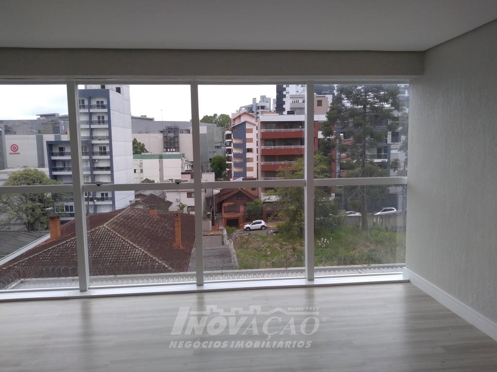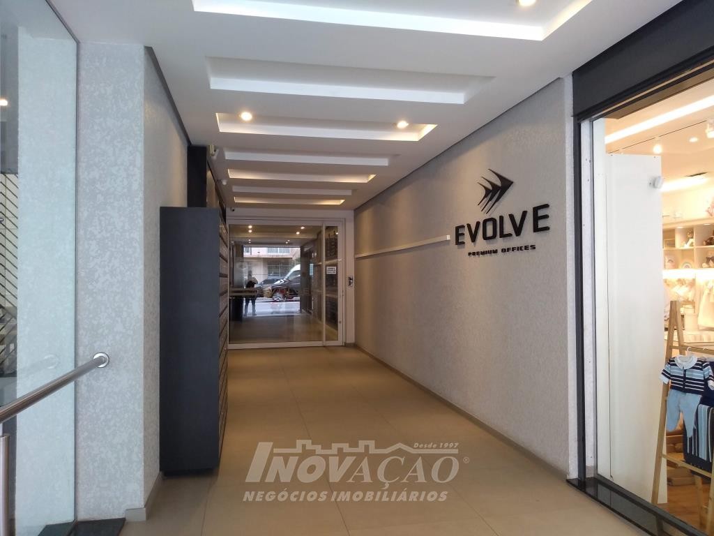 Inovação Negócios Imobiliarios, vende em Caxias do Sul, bairro São Pelegrino, sala aérea com 51,77 m2, banheiro e uma vaga de garagem. O predio tem arquitetura moderna com fachada em pele de vidro espelhado e portaria em horario comercial. O predio tem sala de reuniões, auditório e salão de festas.
