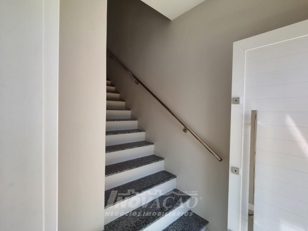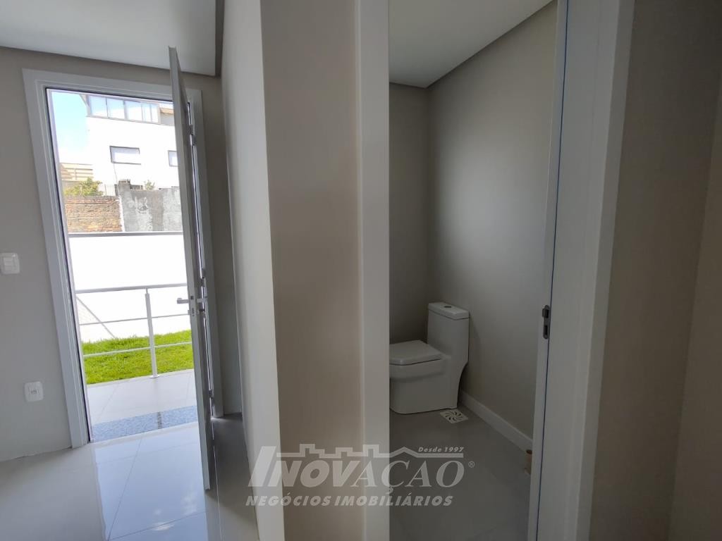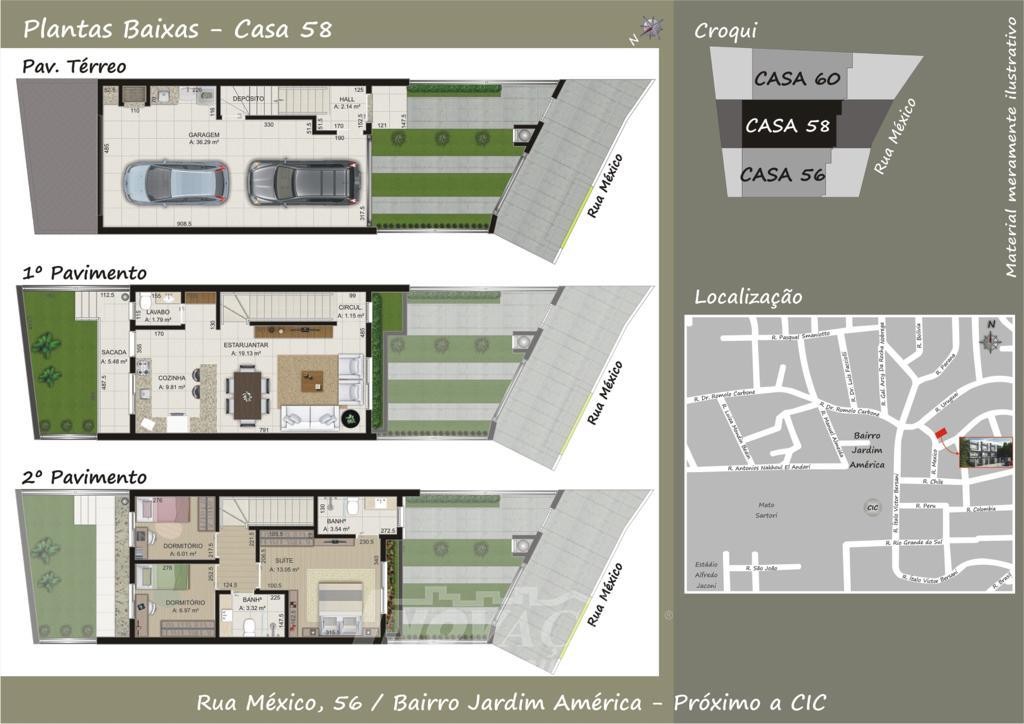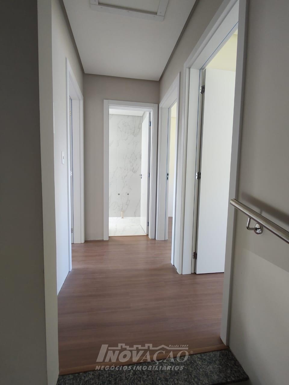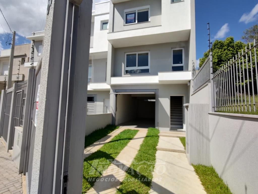 Inovação Negócios Imobiliários vende sobrado no Bairro Jardim América com entrada individual, três dormitórios, sendo 01 suíte, sala de estar com espera para lareira, cozinha integrada com o jantar, área de serviço, banho social, lavabo, 02 vagas de garagem, piso laminado e porcelanato, rebaixo em gesso, churrasqueira, espera para água quente, esquadrias de PVC, espera para energia solar, gás central individual, hidrômetro individual, porteiro eletrônico, pátio privativo frente e fundos, excelente posição solar. Ótimo padrão de acabamento. Prazo de entrega outubro 2025