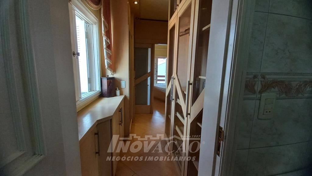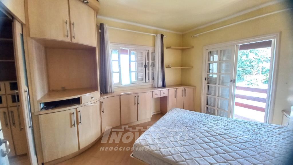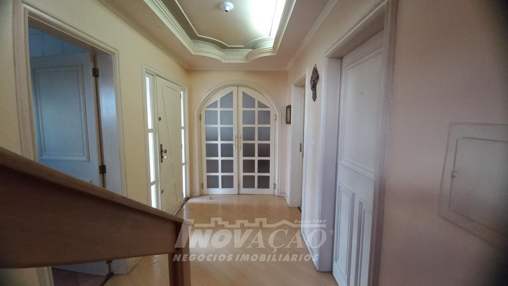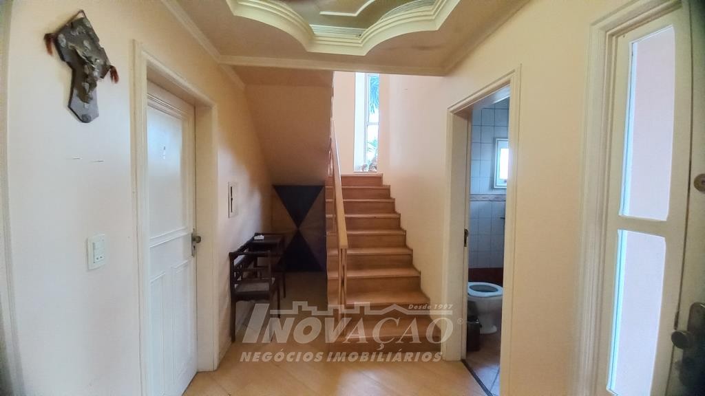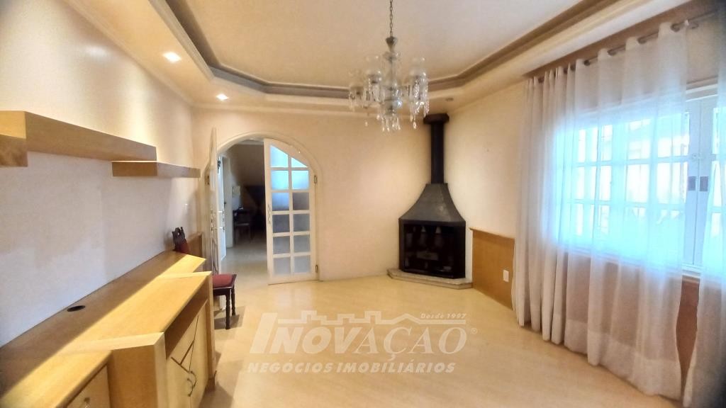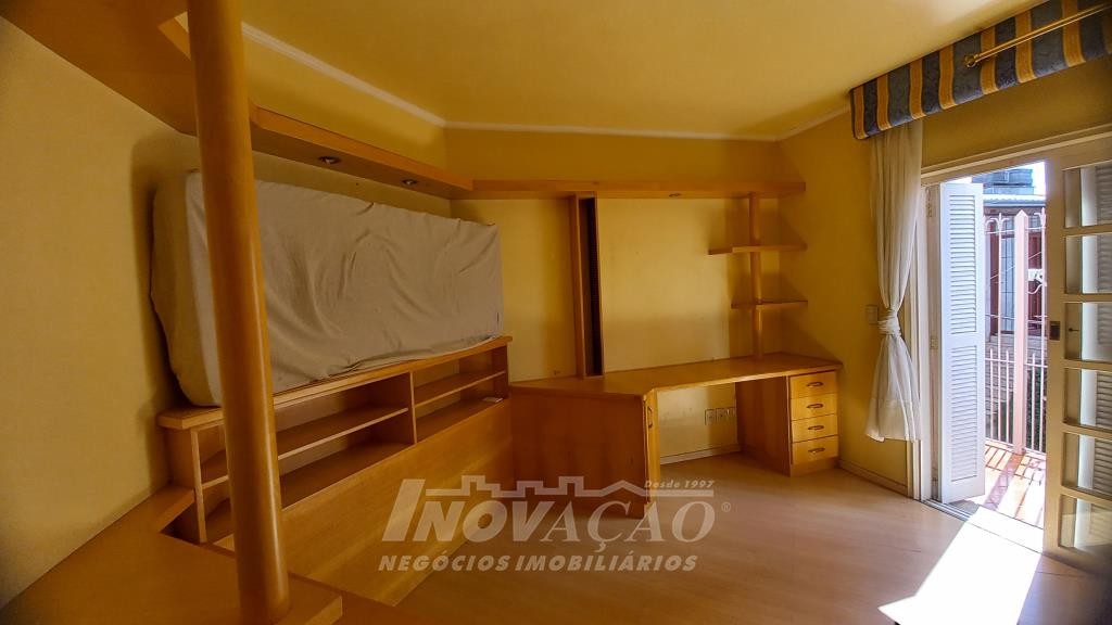 Inovação Negócios Imobiliários vende em Caxias do Sul, RS, no bairro Presidente Vargas, ampla casa semimobiliada com quatro dormitórios, sendo um suíte com closet e hidromassagem, sala de estar com lareira, cozinha totalmente mobiliada, área de serviço, quatro sacadas, churrasqueira, banheiro social, lavabo, garagem fechada para um carro, pátio para quatro carros na parte de trás, canil. Posição solar Oeste.