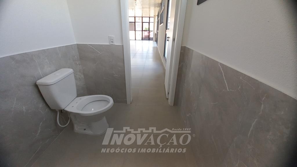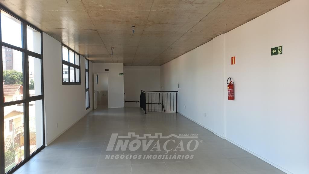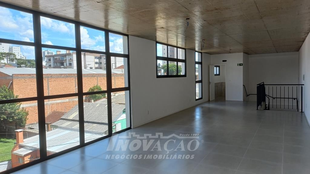Inovação Negócios Imobiliários aluga em Caxias do Sul, RS, no bairro Sagrada Familia, sala térre / loja comercial com 143,43m², sendo 75,61 mezanino e 67,82 piso térreo, possui piso em porcelanato, dois banheiros, fachada em vidro. A posição solae é Leste.