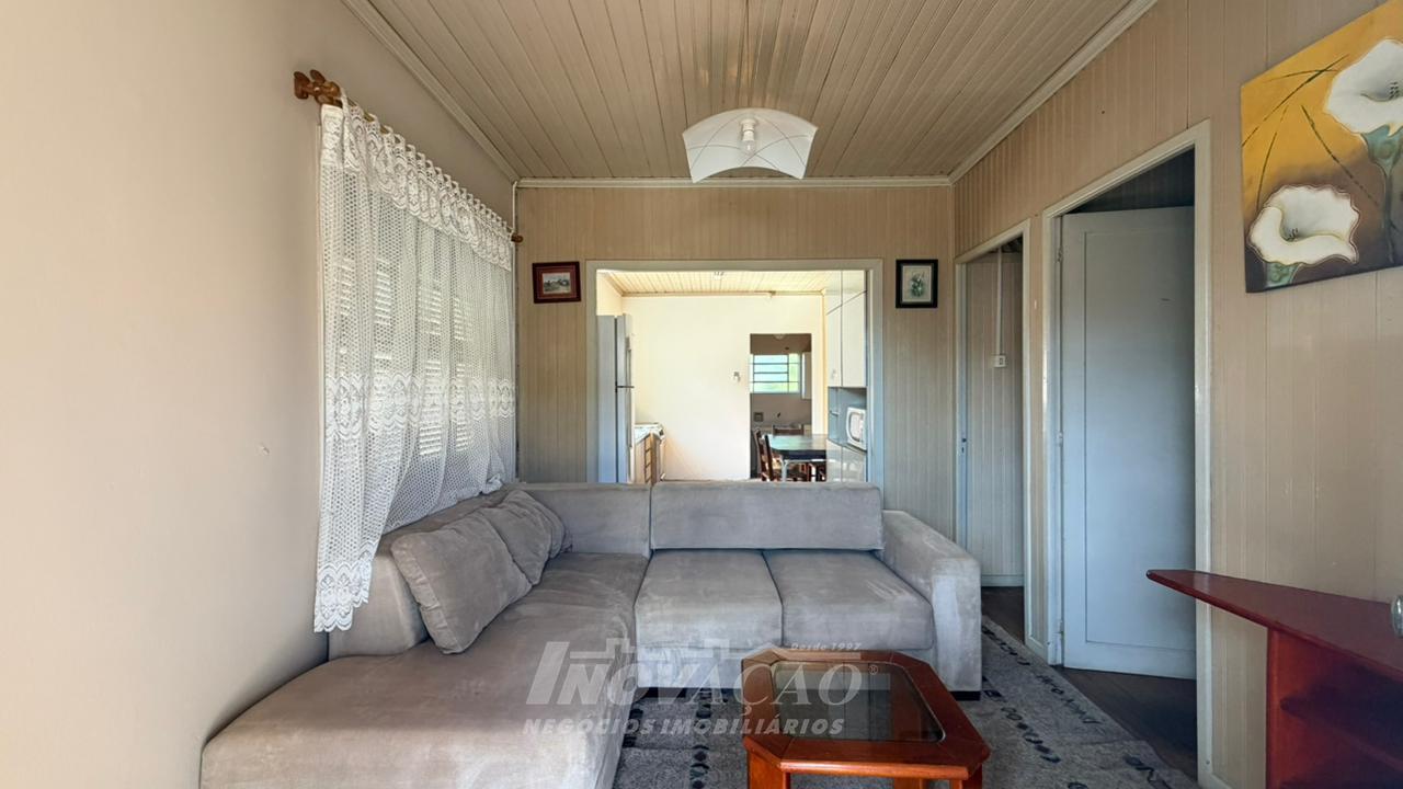 Inovação Negócios Imobiliários, vende em Caxias do Sul, bairro Pio X, Casa de alvenaria com frente norte, com dois dormitórios, com sala, cozinha e área de serviço. Ponto comercial.