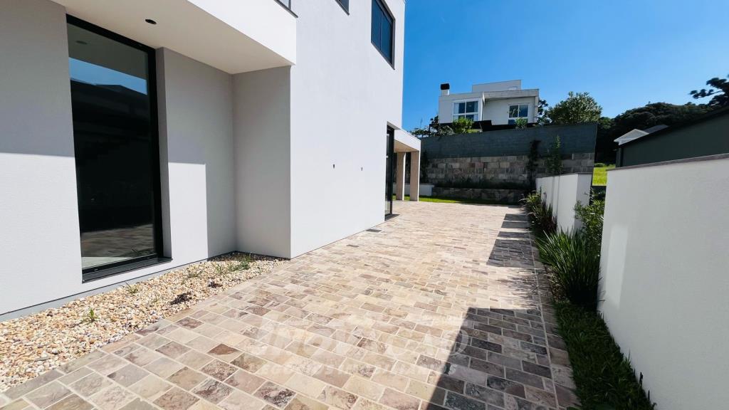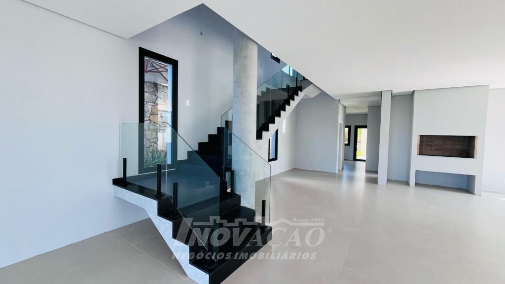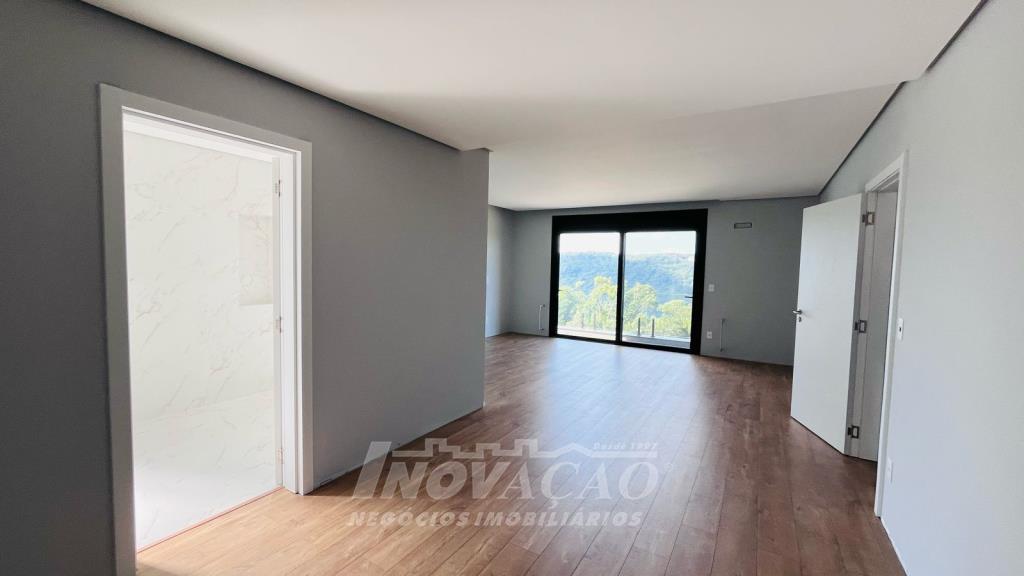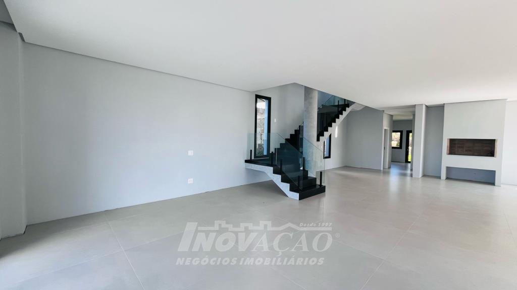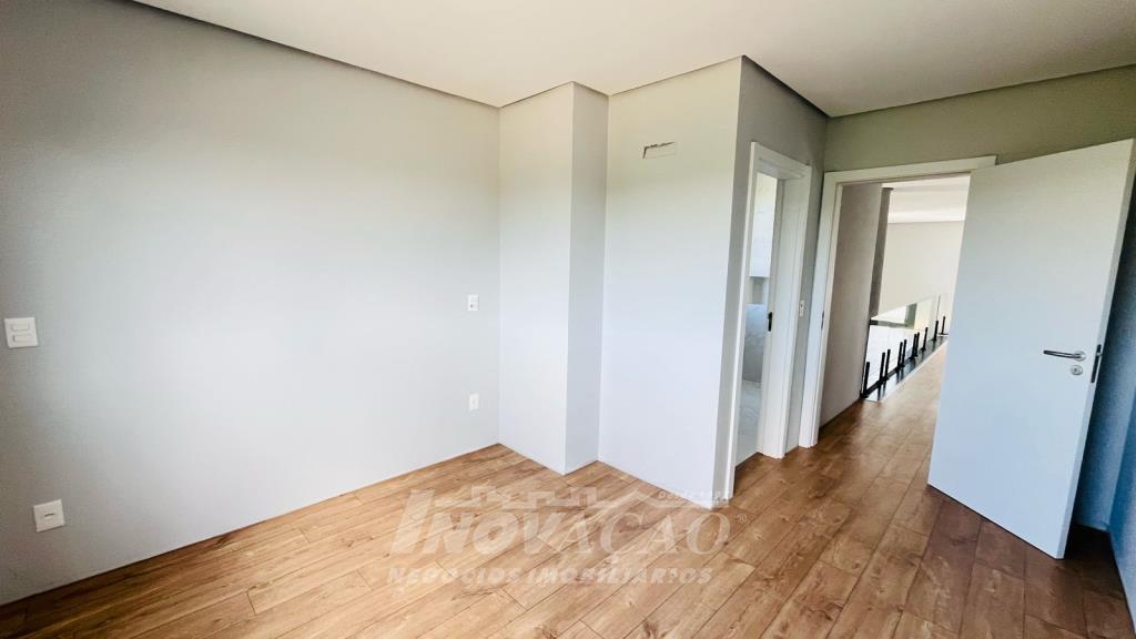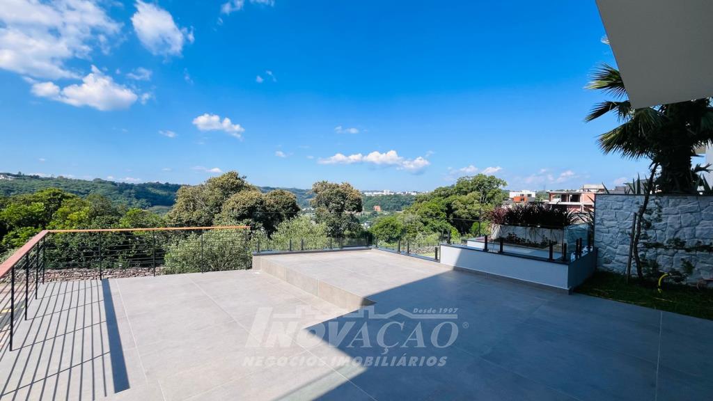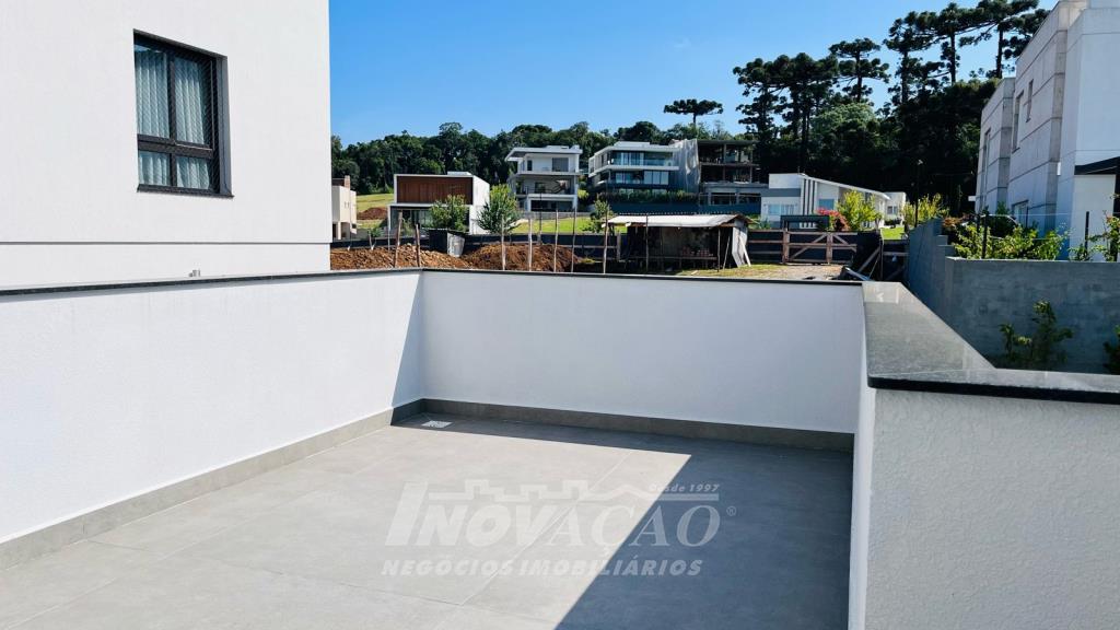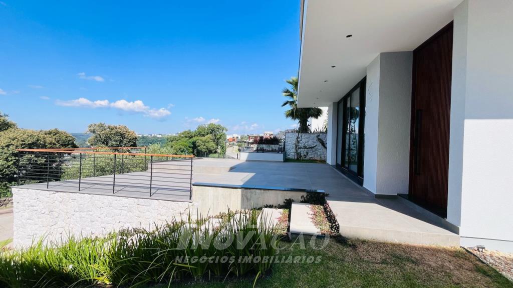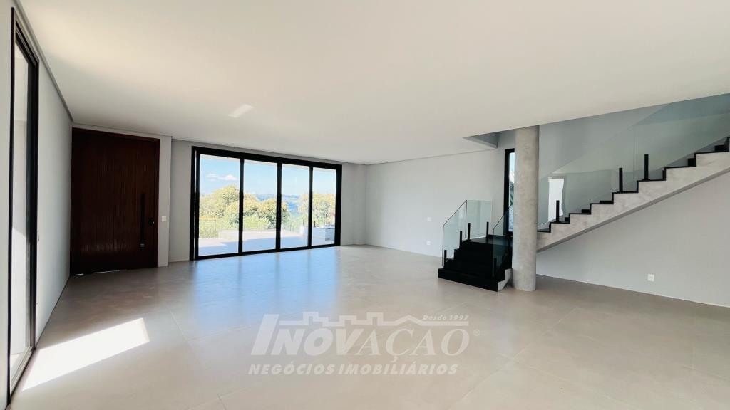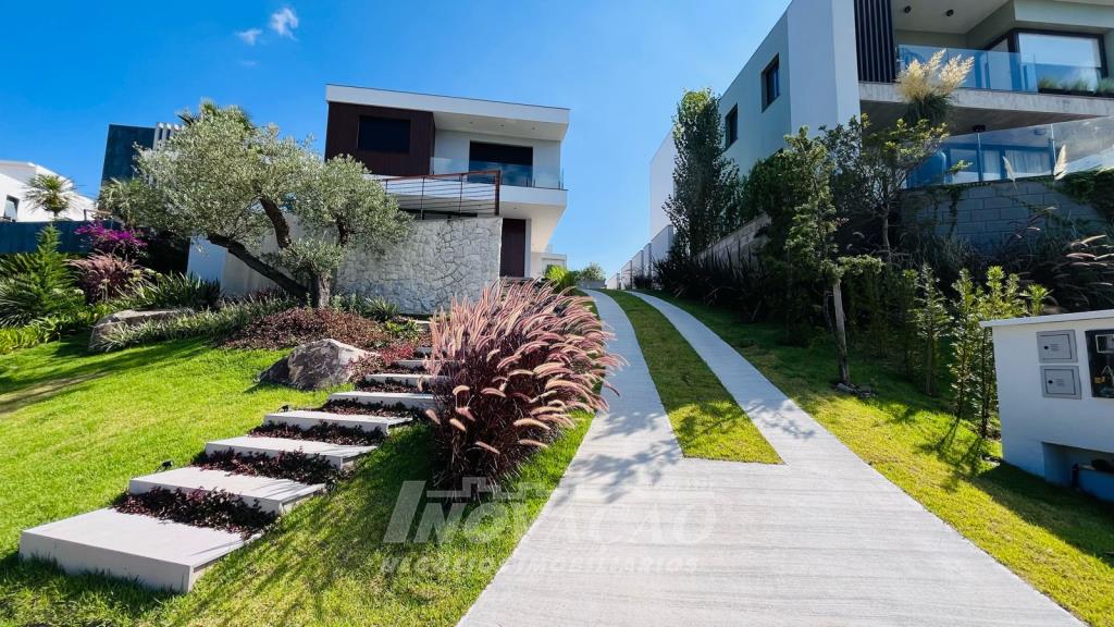 Imobiliária Inovação vende excelente casa em condomínio fechado, com cozinha e sala de jantar integradas, sala de estar, lavanderia, lavabo, com 3 suítes, sendo uma com closet, (opção 4º dormitório ou office), área social com 120m² e terraço de 80m² (espera piscina ofurô) com excelente vista para a linha 40, 3 vagas de garagem cobertas, esquadrias PVC pretas com vidro duplo / persianas motorizadas, piso aquecido área social e banheiros / calefação dormitórios, esperas de elevador, Ar-condicionado em todos ambientes (k7 na área social), aquecimento solar de água, fotovoltaico, captação e armazenamento de 10.000l de agua da chuva / rede de irrigação do jardim e espera de lareira na área social. O Condomínio conta com uma infraestrutura completa, clube social com salão de festas para 120 pessoas, piscina externa, piscinas internas com raias de 25 metros e sistema de aquecimento a gás, espelhos d´água, fitness, sauna, sala de jogos, espaço kids, terraços cobertos e abertos e vagas de estacionamento internas e externas, sala de jogos, espaço gourmet para 40 pessoas. Clube de Tênis com 2 quadras de tênis, sendo 1 coberta, quiosque gourmet, Museu do Vinho e estacionamento. Clube Esportivo com quiosque, Campo de Futebol, Quadra Poliesportiva, playground, ciclovia e trilhas ecológicas. Sustentabilidade e Tecnologia; Preservação de 4.48 hectares de mata nativa, telhados verdes, energia eólica e fotovoltaica nas áreas sociais, iluminação de LED, cabeamento subterrâneo, reutilização da água da chuva. Segurança 24 horas e pórtico com guarita blindada.