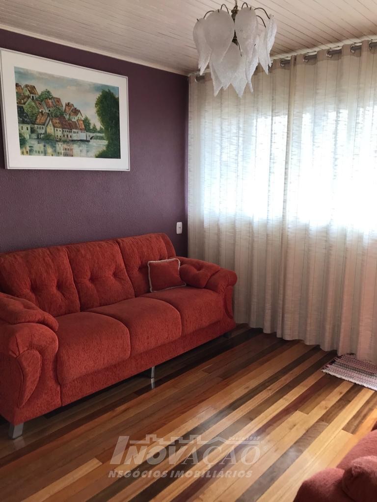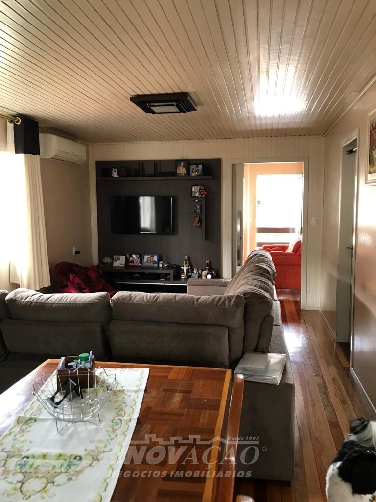 Imobiliária Inovação vende em Caxias do Sul, Bairro Esplanada, casa de dois pavimentos, averbada, na parte térrea garagem para três carros, salão de festas, superior três dormitórios, sala de estar, sala de jantar, cozinha, área de serviço, banheiro, sacada, pátio. ficam móveis sob medida, churrasqueira, espera para água quente. Próxima a colégio, parada de ônibus. Lugar alto. Aceita permuta até 50% do valor.
