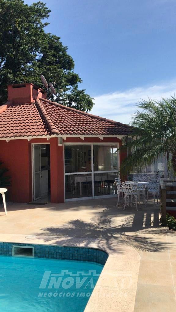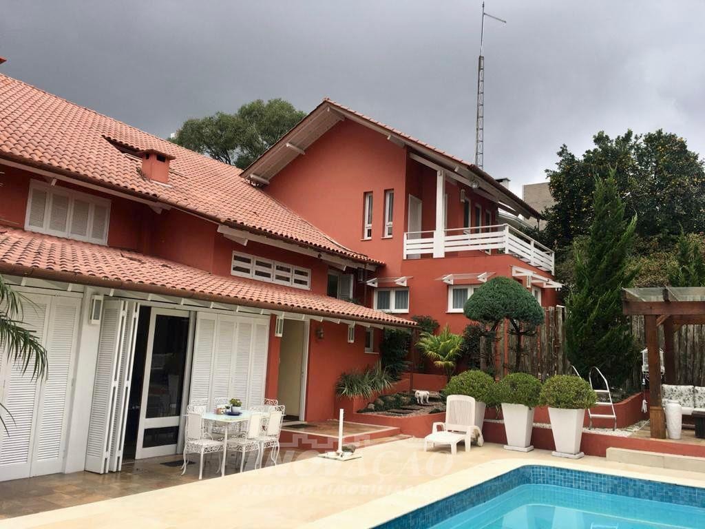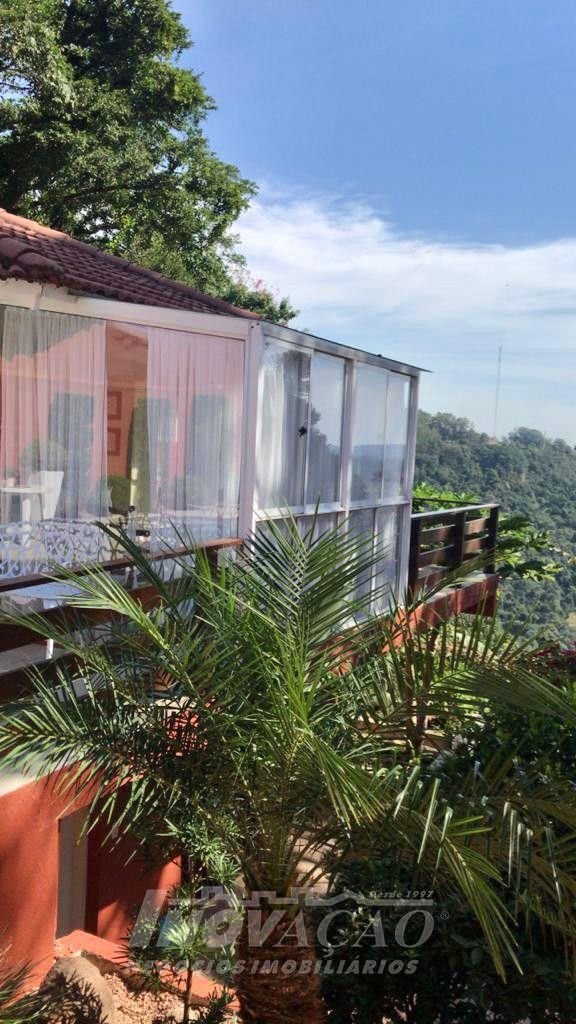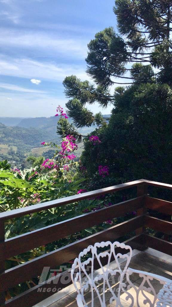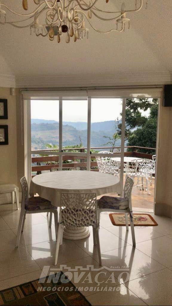 Imobiliária Inovação, vende em Bento Gonçalves, bairro Jardim Gloria, excelente casa, com amplo terreno, com cinco dormitórios sendo um suíte master, sala, cozinha, sacada, adega, área de serviço, banheiro social, lavabo. Garagem para dois carros, piscina, quiosque, vista panorâmica.