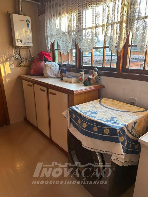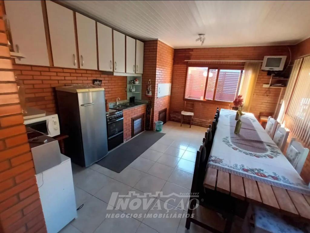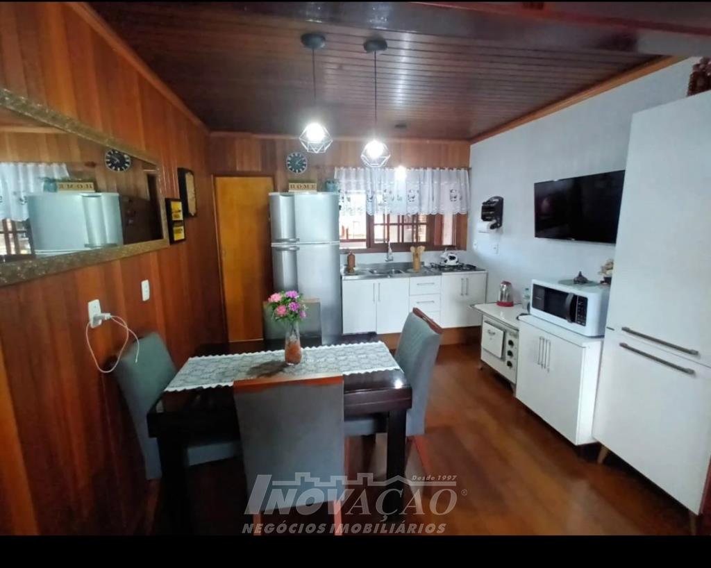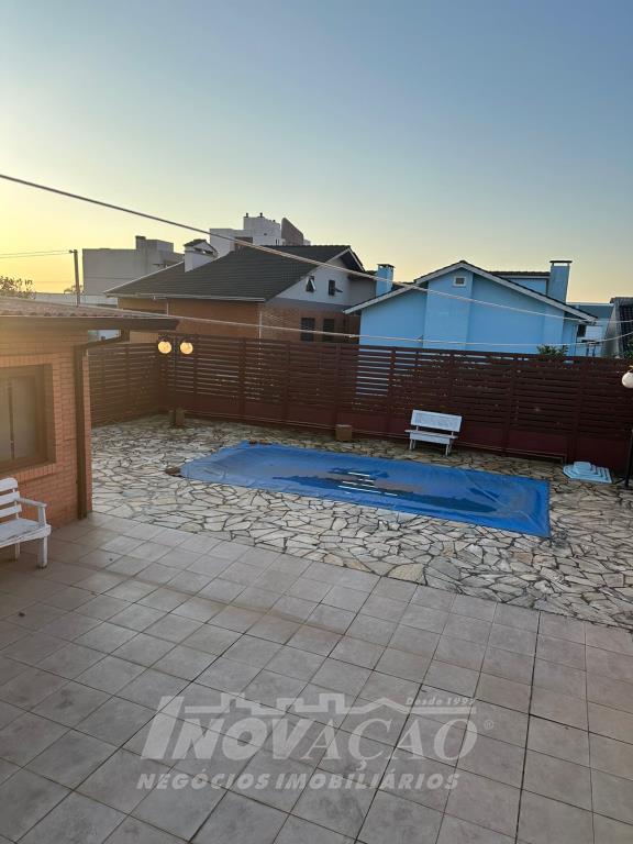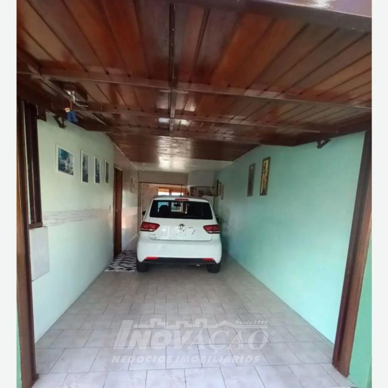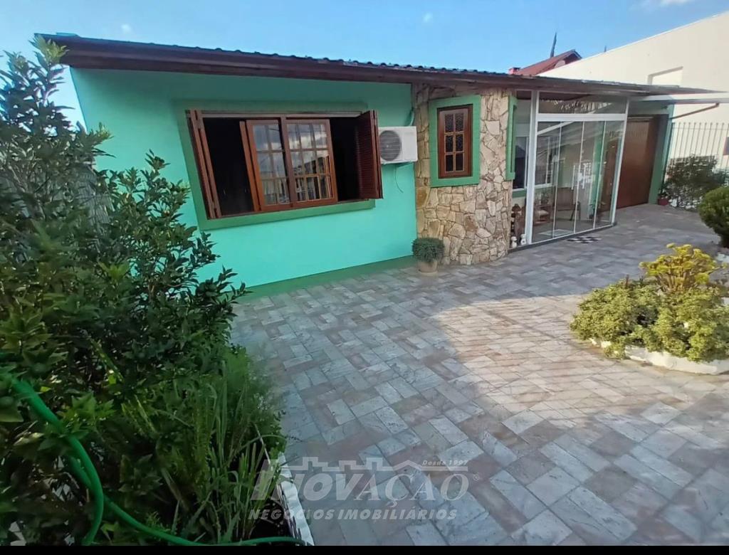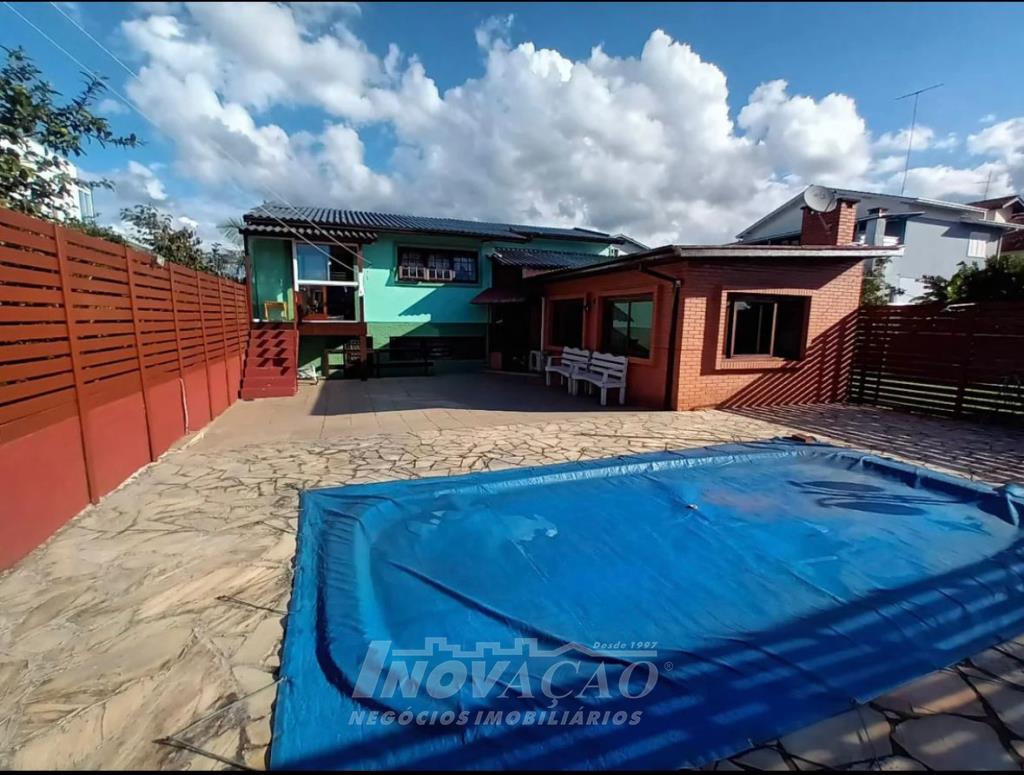 Inovação Negócios Imobiliários vende casa no Bairro Santa Lúcia com dois dormitórios, sendo o de casal com suite, um banheiro social, sala e cozinha integradas, aquecimento a gás, box duplo de garagem, salão de festas com banheiro, um pátio amplo nos fundos com piscina aquecida.