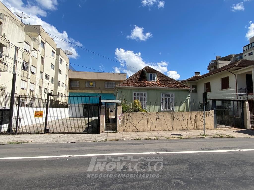 Descrição Imobiliária Inovação vende no Bairro São Pelegrino, em Caxias do Sul, terreno plano, com 860,00m², frente norte, contendo uma sala térrea com estacionamento 3 apartamentos e uma casa de Madeira, alugados.