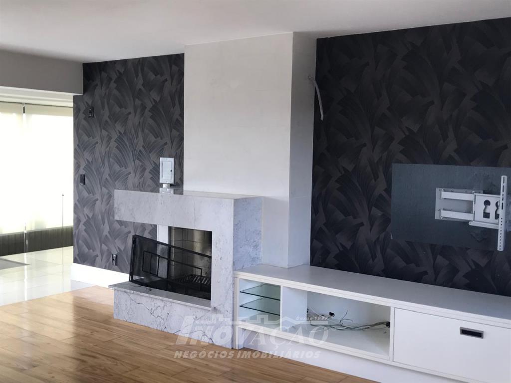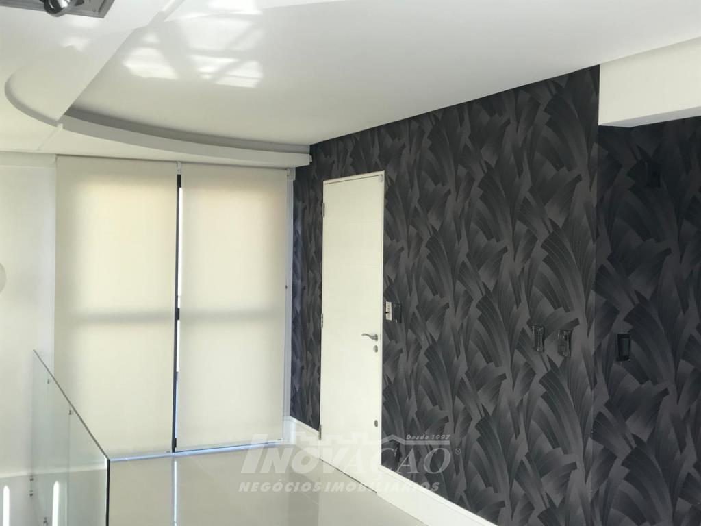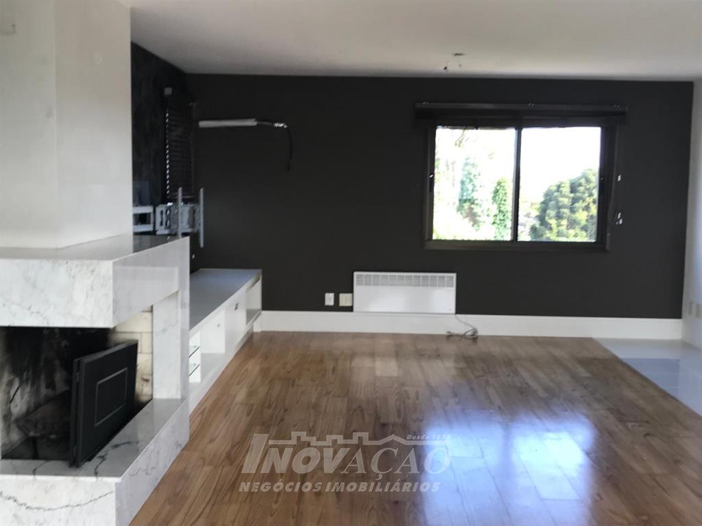 Imobiliária Inovação vende em Caxias do Sul, Bairro Madureira, Ótimo apartamento/cobertura duplex semi mobiliada, com frente norte/oeste, primeiro pavimento com ampla sala, escritório, lavanderia, sacada, três suítes, sendo uma master, lavabo, segundo pavimento, sala com lareira, cozinha mobiliada com churrasqueira, banheiro social, terraço. Elevador codificado. Duas vagas de garagem individuais. Vista panorâmica da cidade.