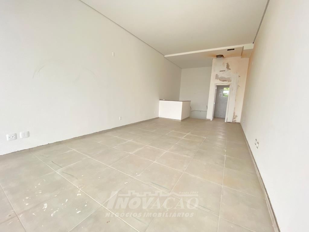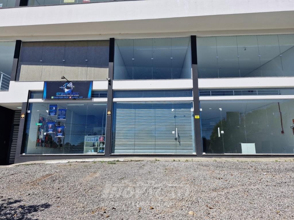 Inovação Negócios Imobiliários aluga em Caxias do Sul, RS, no bairro Desvio Rizzo Sala Térrea em via de Grande fluxo com fachada em vidro, Piso em Porcelanato, 1 Banheiros, Mezanino, cortinas de ferro automatizada Posição Solar oeste, Metragem 111,28m² .