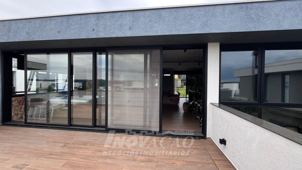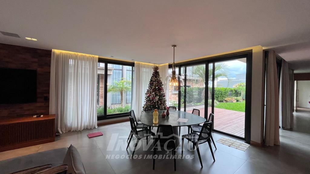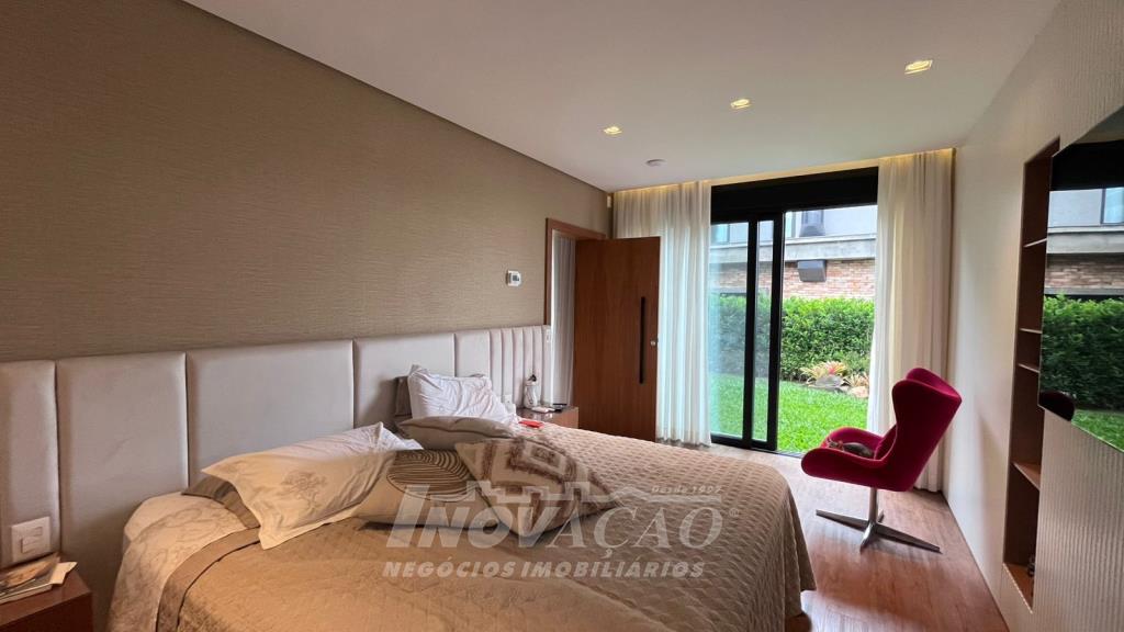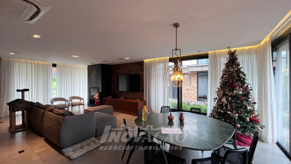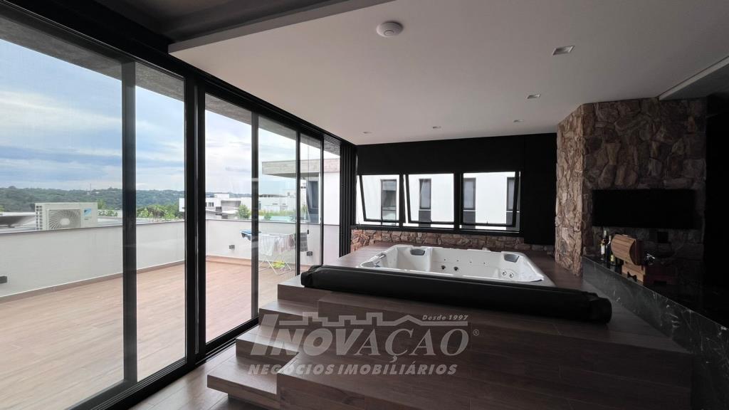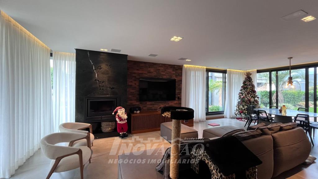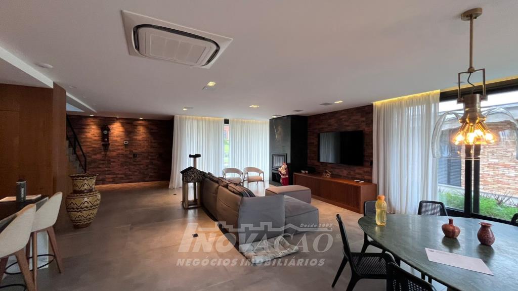 Imobiliária Inovação vende excelente casa em condomínio fechado. A casa possui 3 pavimentos e ficará totalmente mobiliada (incluindo os eletrodomésticos). 1° pavimento (subsolo): Garagem para 4 carros, 2 depósitos e pátio, fonte de água e árvores frutíferas ( bergamota, limão siciliano, jabuticaba, caqui, butia e horta). 2° pavimento (térreo): hall de entrada, sala de estar, lareira a lenha, sala de jantar, home office, cozinha com churrasqueira, lavabo, lavanderia e 3 suítes, sendo uma com closet. 3° pavimento: Salão de festas, churrasqueira com parrilha, forno, spa e terraço. A casa possui esquadrias na cor preta com vidro duplo, ar condicionado em todos os dormitórios e sala, espera para calefação, aquecimento solar e piso aquecido nos banheiros. Posição solar Leste/Oeste O Condomínio conta com uma infraestrutura completa, clube social com salão de festas para 120 pessoas, piscina externa, piscinas internas com raias de 25 metros e sistema de aquecimento a gás, espelhos dágua, fitness, sauna, sala de jogos, espaço kids, terraços cobertos e abertos e vagas de estacionamento internas e externas, sala de jogos, espaço gourmet para 40 pessoas. Clube de Tênis com 2 quadras de tênis, sendo 1 coberta, quiosque gourmet, Museu do Vinho e estacionamento. Clube Esportivo com quiosque, Campo de Futebol, Quadra Poliesportiva, playground, ciclovia e trilhas ecológicas. Sustentabilidade e Tecnologia; Preservação de 4.48 hectares de mata nativa, telhados verdes, energia eólica e fotovoltaica nas áreas sociais, iluminação de LED, cabeamento subterrâneo, reutilização da água da chuva. Segurança 24 horas e pórtico com guarita blindada.