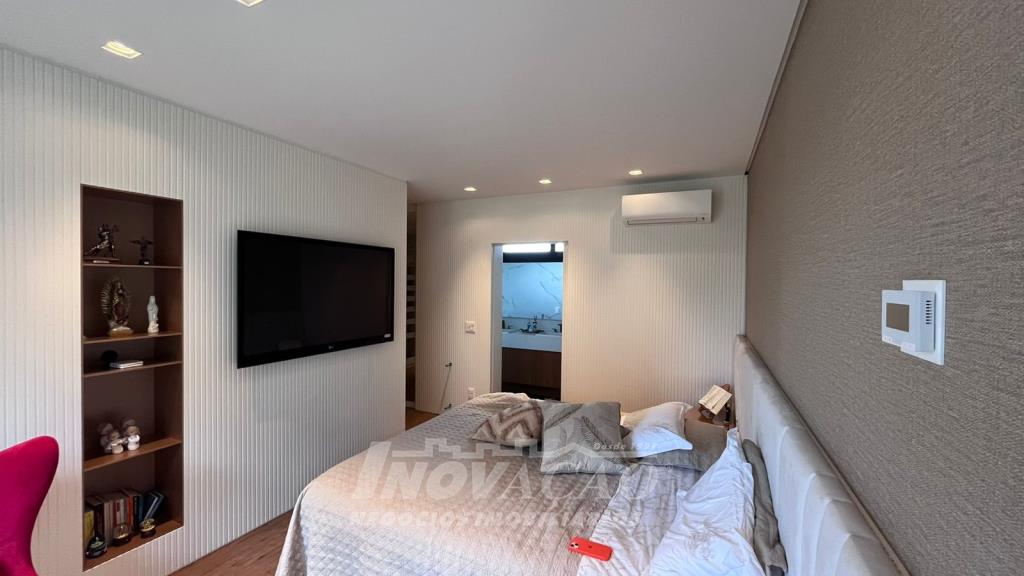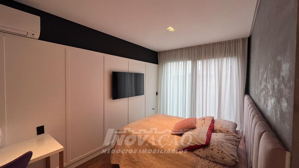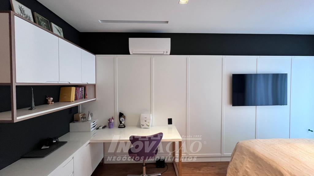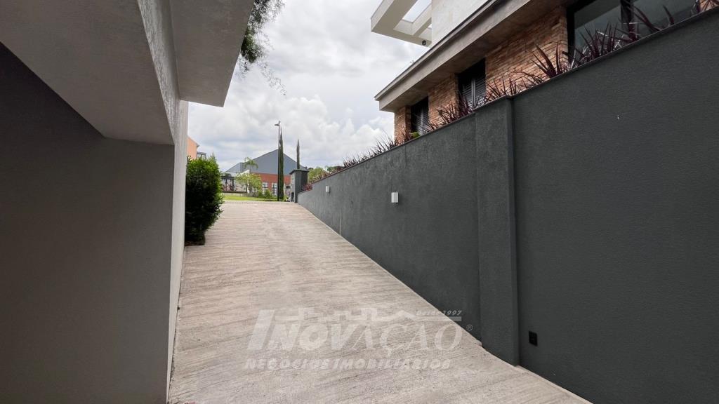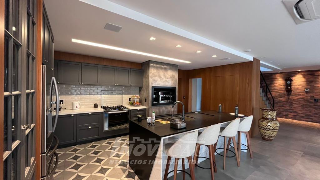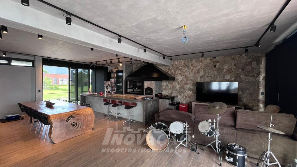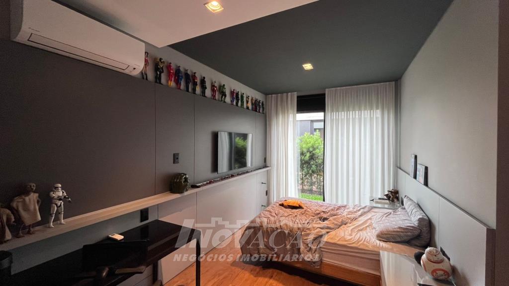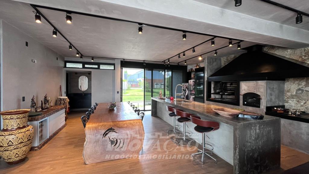 Imobiliária Inovação vende excelente casa em condomínio fechado. A casa possui 3 pavimentos e ficará totalmente mobiliada (incluindo os eletrodomésticos). 1° pavimento (subsolo): Garagem para 4 carros, 2 depósitos e pátio, fonte de água e árvores frutíferas ( bergamota, limão siciliano, jabuticaba, caqui, butia e horta). 2° pavimento (térreo): hall de entrada, sala de estar, lareira a lenha, sala de jantar, home office, cozinha com churrasqueira, lavabo, lavanderia e 3 suítes, sendo uma com closet. 3° pavimento: Salão de festas, churrasqueira com parrilha, forno, spa e terraço. A casa possui esquadrias na cor preta com vidro duplo, ar condicionado em todos os dormitórios e sala, espera para calefação, aquecimento solar e piso aquecido nos banheiros. Posição solar Leste/Oeste O Condomínio conta com uma infraestrutura completa, clube social com salão de festas para 120 pessoas, piscina externa, piscinas internas com raias de 25 metros e sistema de aquecimento a gás, espelhos dágua, fitness, sauna, sala de jogos, espaço kids, terraços cobertos e abertos e vagas de estacionamento internas e externas, sala de jogos, espaço gourmet para 40 pessoas. Clube de Tênis com 2 quadras de tênis, sendo 1 coberta, quiosque gourmet, Museu do Vinho e estacionamento. Clube Esportivo com quiosque, Campo de Futebol, Quadra Poliesportiva, playground, ciclovia e trilhas ecológicas. Sustentabilidade e Tecnologia; Preservação de 4.48 hectares de mata nativa, telhados verdes, energia eólica e fotovoltaica nas áreas sociais, iluminação de LED, cabeamento subterrâneo, reutilização da água da chuva. Segurança 24 horas e pórtico com guarita blindada.