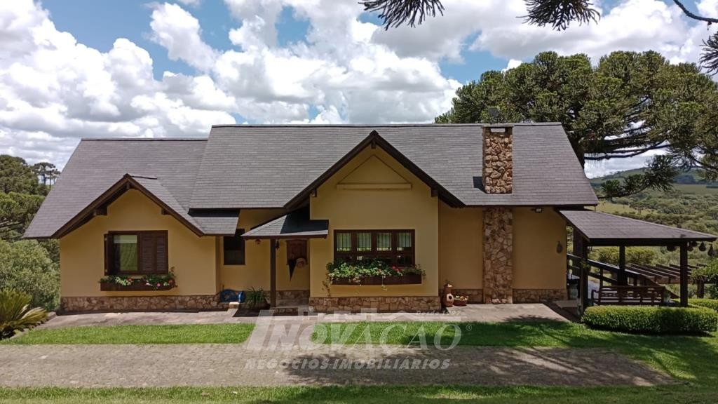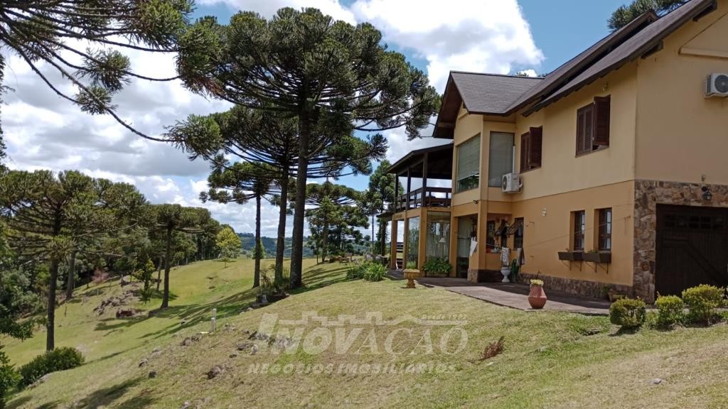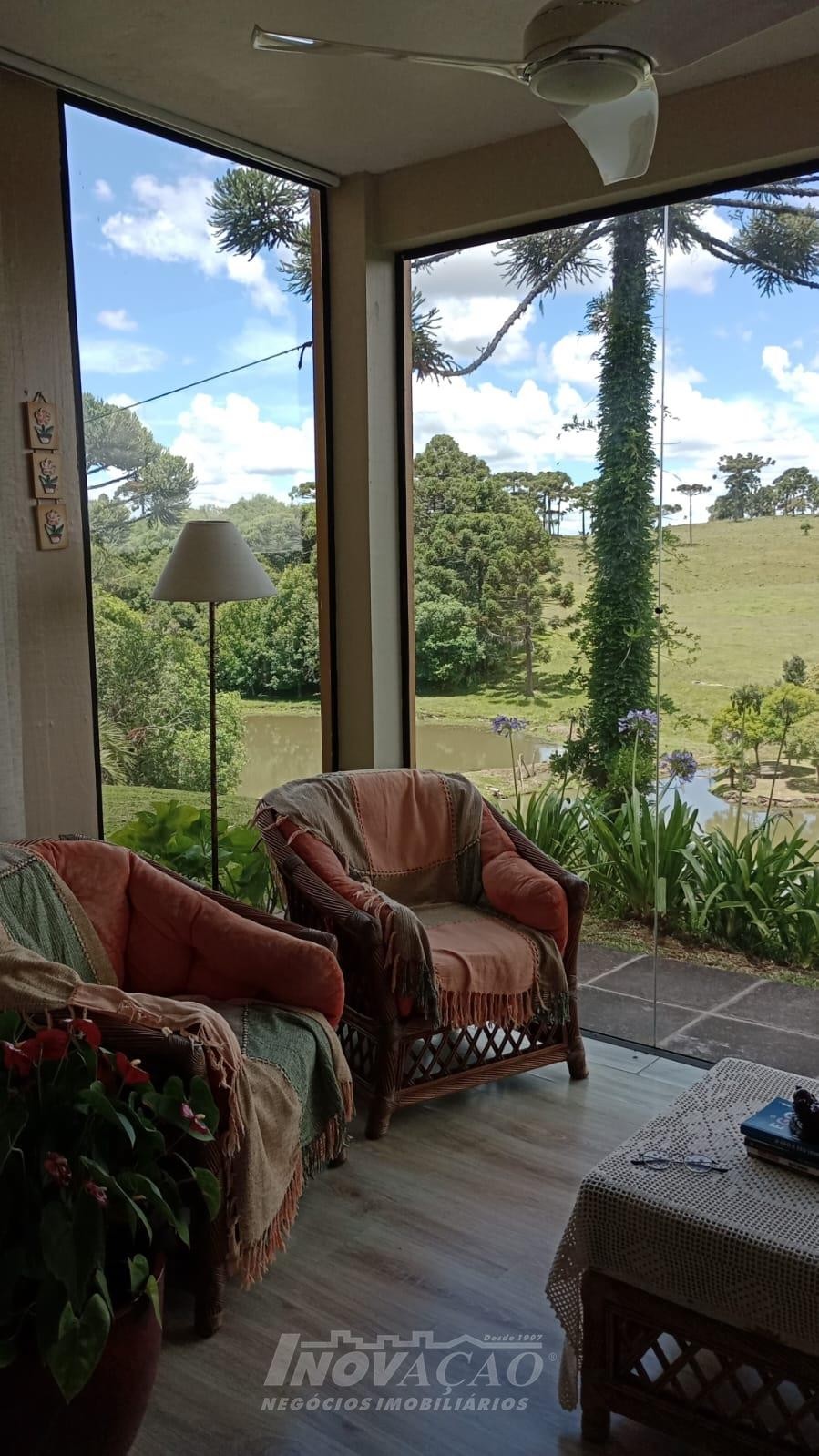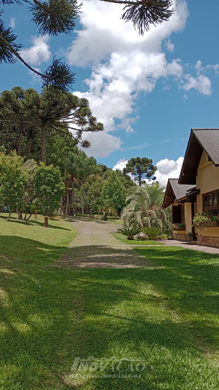 Inovação Negócios Imobiliários Ltda vende em Caxias do Sul localização em Vila Seca, excelente chácara com área de 3,5 hectares, contendo uma casa com dois pisos de alvenaria, com três dormitórios sendo dois de casal e um de dormitório com duas camas, sala de estar com lareira e sacada, jardim de inverno, cozinha conceito aberto com lareira e sala de jantar , área de serviço, banheiro social, banheiro auxiliar, salão de festa com churrasqueira e com lareira e ventiladores, varanda com vista panorâmica, dois ar condicionados, alarme, deck, dois açudes, garagem, dois depósitos, área construída de 250,00 m², mato, água de poço artesiano, somente 1 km de chão.