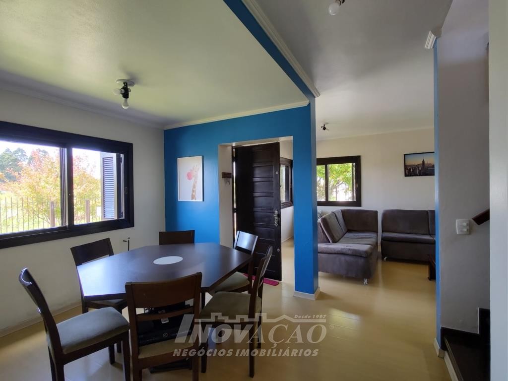 Inovação Negócios Imobiliários vende casa semimobiliada, no Bairro Desvio Rizzo, com 03 dormitórios sendo o de casal com suite, sala ampla, estar e jantar, 01 banheiro social e 01 lavabo, cozinha e área de serviço independentes, garagem com opção salão de festas. A casa possui parede dupla de 30 cm, água quente, gás central e alarme.