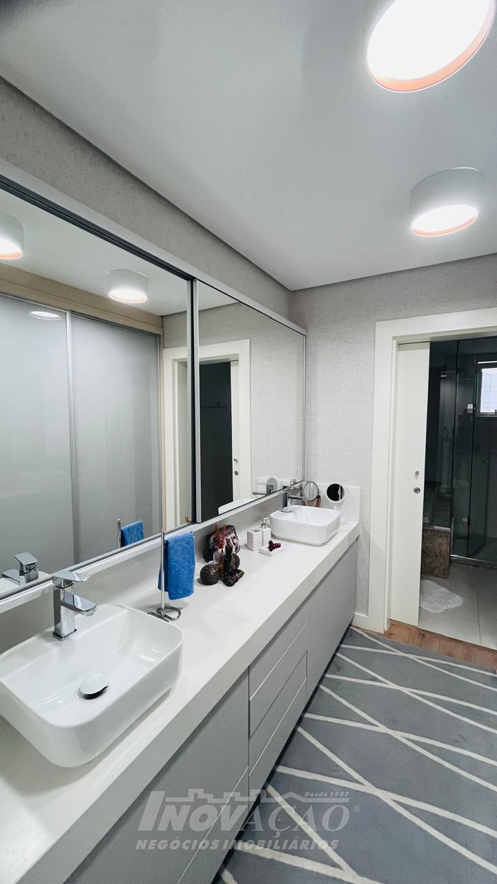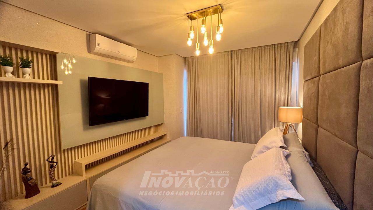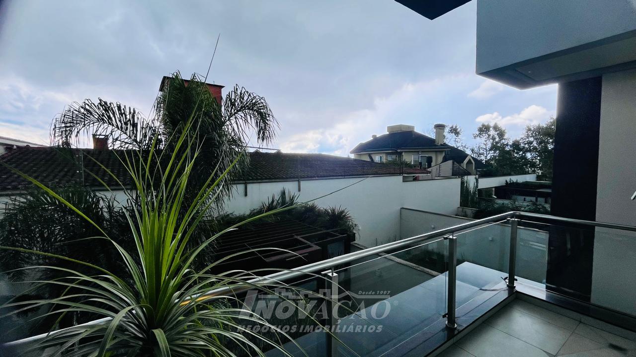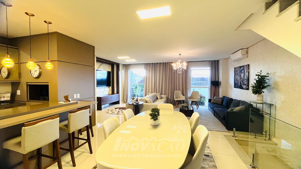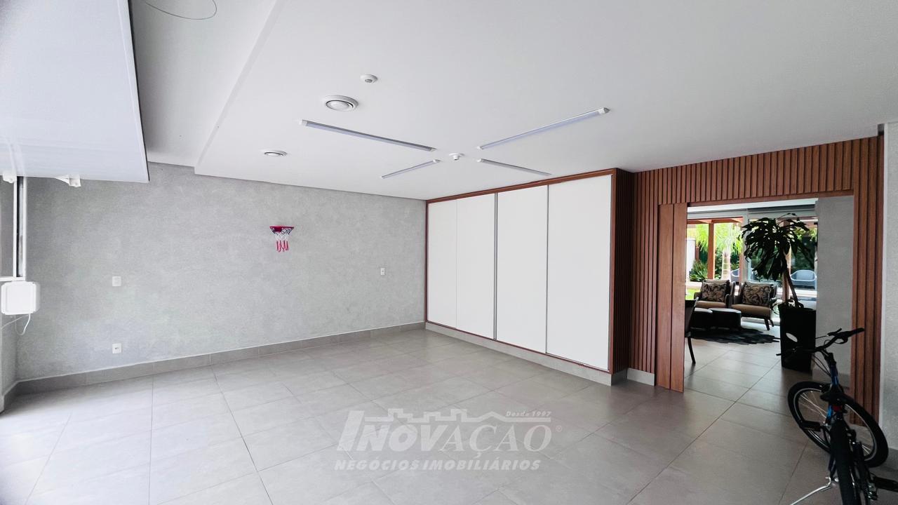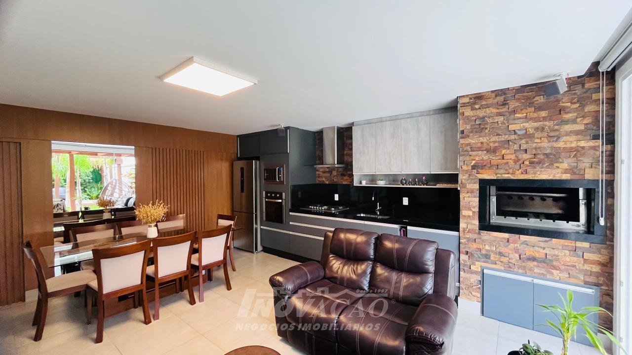 Imobiliária Inovação vende excelente casa com área privativa de 287,00m², em condomínio fechado, com 03 Suítes sendo 01 Máster com sacada e banheira. 1° pavimento possui amplo espaço gourmet, varanda, pátio com hidromassagem com cascata e pergolado, lavabo e área de serviço; 2° pavimento com amplo estar social com lareira e sacada, lavabo, escritório, sala de jantar e cozinha com bifeteira; 3° pavimento com dormitórios. A casa conta com abertura em PVC, vidro duplo, split e elevador. O condomínio possui portaria 24 horas, piscina, academia, salão de festas com sala de jogos.