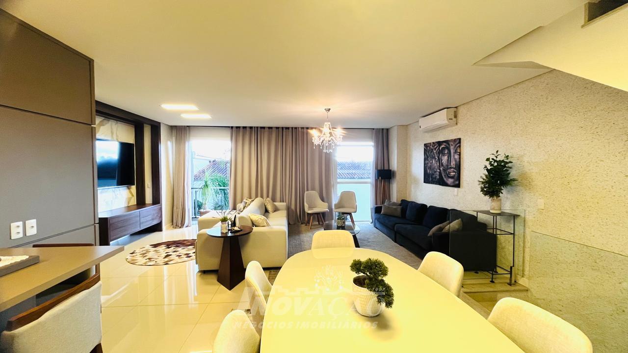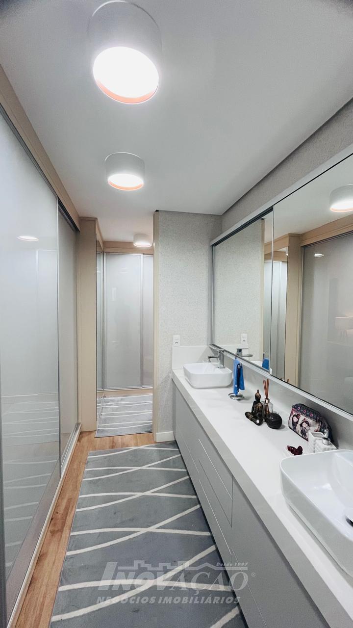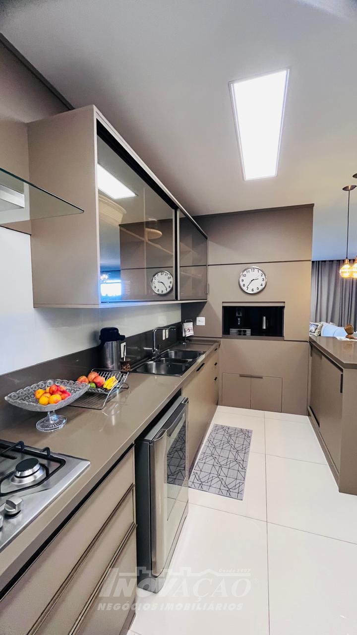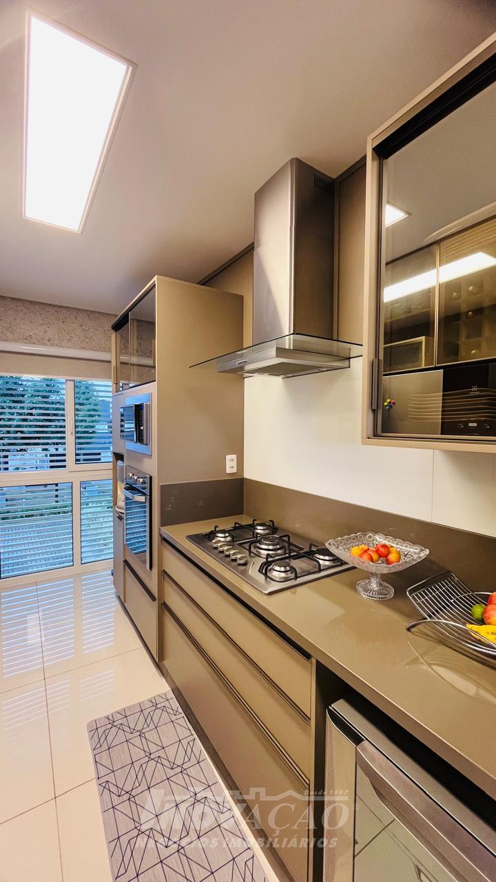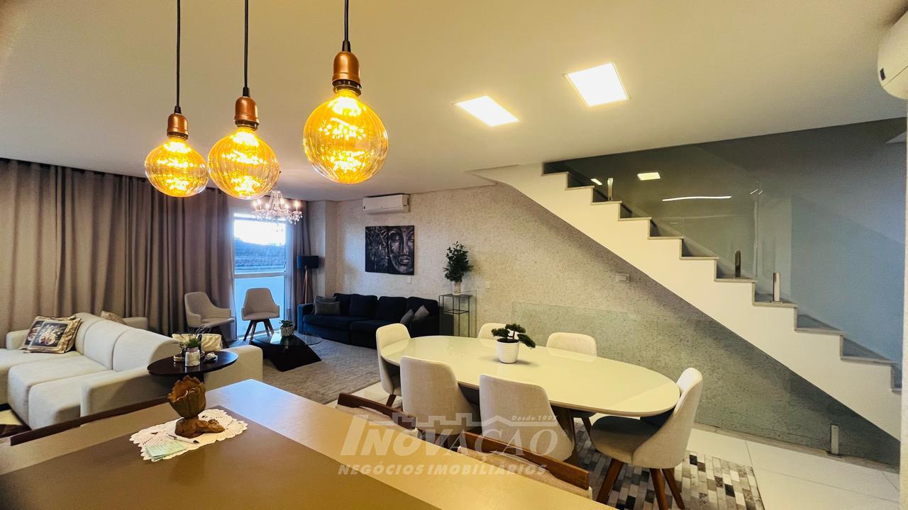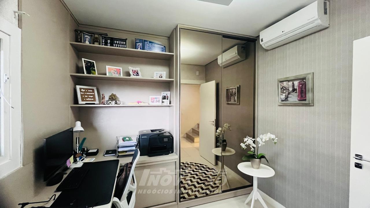 Imobiliária Inovação vende excelente casa com área privativa de 287,00m², em condomínio fechado, com 03 Suítes sendo 01 Máster com sacada e banheira. 1° pavimento possui amplo espaço gourmet, varanda, pátio com hidromassagem com cascata e pergolado, lavabo e área de serviço; 2° pavimento com amplo estar social com lareira e sacada, lavabo, escritório, sala de jantar e cozinha com bifeteira; 3° pavimento com dormitórios. A casa conta com abertura em PVC, vidro duplo, split e elevador. O condomínio possui portaria 24 horas, piscina, academia, salão de festas com sala de jogos.