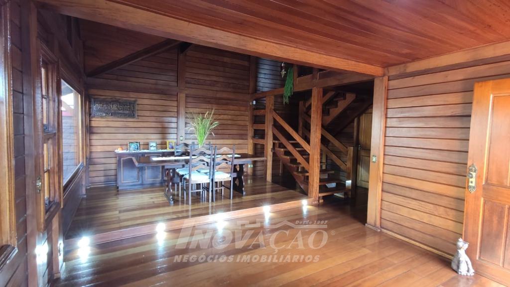 Inovação Negócios Imobiliários vende Casa de Grande Porte, toda em madeira de lei, estilo colonial americano. Belíssima Residência em terreno de esquina no Bairro Salgado Filho | Área Total de 369,80 m² | Casa em Madeira Nobre ,4 Dormitórios sendo 1 Suíte com hidromassagem, Living com 3 ambientes,Sala de Estar, Sala de Jantar, Cozinha e Àrea de Serviço, Sacadas na Área Social e Suíte, Estar Íntimo, 02 Lavabos e 03 Banheiros, Lareira, Churrasqueira, Porão em Alvenaria, Garagem Coberta com vaga para 4 carros. Pátio,Vista Privilegiada em TERRENO de ESQUINA com 266 m² (14m x 19m) | 4 pavimentos. Posição Solar: Leste e Norte.Construção de 2020