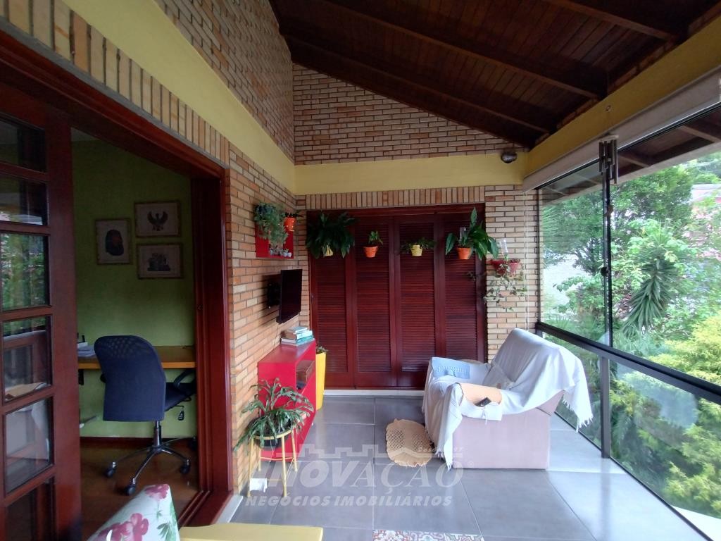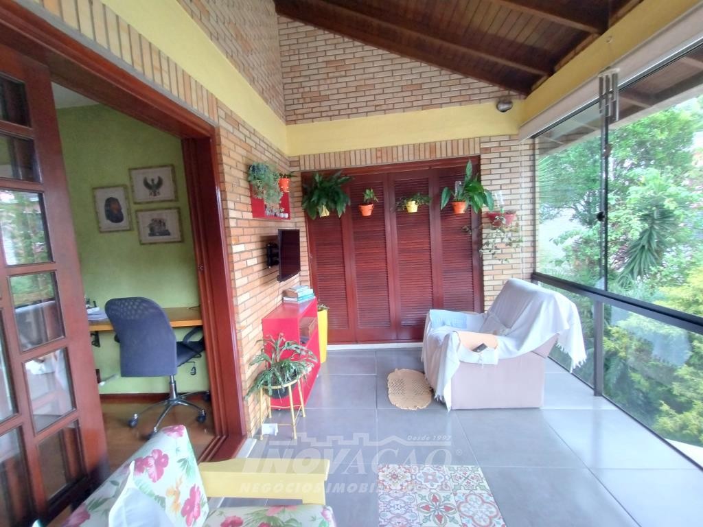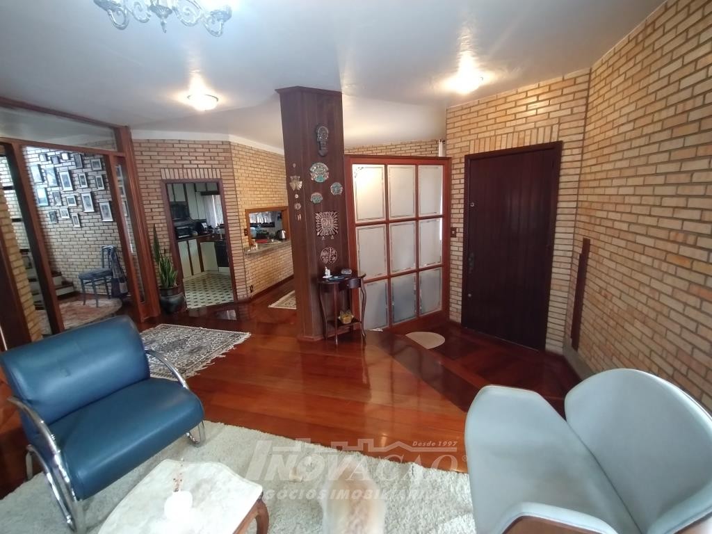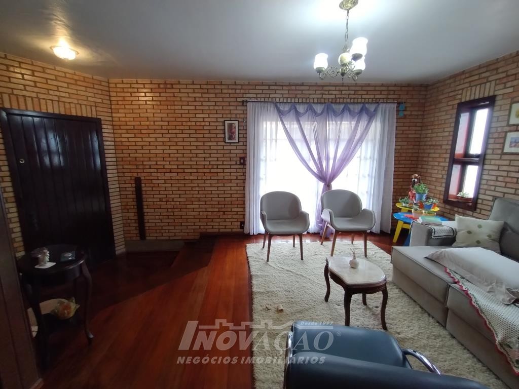 Inovação Negócios Imobiliários vende em Caxias do Sul, no bairro Galópolis, casa independente com três pavimentos, sendo no primeiro pavimento garagem para dois carros, churrasqueira, segundo pavimento sala de estar, sala de jantar, sala de tv, banheiro social, cozinha, área de serviço, sacada, terceiro pavimento três dormitórios, banheiro, varanda fechada com vidros. A casa possui pátio com pequena horta, estufa, a posição solar é Norte.