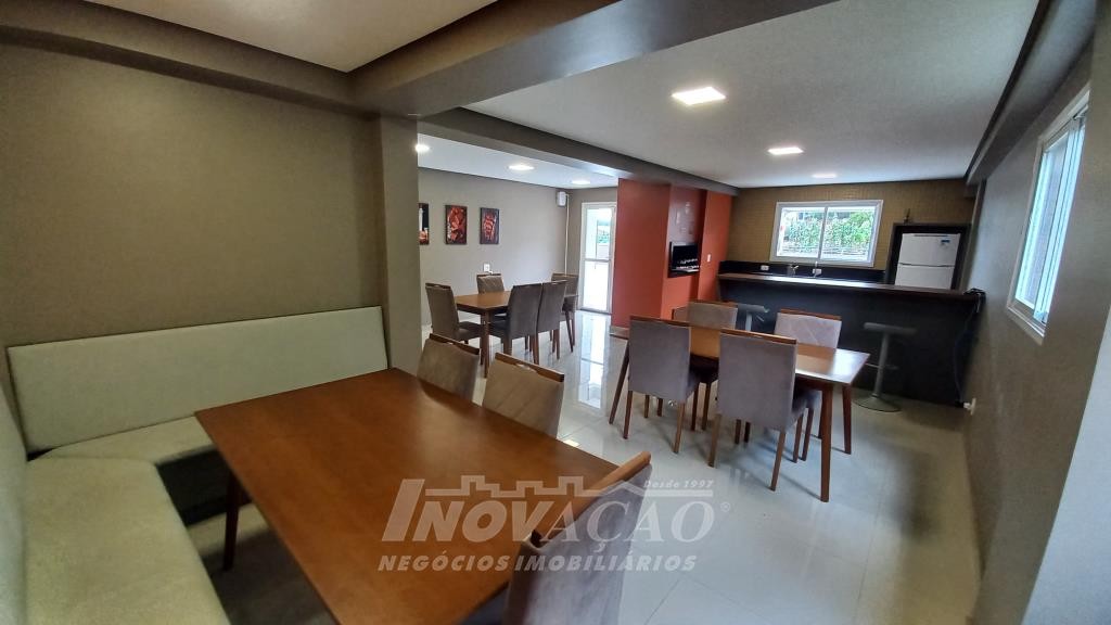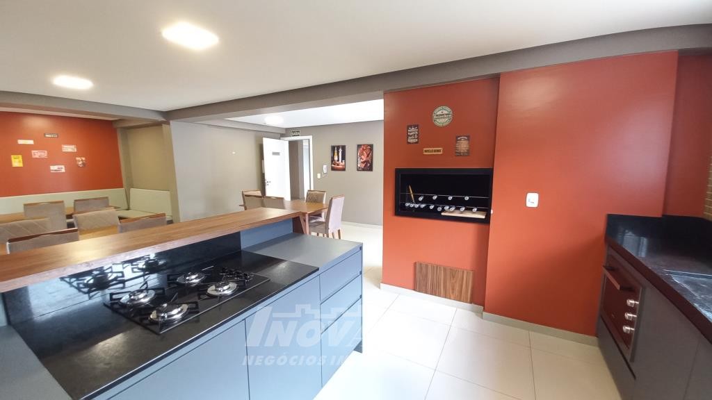 Inovação Negócios Imobiliários aluga e vende em Caxias do Sul, RS, no bairro Panazzolo, apartamento novo com dois dormitórios, sala, sacada com churrasqueira, cozinha integrada com a área de serviço, banheiro social, e uma vaga de garagem. O condomínio dispõe de duas piscinas, quiosques com churrasqueiras, dois salões de festas, espaço gourmet, academia, sala de jogos, quadra de esportes, sala de cinema, sala de massagem, payground e espaço pet.